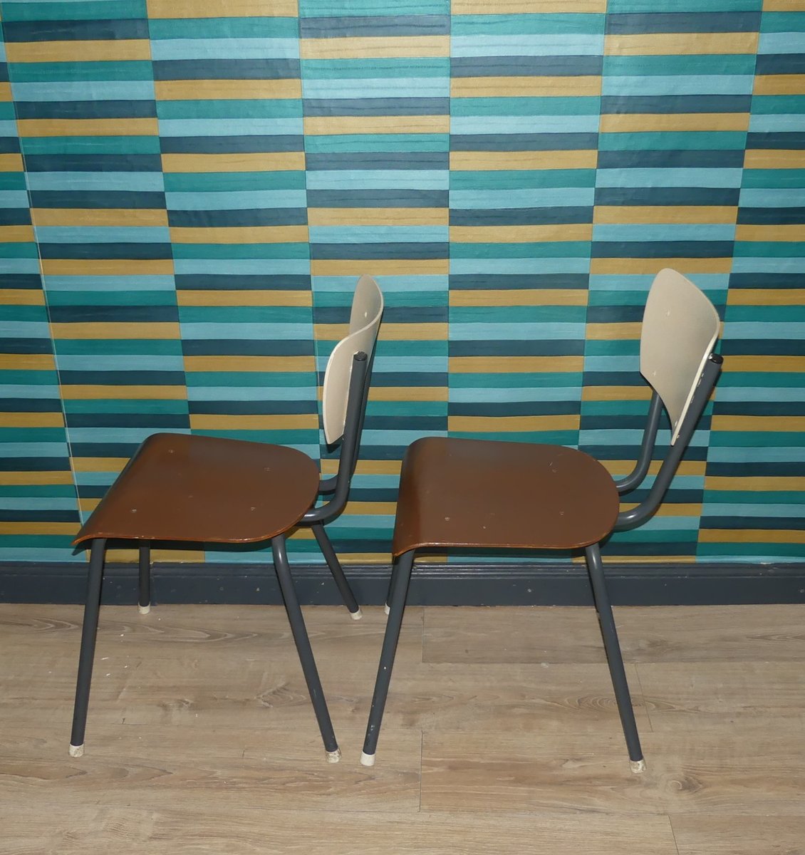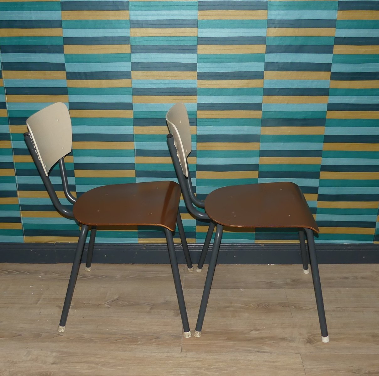 Industrielle Stühle aus Holz & Metall, Niederlande, 2 . Set