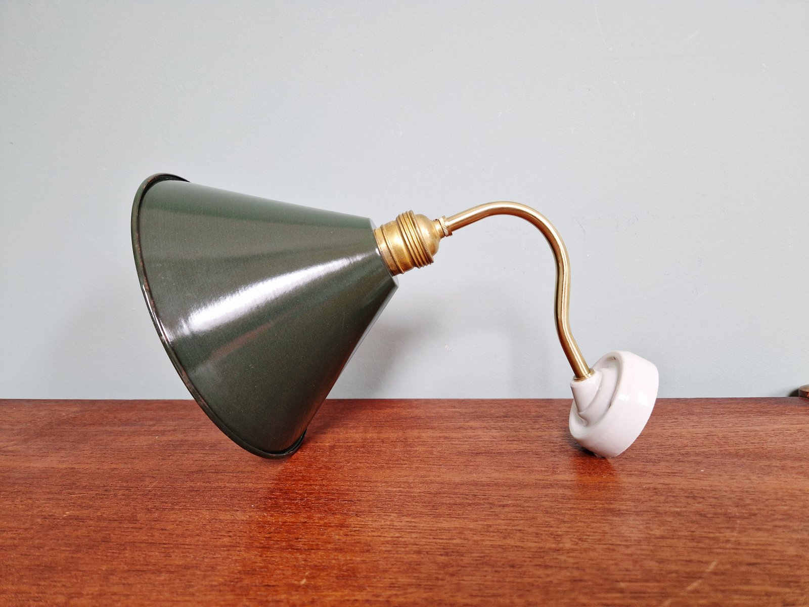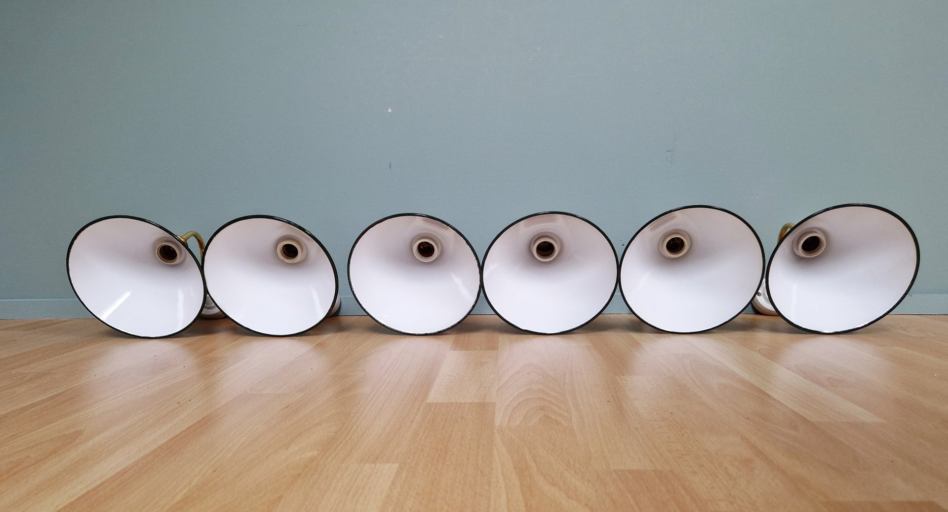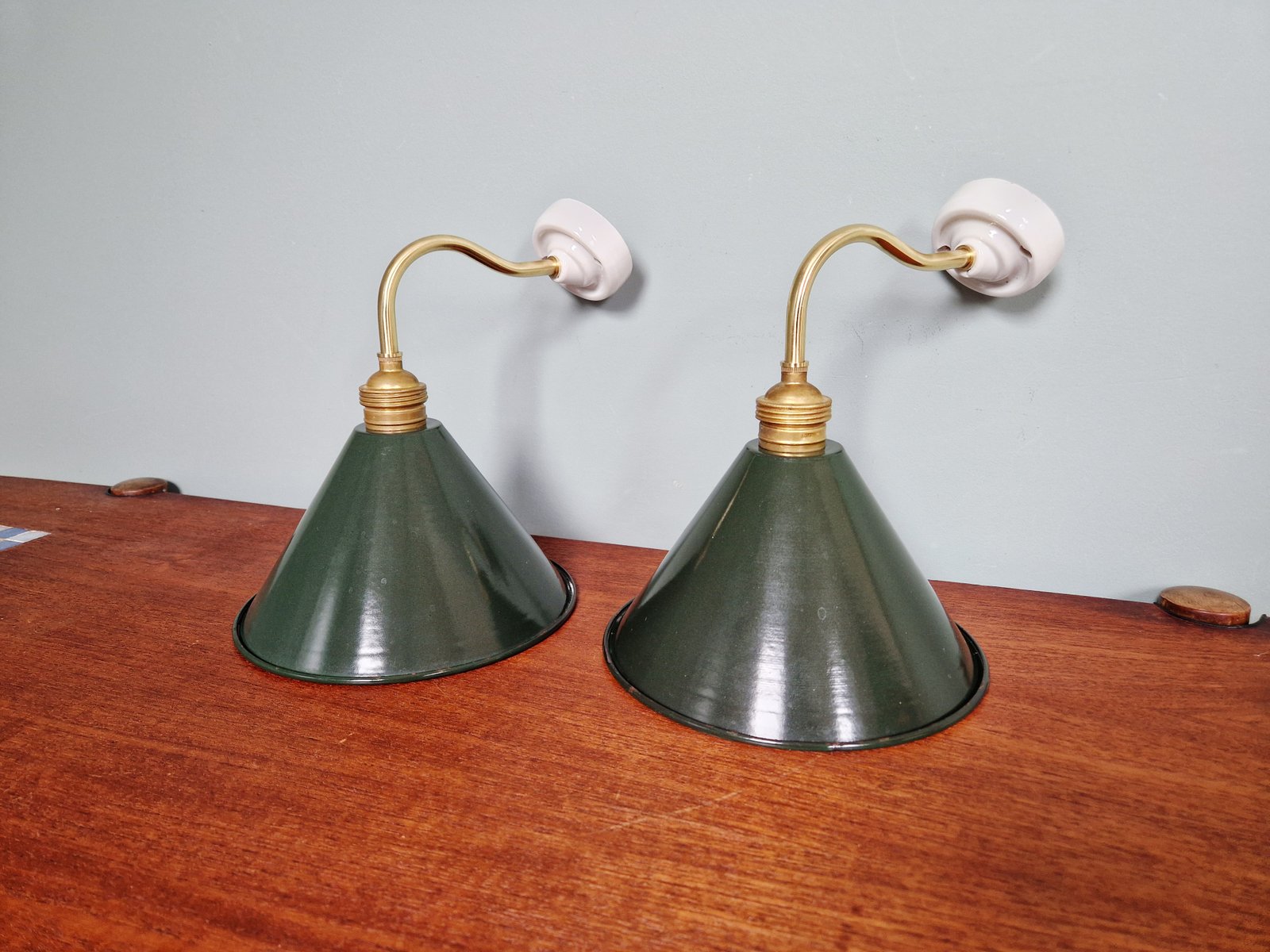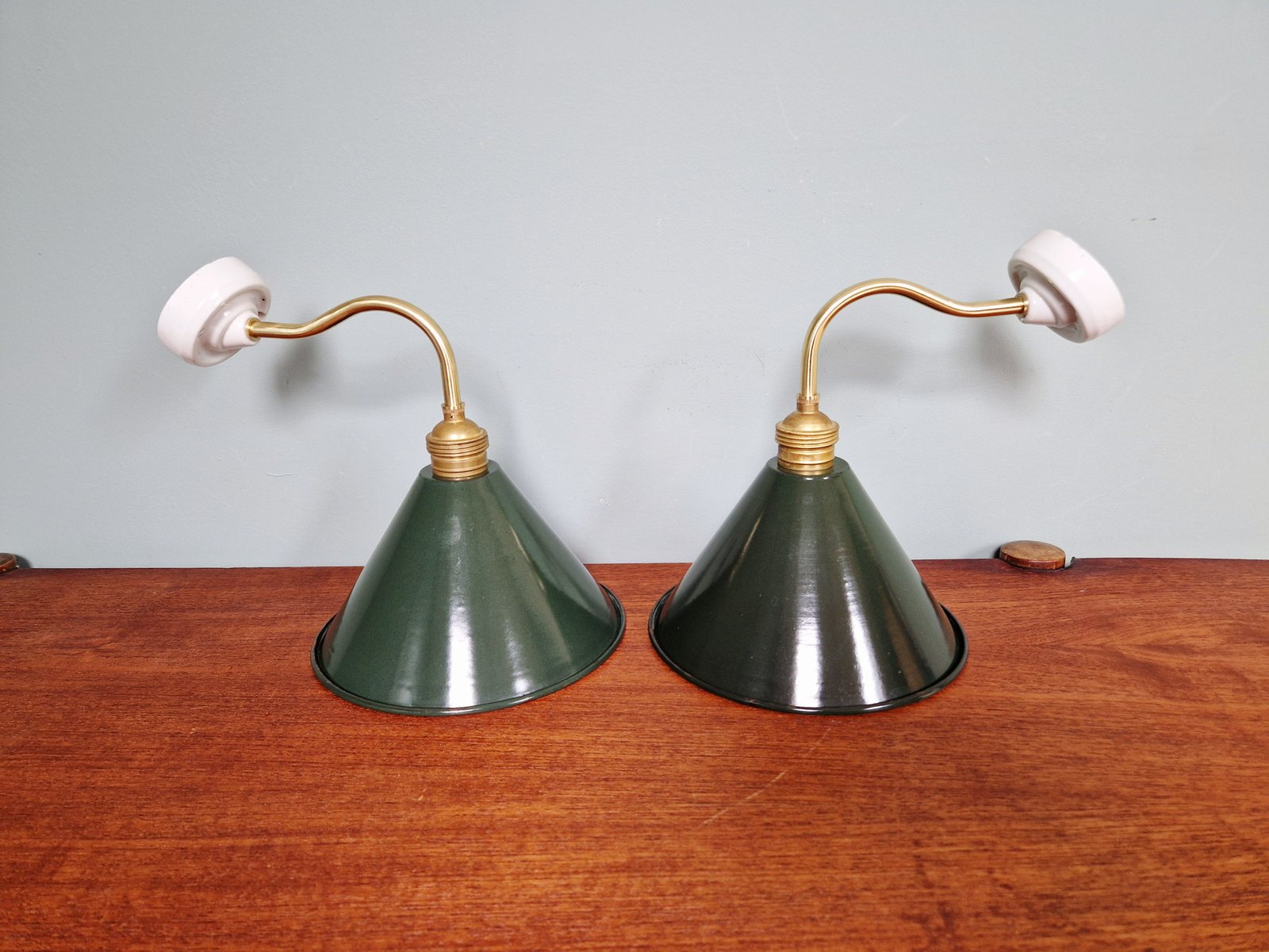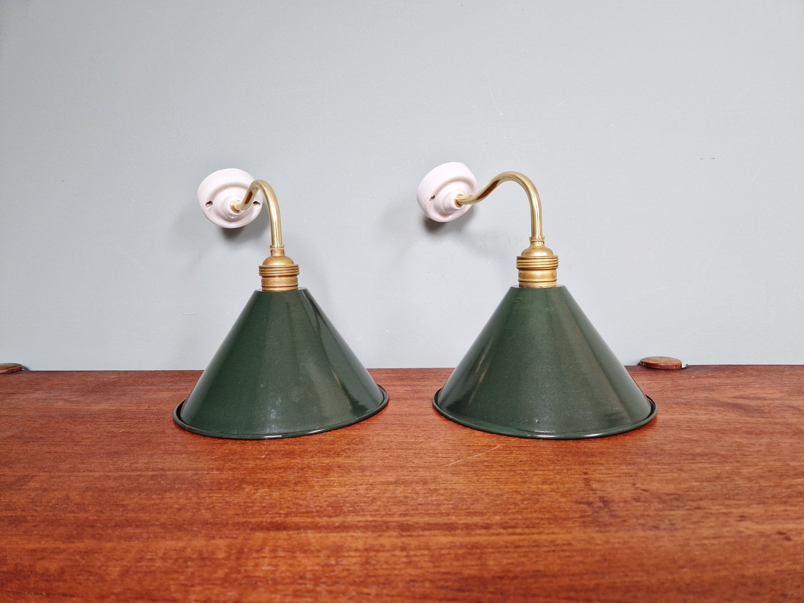 Industrielle Wandlampen aus Messing & Grün emailliertem Blech, 1950er, 6 . Set