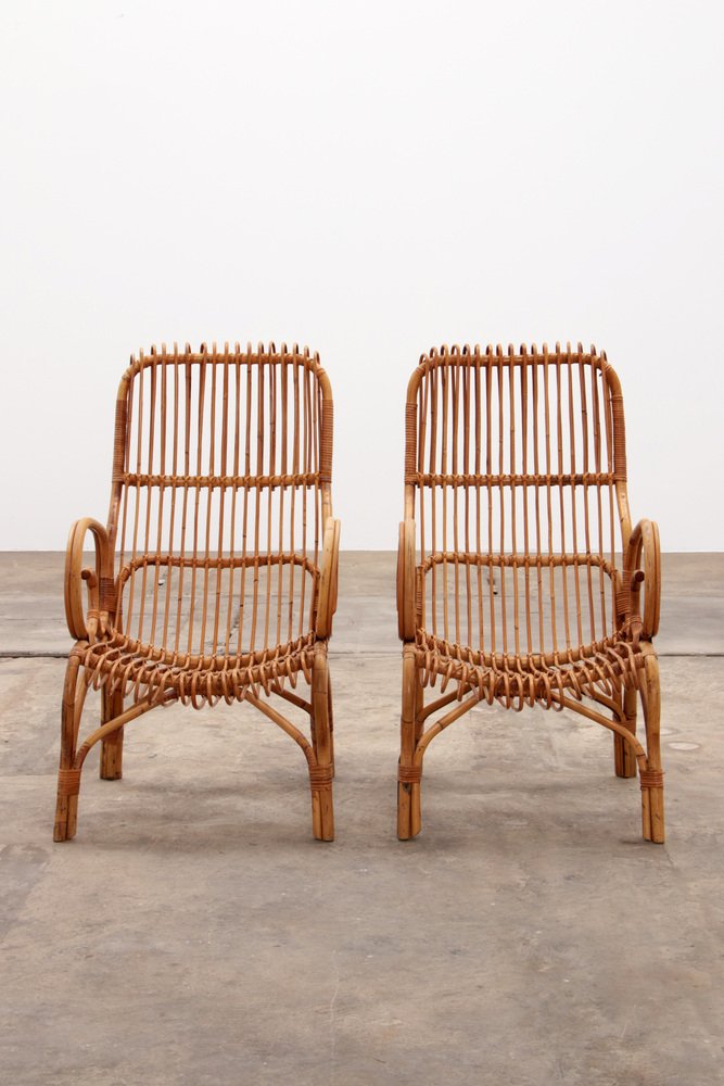Italienische Bambus Sessel von Franco Albini, 1960er, 2er Set