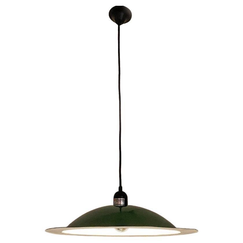 Italienischer Mid-Century Kronleuchter aus grünem Metall in Hut-Optik, 1970er