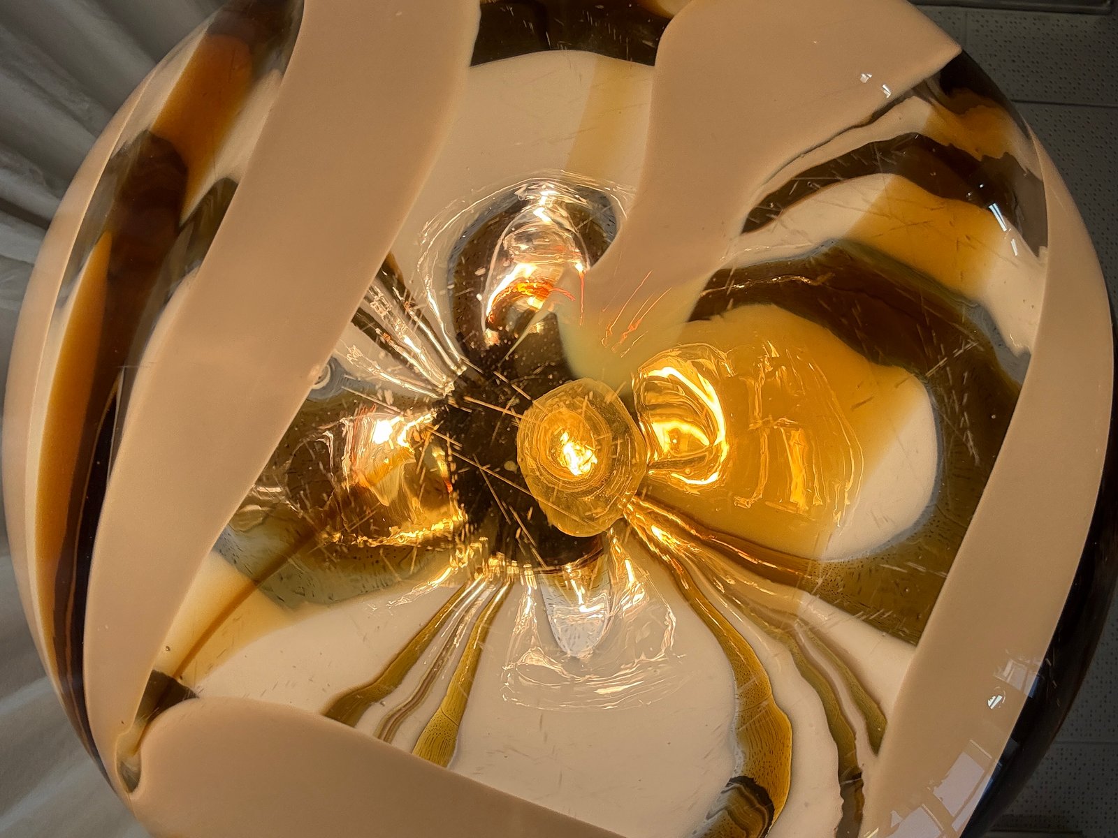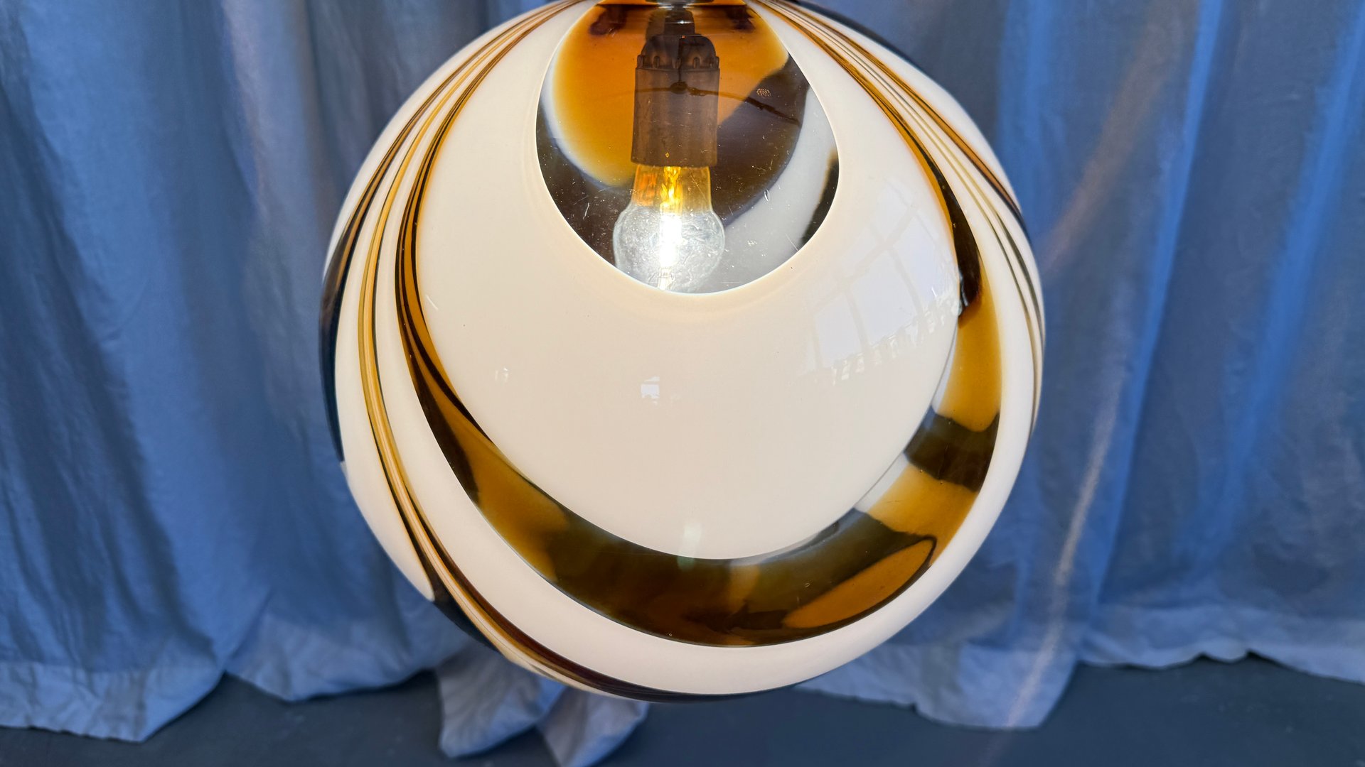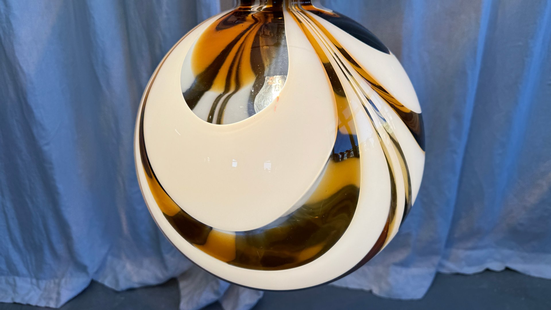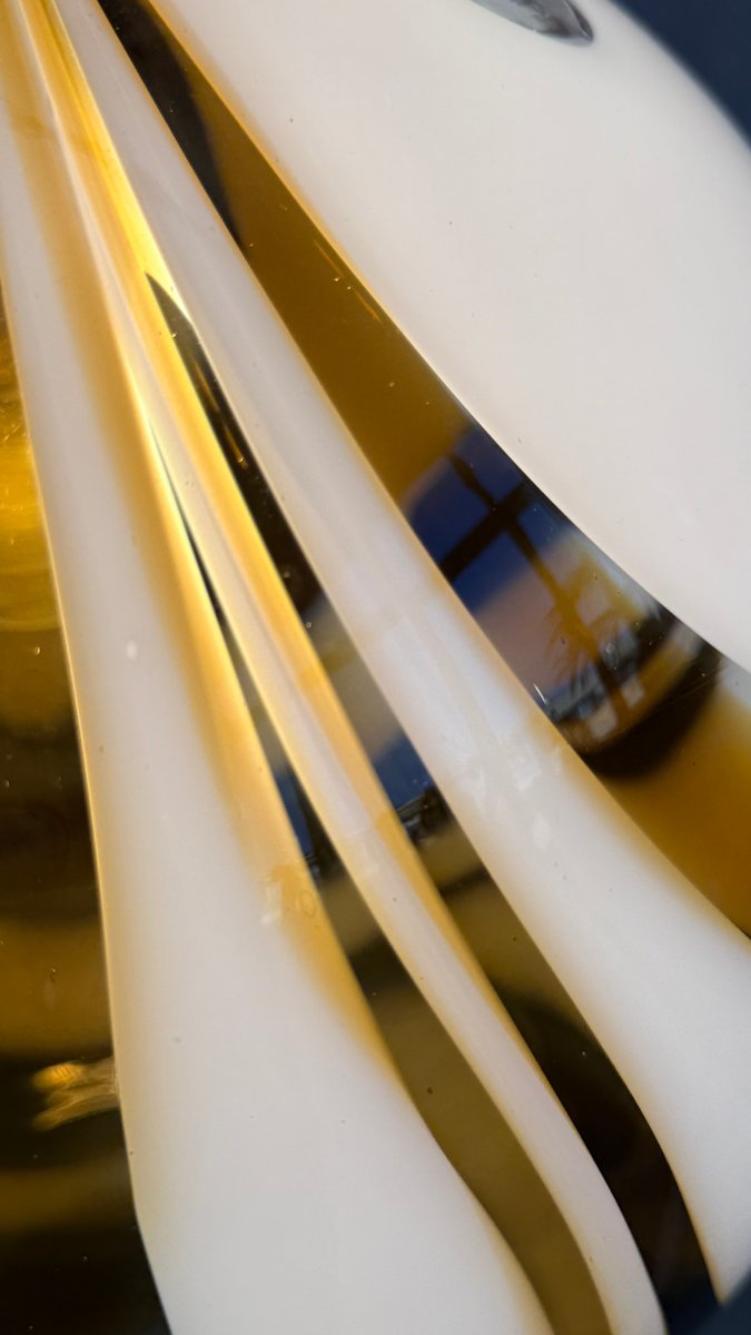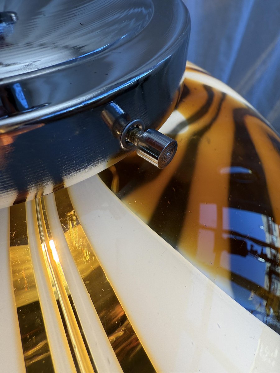 Italienische Mid-Century Hängelampe aus Muranoglas in Bernstein & Weiß mit verchromter Aufhängung, die Mazzega zugeschrieben wird, 1970er