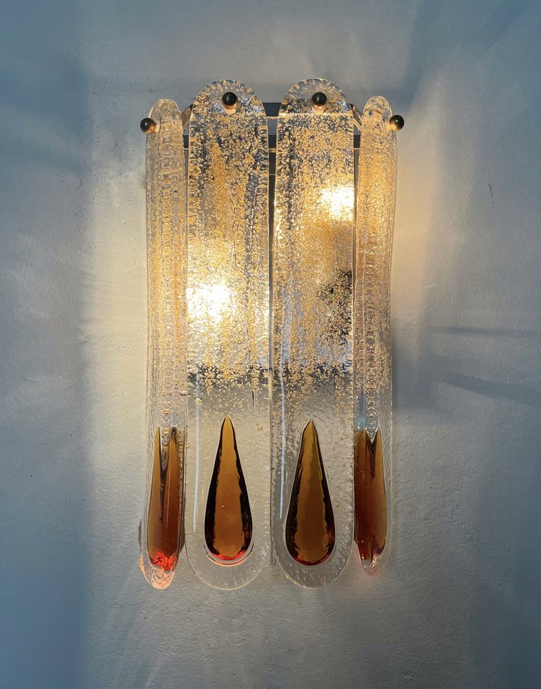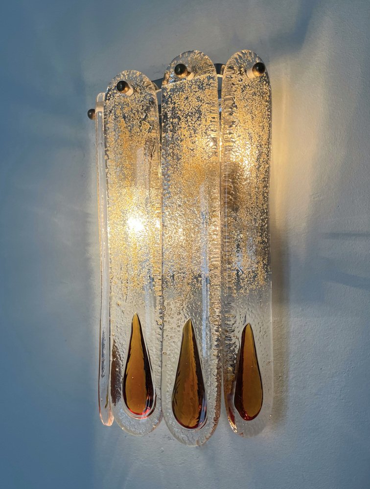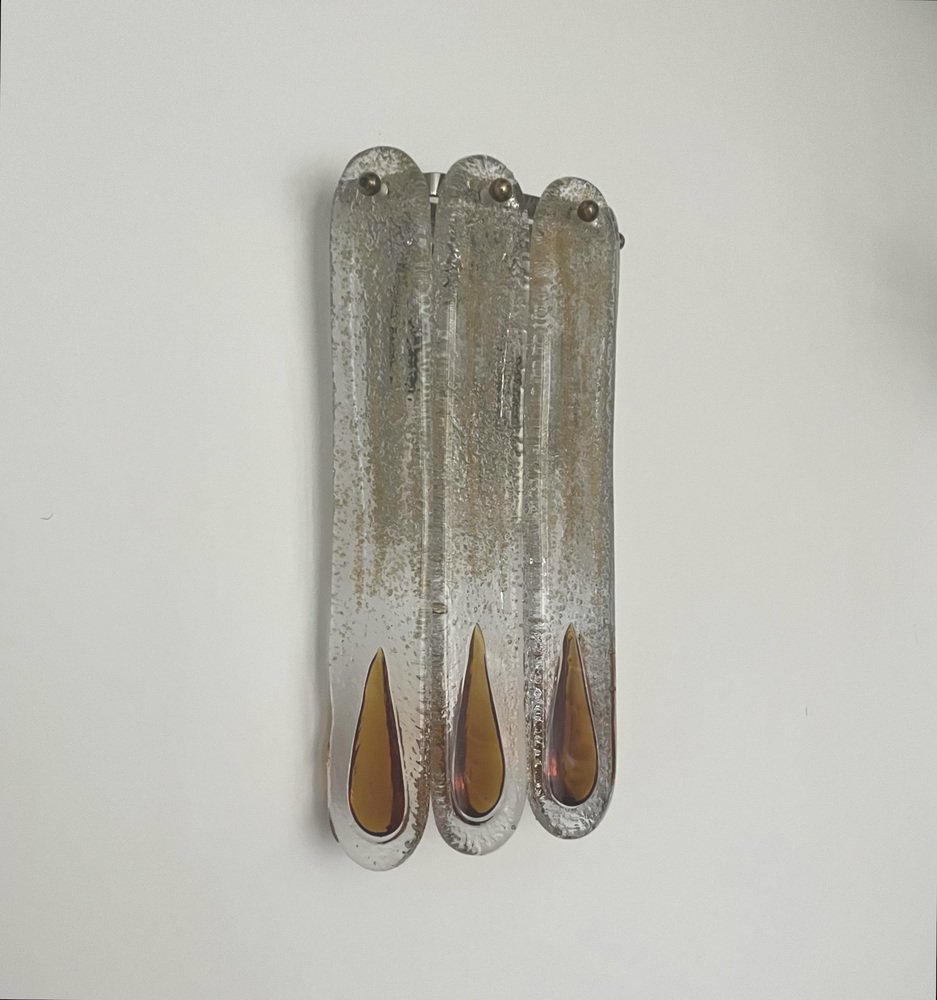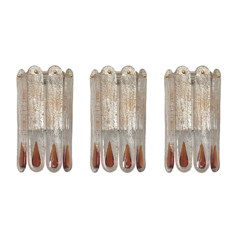 Italienische Mid-Century Murano Wandleuchten von Mazzega, 1970er, 3er Set