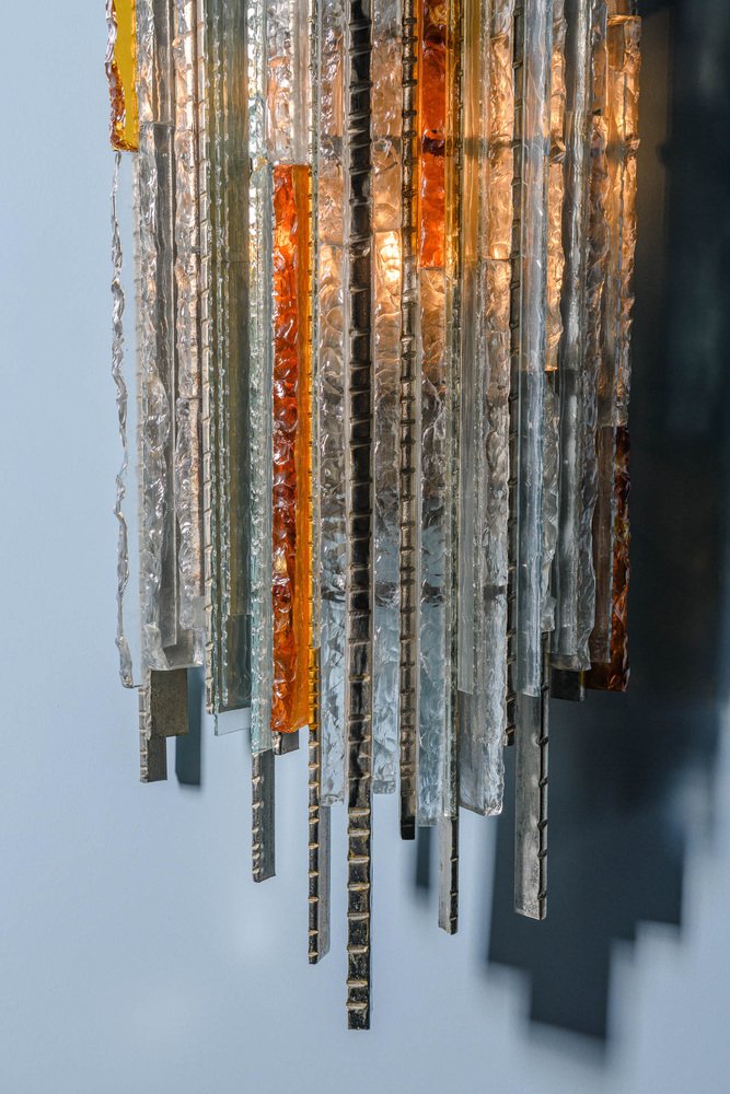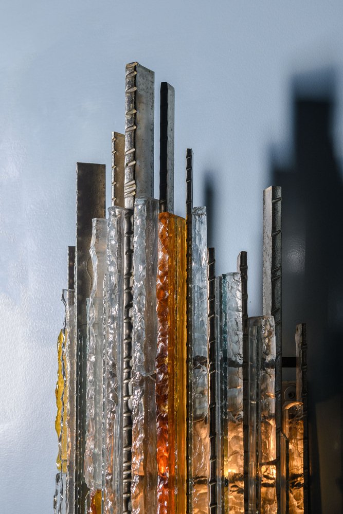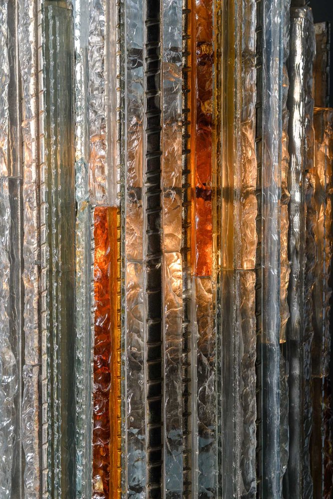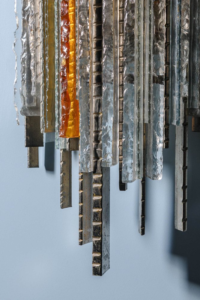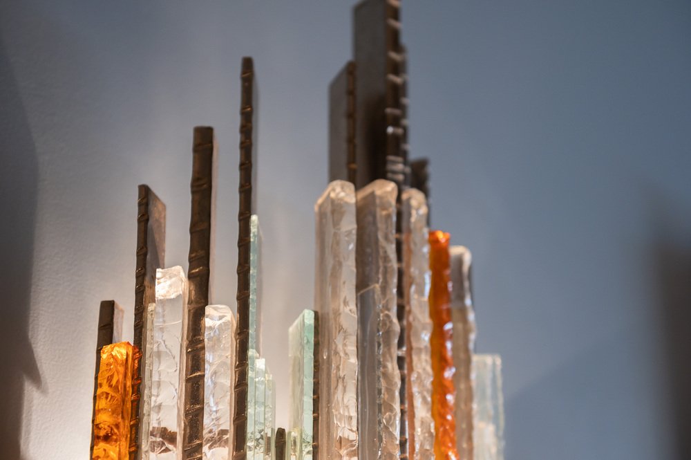 This is how the POLI ARTE lamps were born, which in the glass identify a soul linked both to the tradition and to the experience of the artist-designer. Inspired by the masses of waste glass from the Murano furnaces, usually transformed into split and shapeless blocks commonly called "gems", the master Poli thinks of a glass that is no longer fragile and delicate like that of the stained glass window, but solid and safe, a module that would allow the construction of works of art in step with the times, a metaphor of the multiplicity that together gives life to something unique.