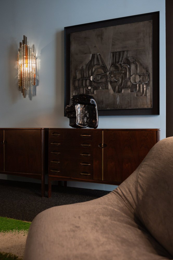 Albano Poli, with great foresight and a precise vision, founded in 1968 POLI ARTE which immediately established itself in the panorama of Made In Italy furniture design and, in that same year, Albano Poli received the first recognition at the XXXIV Venice Biennale: a lamp sculpture with cubic geometry that became the symbol and inspiration for all subsequent production.