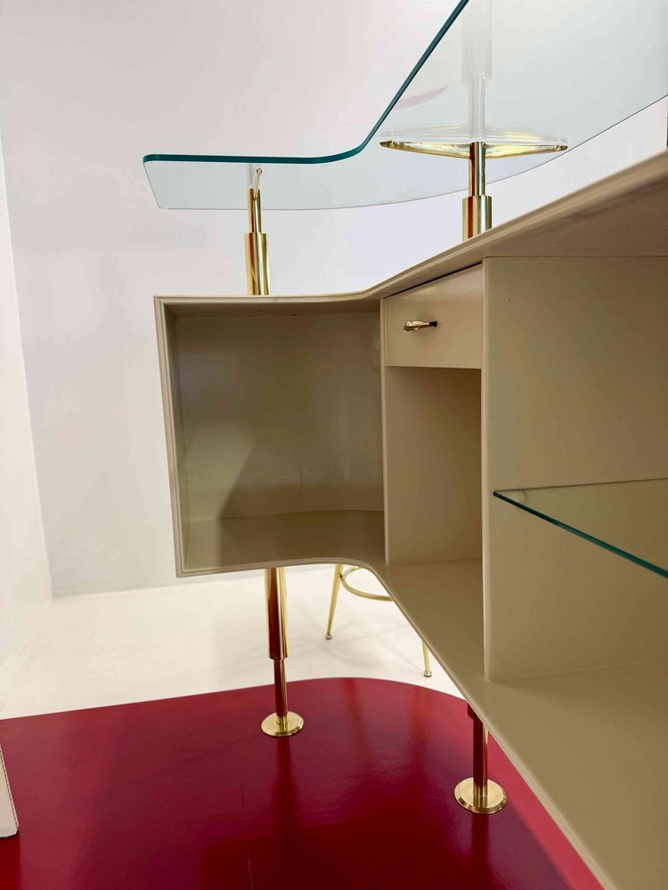 Important and sculptural Italian bar from the 1950s, attributed to Gio Ponti, representing a refined example of architectural design applied to furniture.