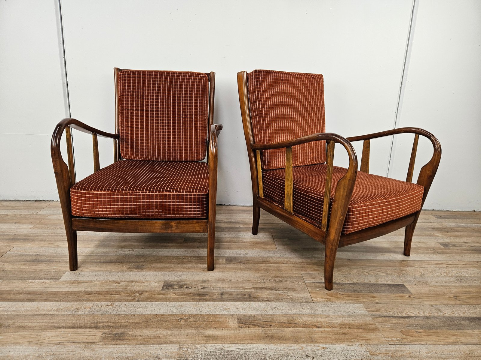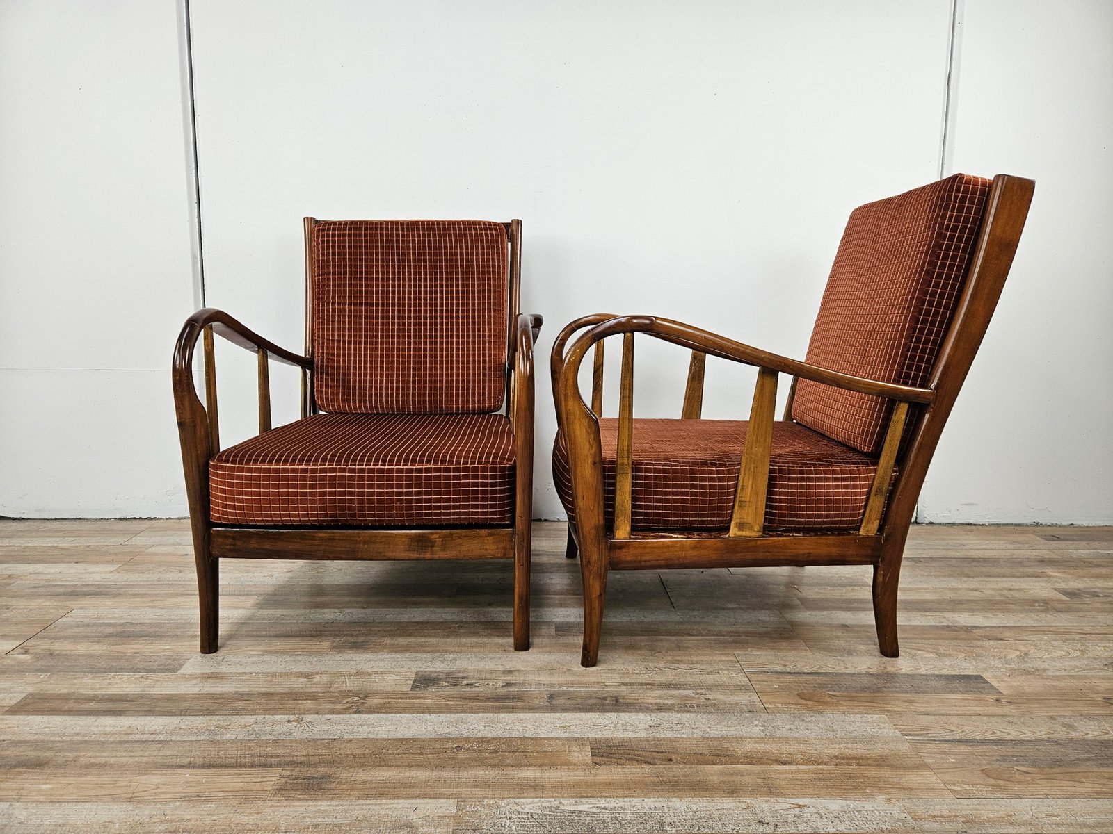 Italienische Vintage Sessel aus Holz & Polsterung, 1950er, 2er Set