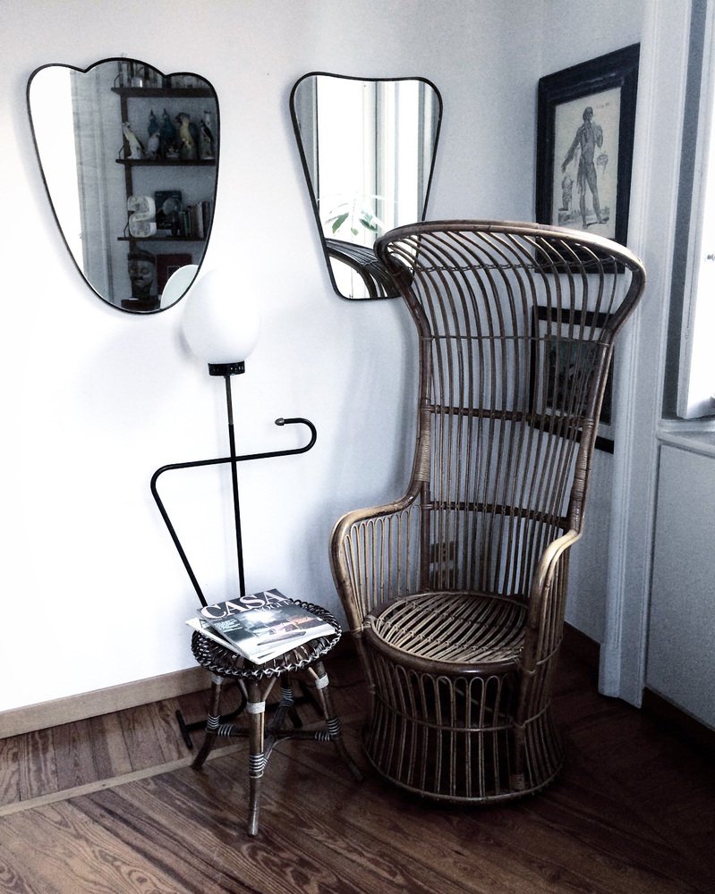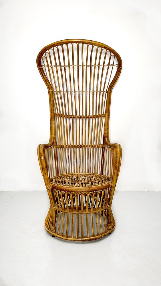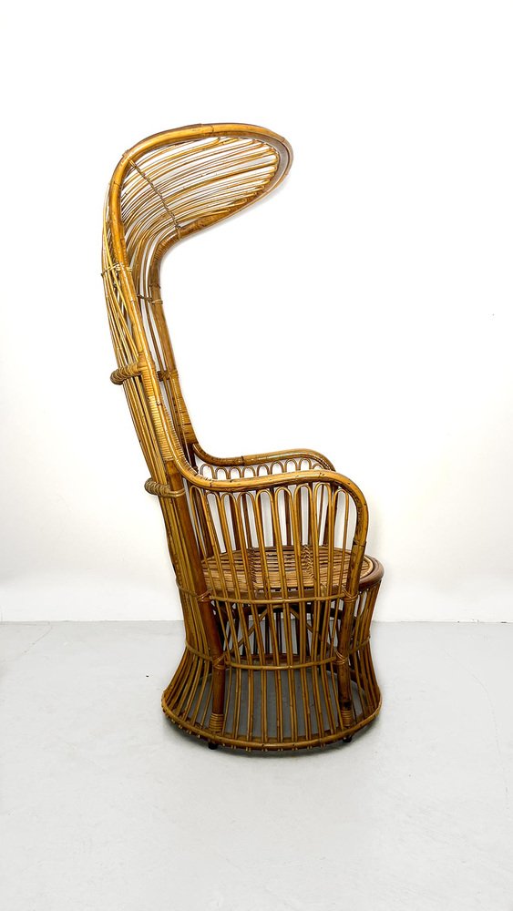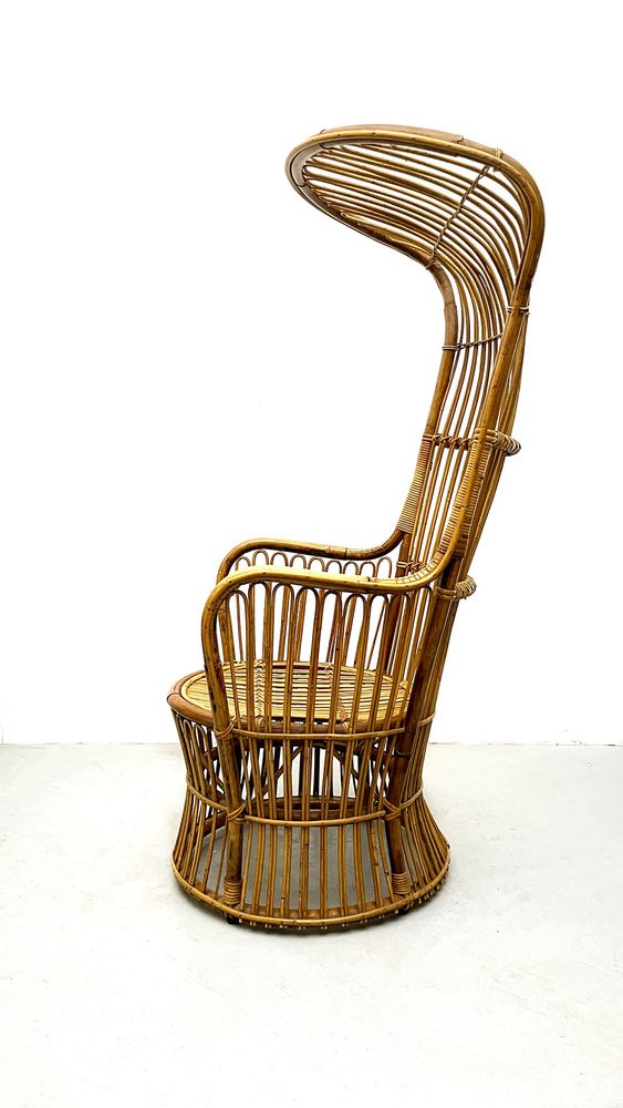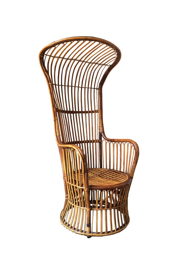 Italienischer Armlehnstuhl aus Rattan mit hoher Rückenlehne, 1950er