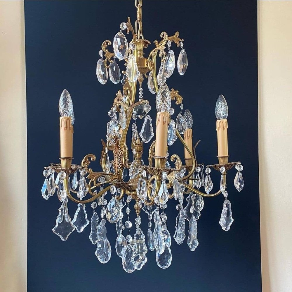 Italienischer Kronleuchter mit Kristallanhängern, 1940er