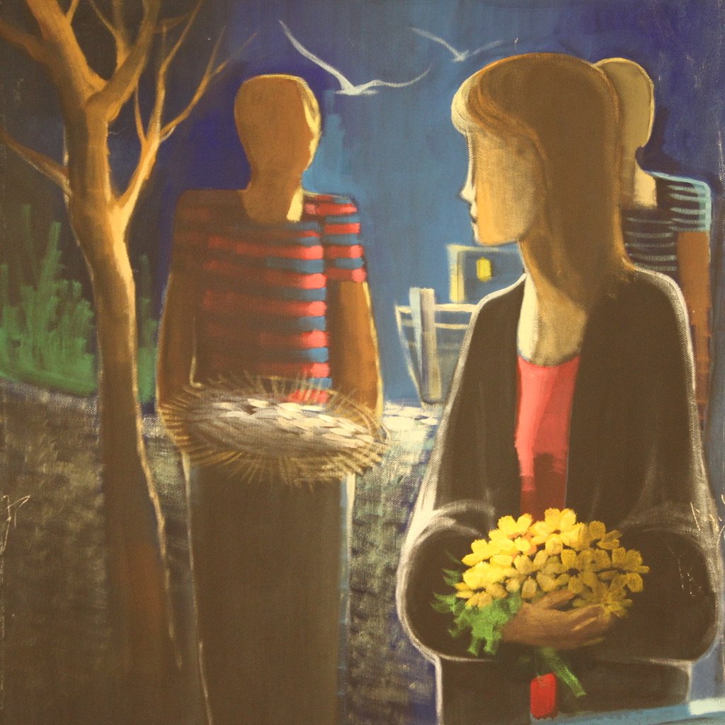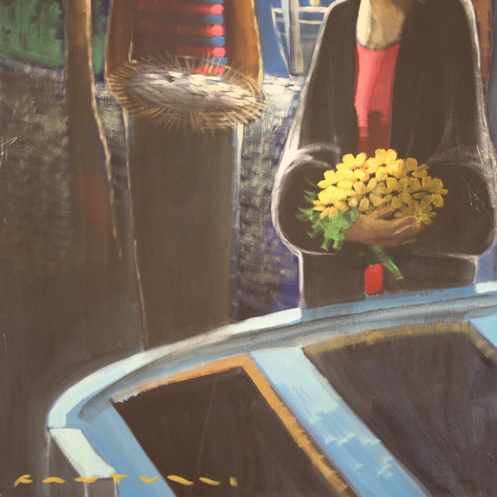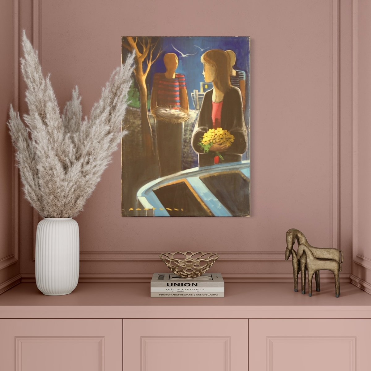 Italienischer Künstler, Figurative Szene, 1970, Öl auf Leinwand