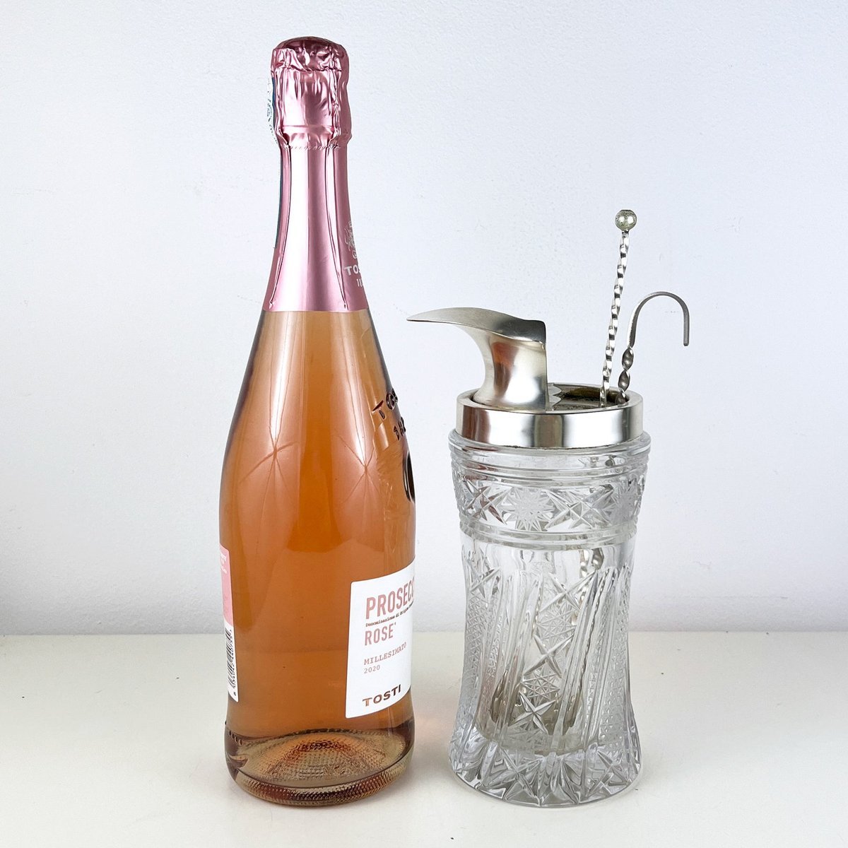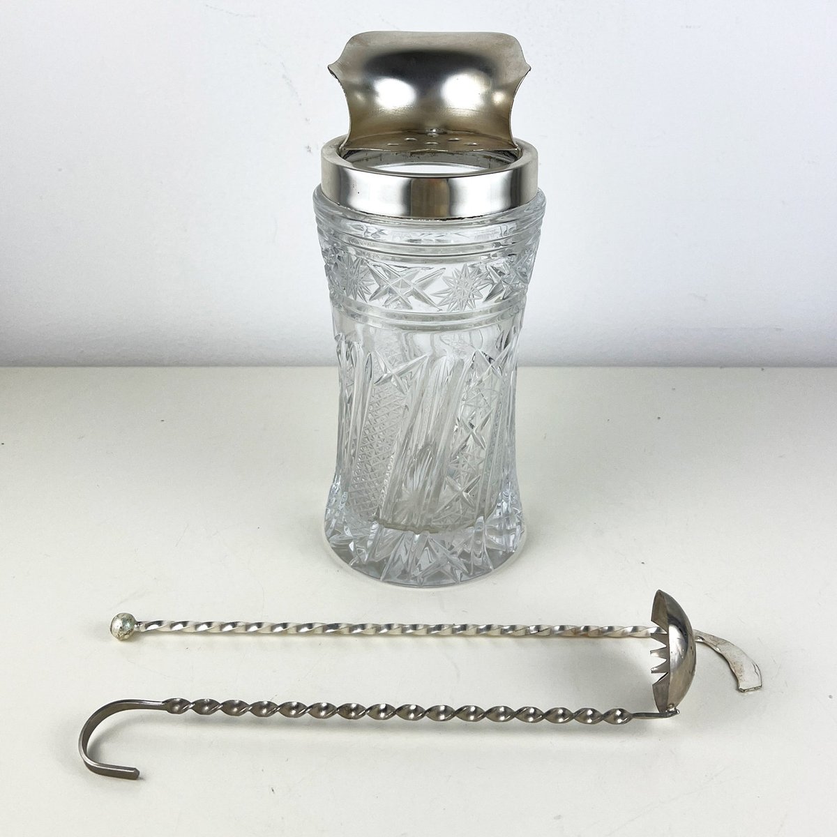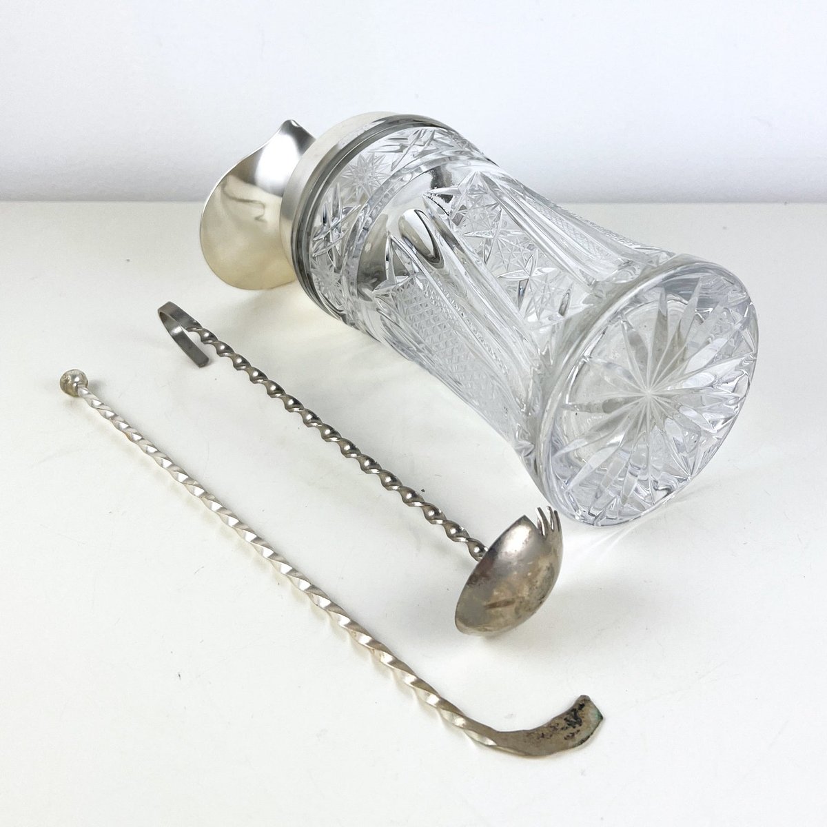Italienischer Mid-Century Cocktail Mixer aus Kristallglas mit Barzubehör, 1940er, 3er Set