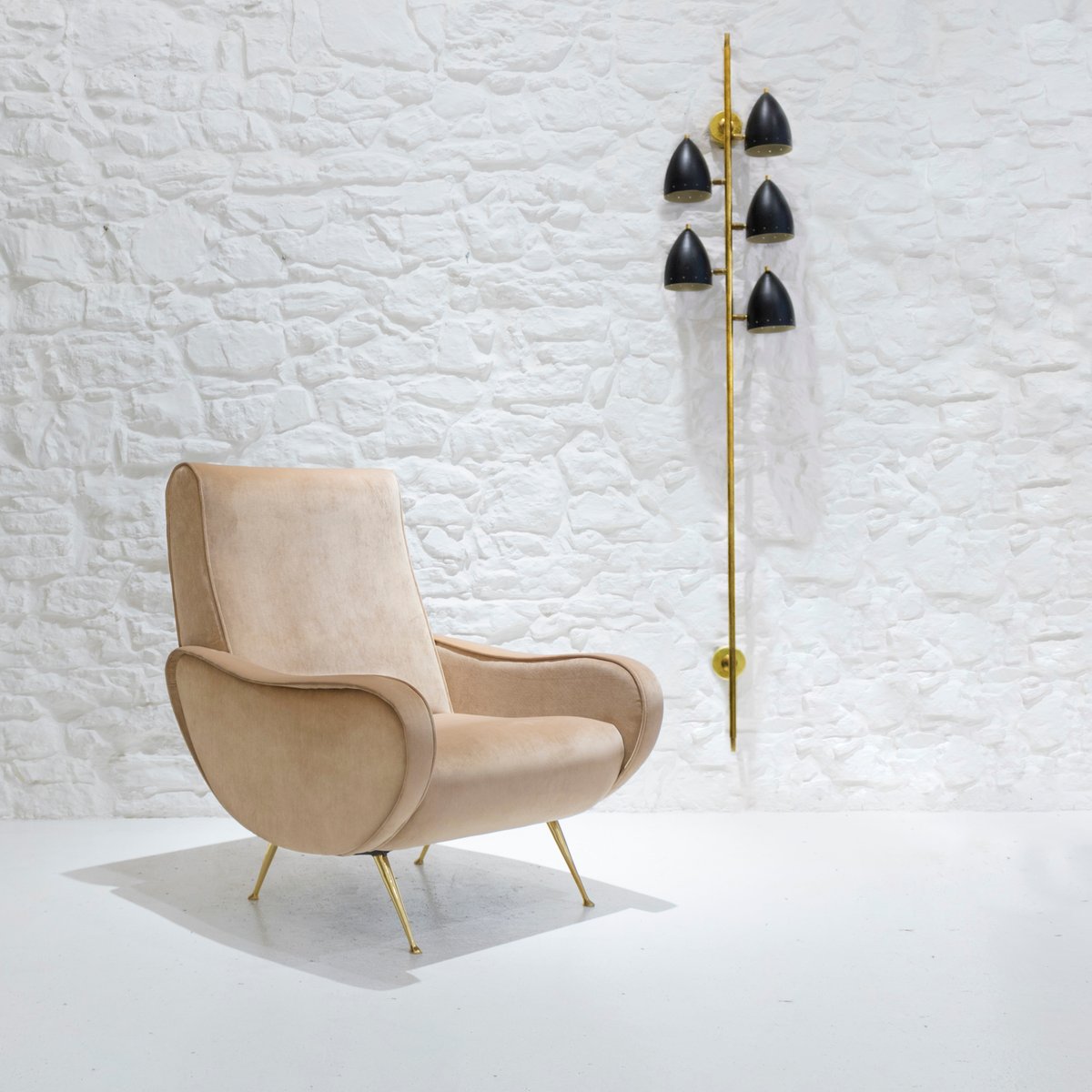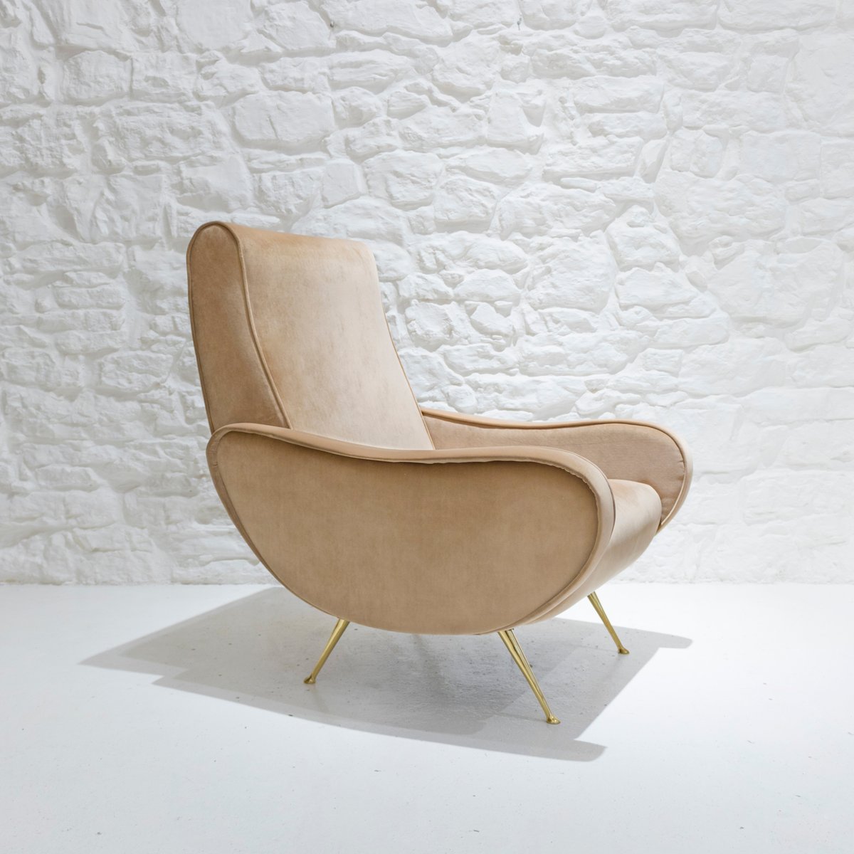 Italienischer Mid-Century Sessel aus Samt & Messing, 1950er