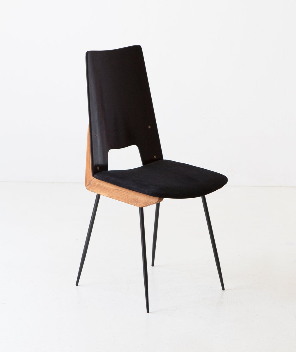 Italienischer Schreibtischstuhl mit schwarzem Wildledersitz, Carlo Ratti zugeschrieben, 1950er