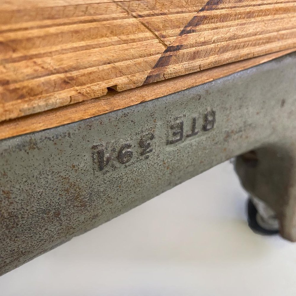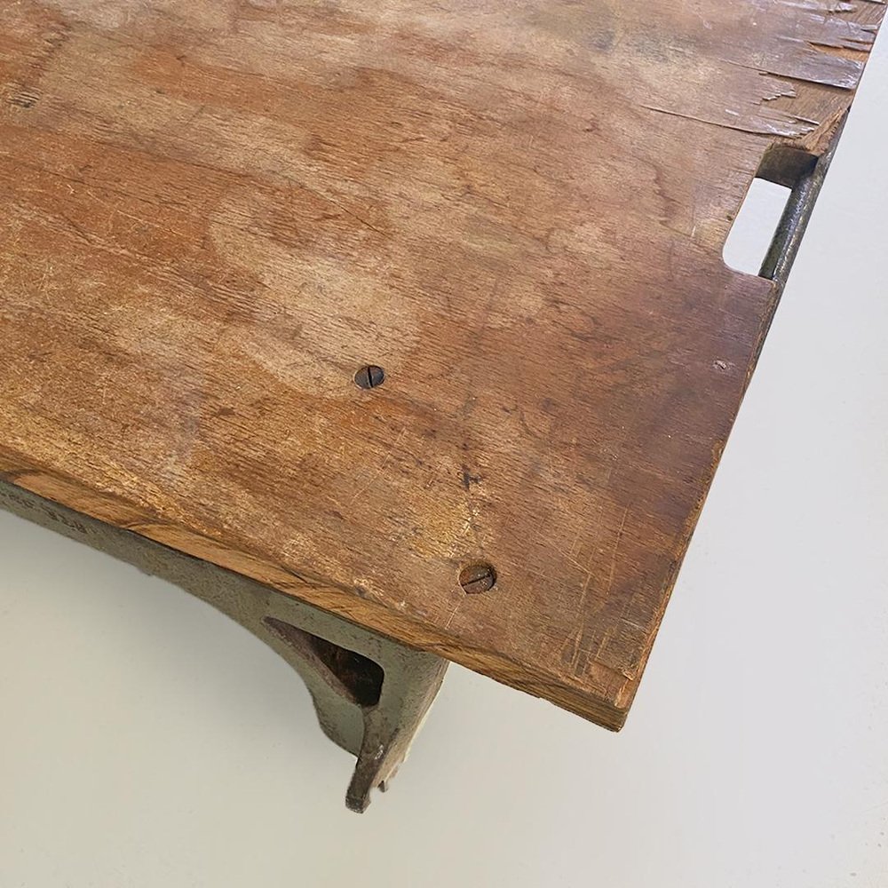 Italian cast iron and wood Italian State Railways storage trolley with wheels, 1930s. Storage trolley of the State Railways, with cast iron base and wheels, with square-shaped wooden top and a handle placed on one of the 4 sides, also in cast iron. Non-original wheels. 1930 circa Vintage condition, unrestored piano and wheels to be checked. Measurements in cm 68x58x23h memory, an instant from the past, a piece of Italian history enclosed in a furniture trolley from around 1930. A tool for working that easily becomes a coffee table for a modern living room, for the sitting room of a club or for the tavern of a large family. with this piece you can truly bring Italian history into your home.
