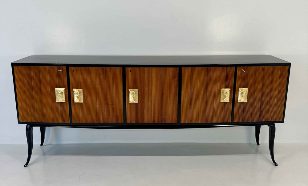 Italienisches Art Deco Sideboard aus lackiertem Nussholz & Blattgold, Osvaldo Borsani zugeschrieben, 1950er