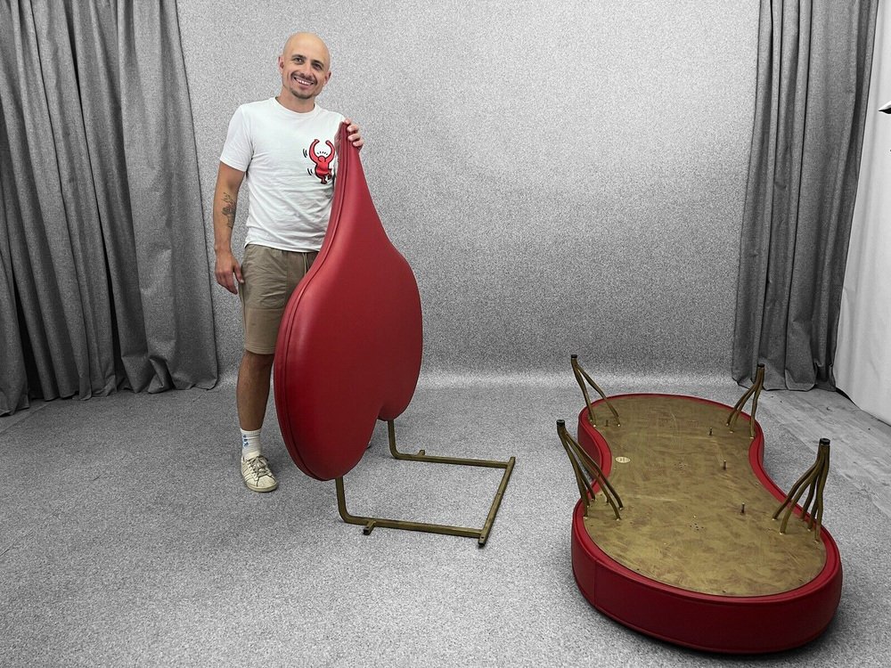 Italienisches Vintage Fiammette Heart Sofa aus rotem Leder von Domusnova