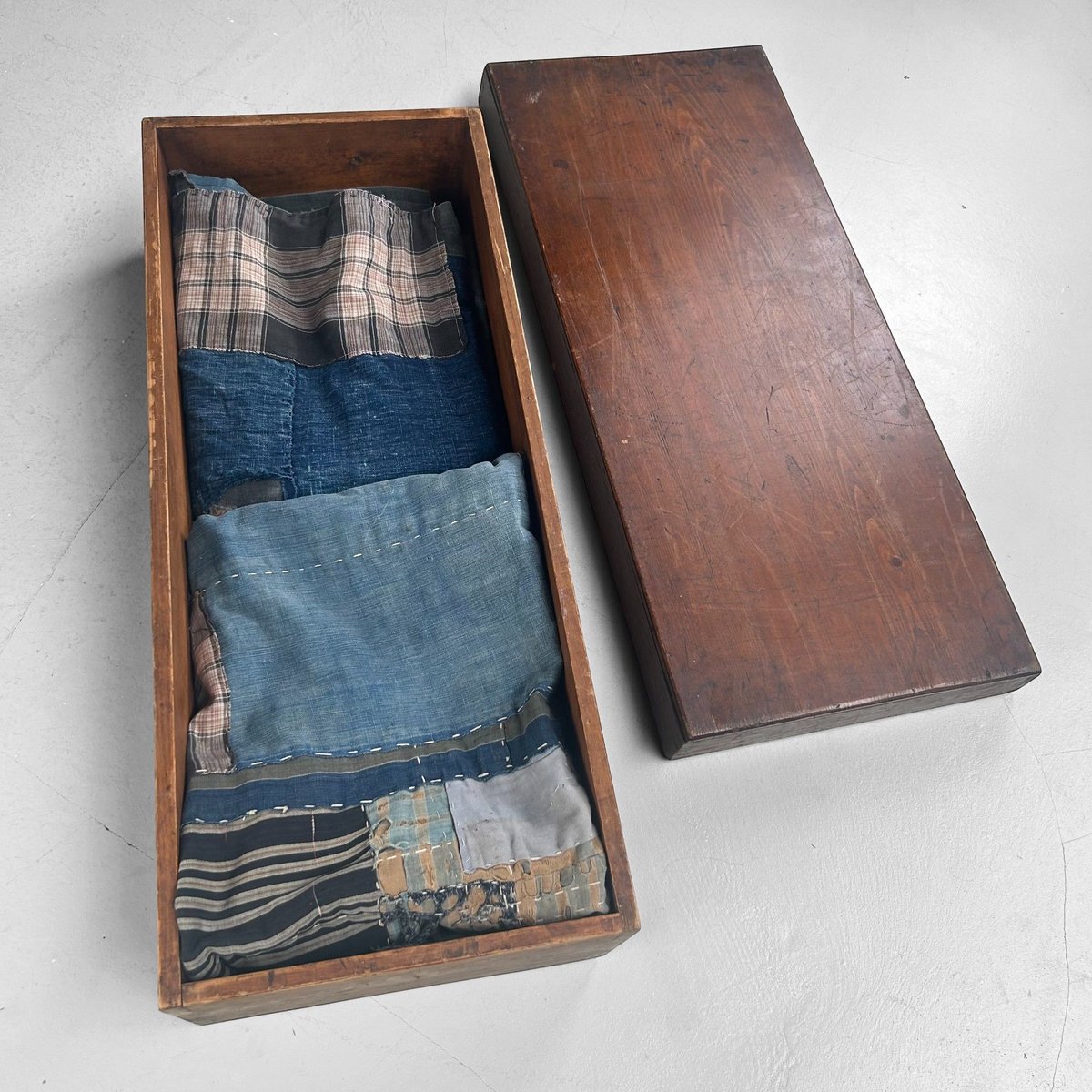 The solid wood has gracefully aged over time, with patina and traces of use that lend the chest a rich, authentic character. Its understated form and warm wood tone make it versatile both practically and aesthetically: ideal as a storage solution for linens or papers, but equally striking as a display base for ceramics, floral arrangements, or sculptural objects.