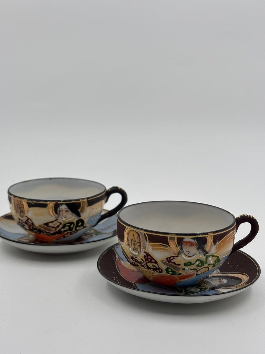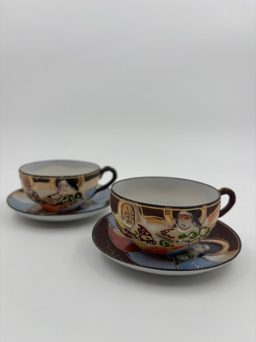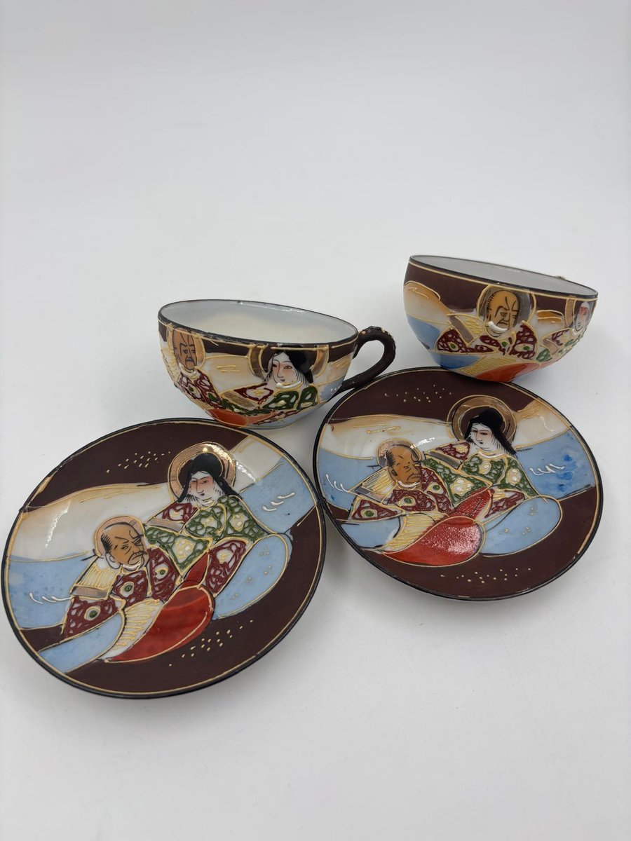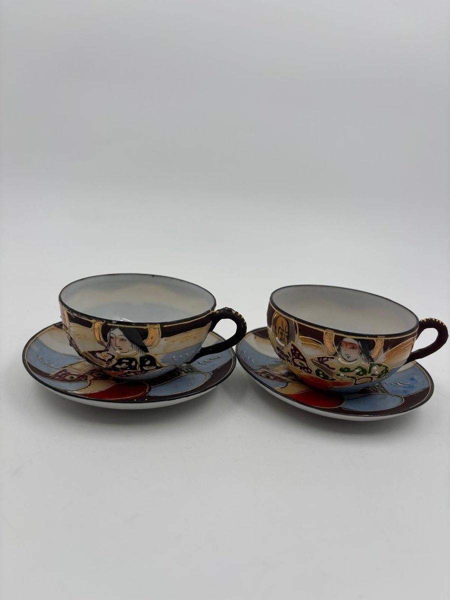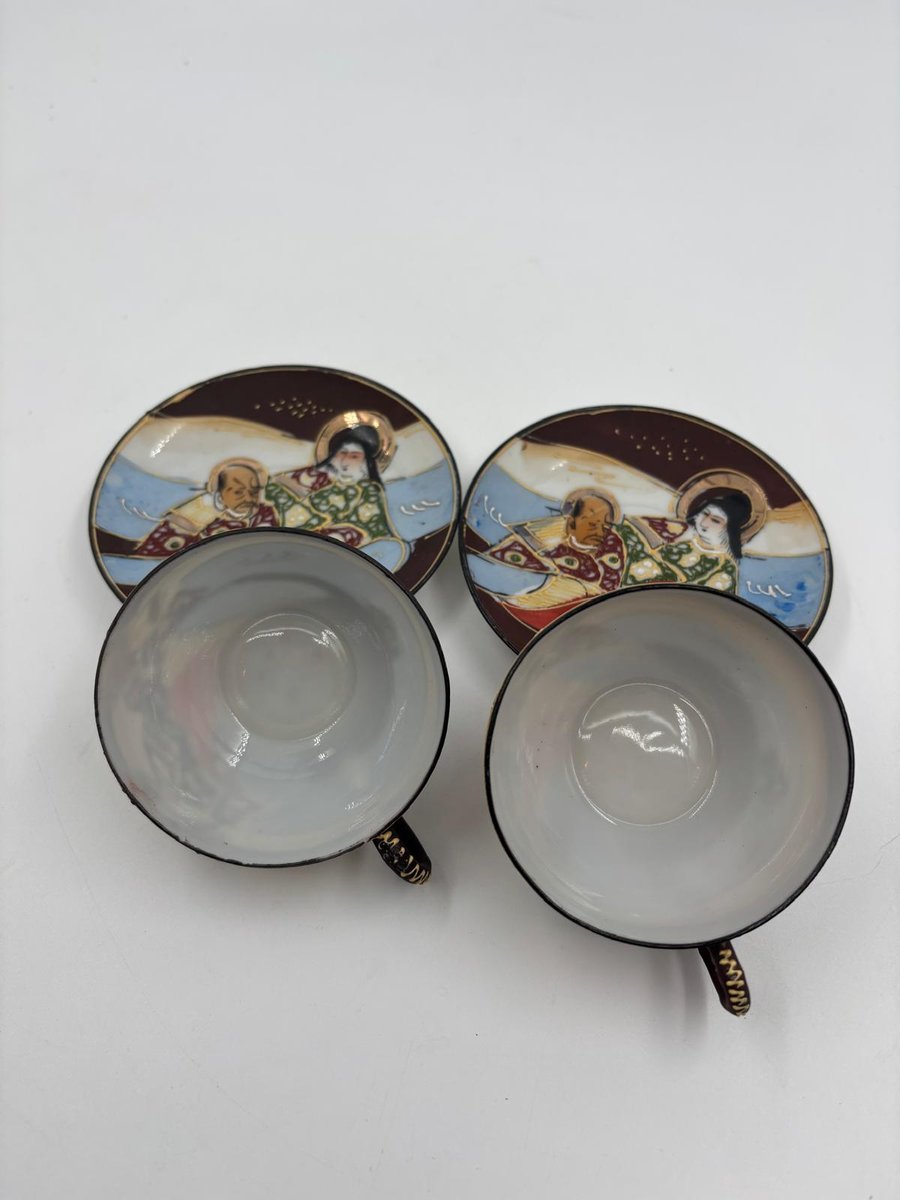 Japanische handbemalte Meiji Satsuma Keramik Mokkatassen, 1890er, 4er Set