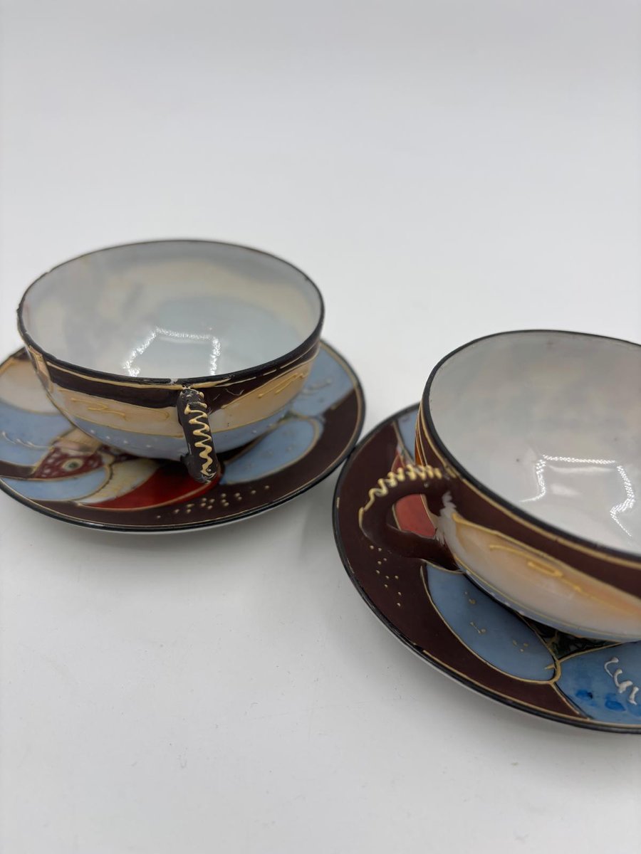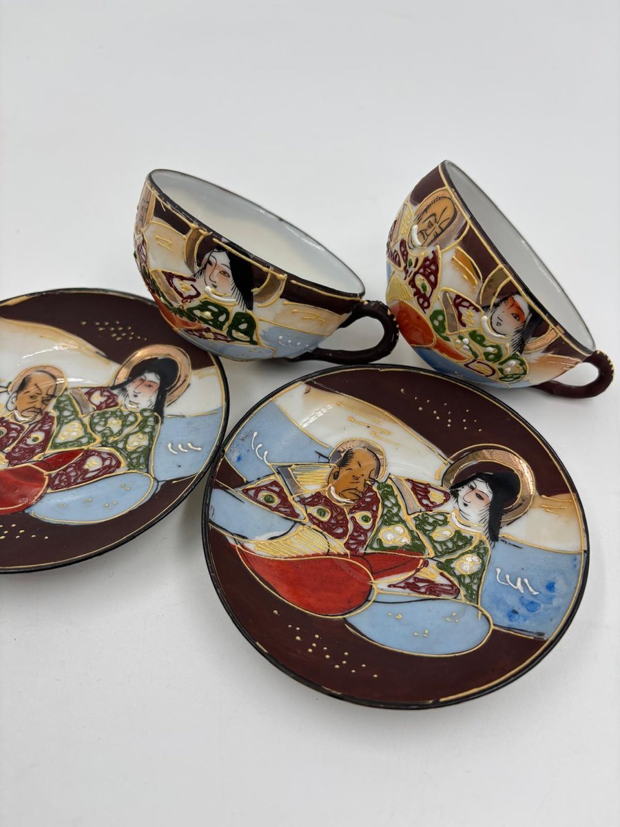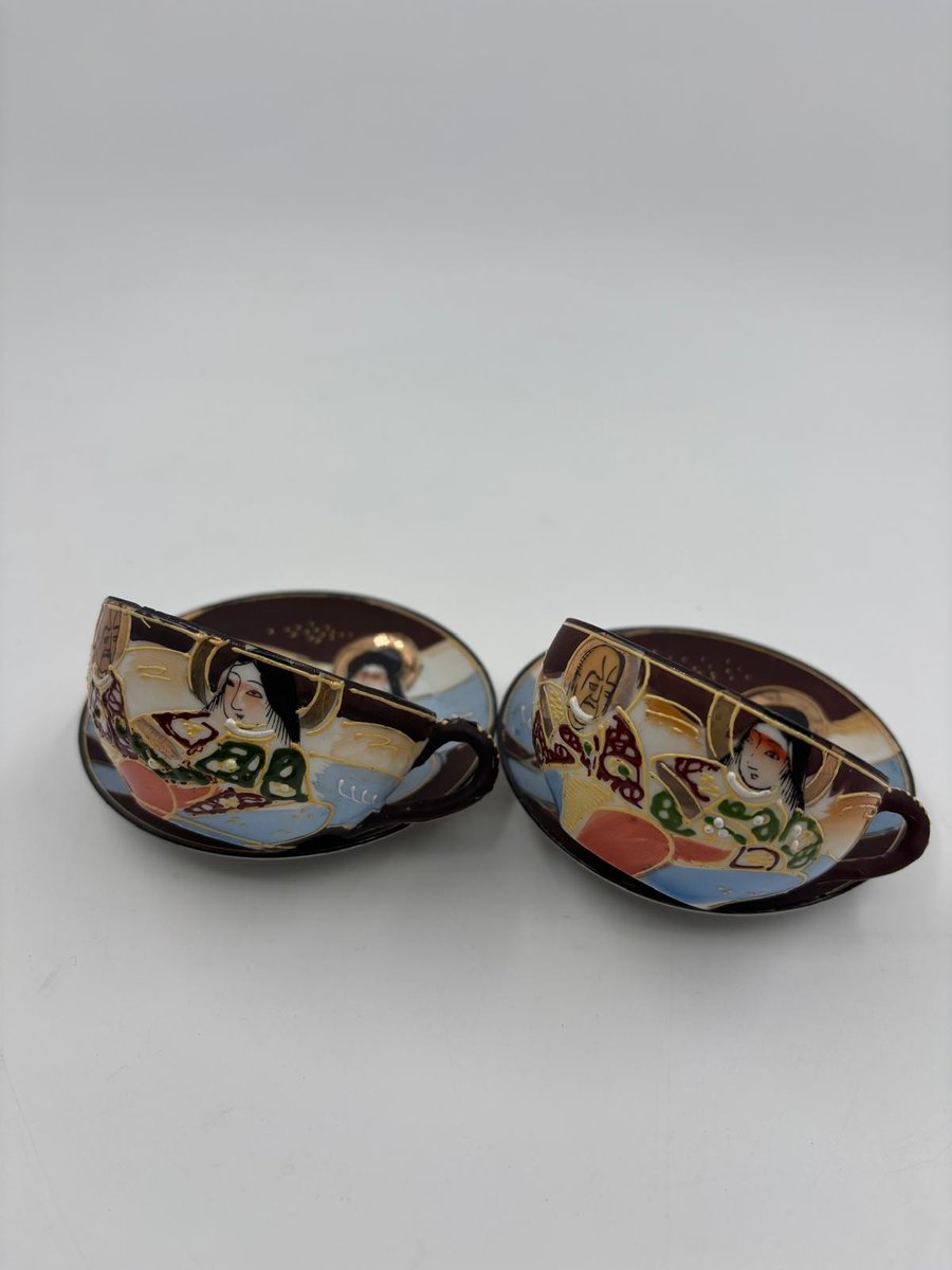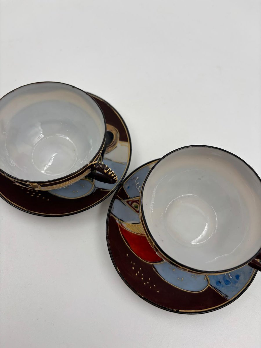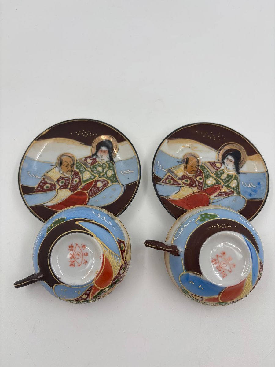 Japanische handbemalte Meiji Satsuma Keramik Mokkatassen, 1890er, 4er Set