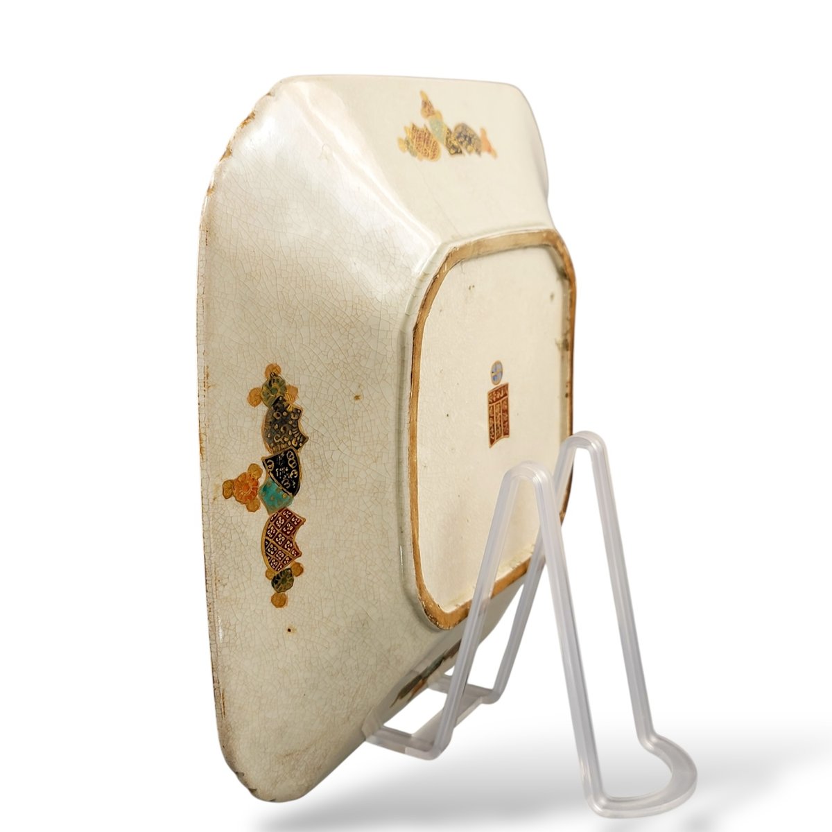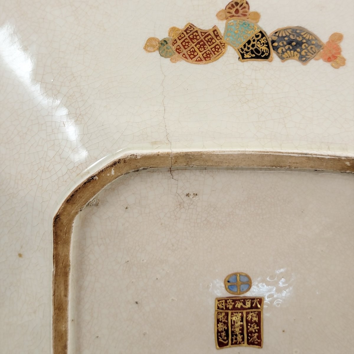 Excellent antique condition. No cracks, restorations, or hairlines (UV tested). Fine surface crackle typical of Kyoto glaze.