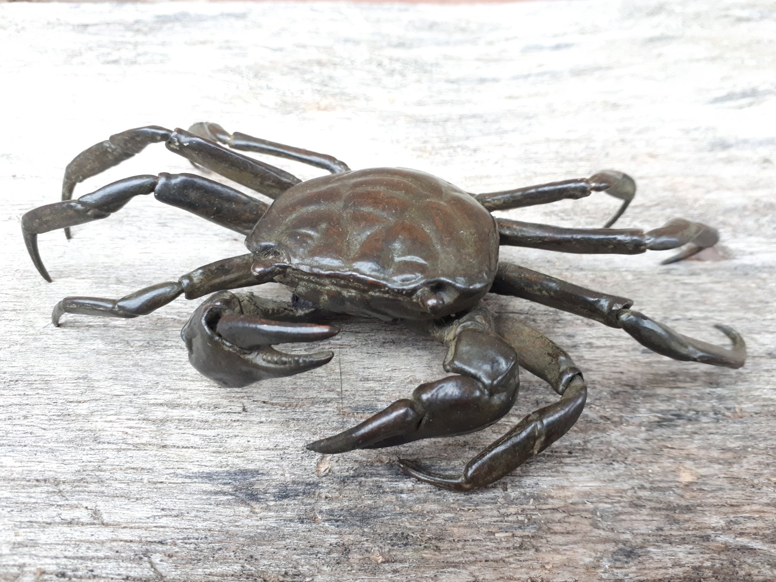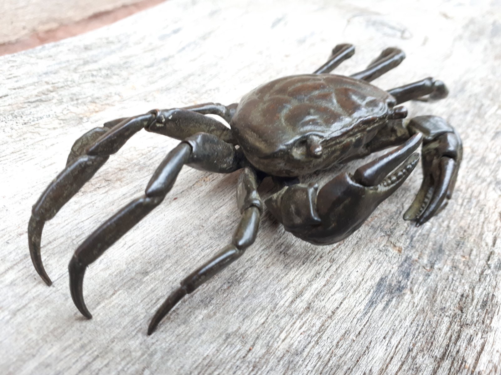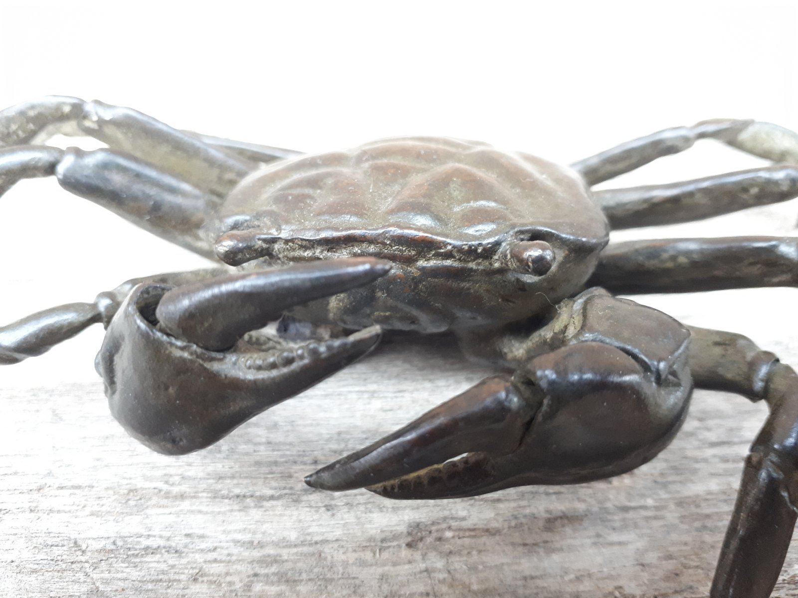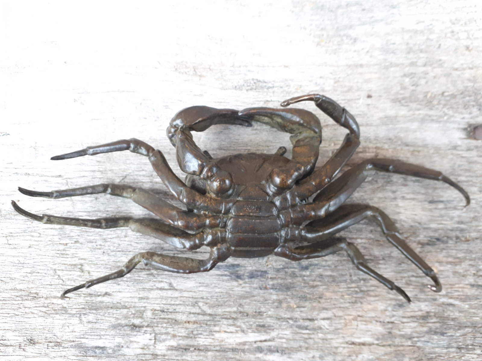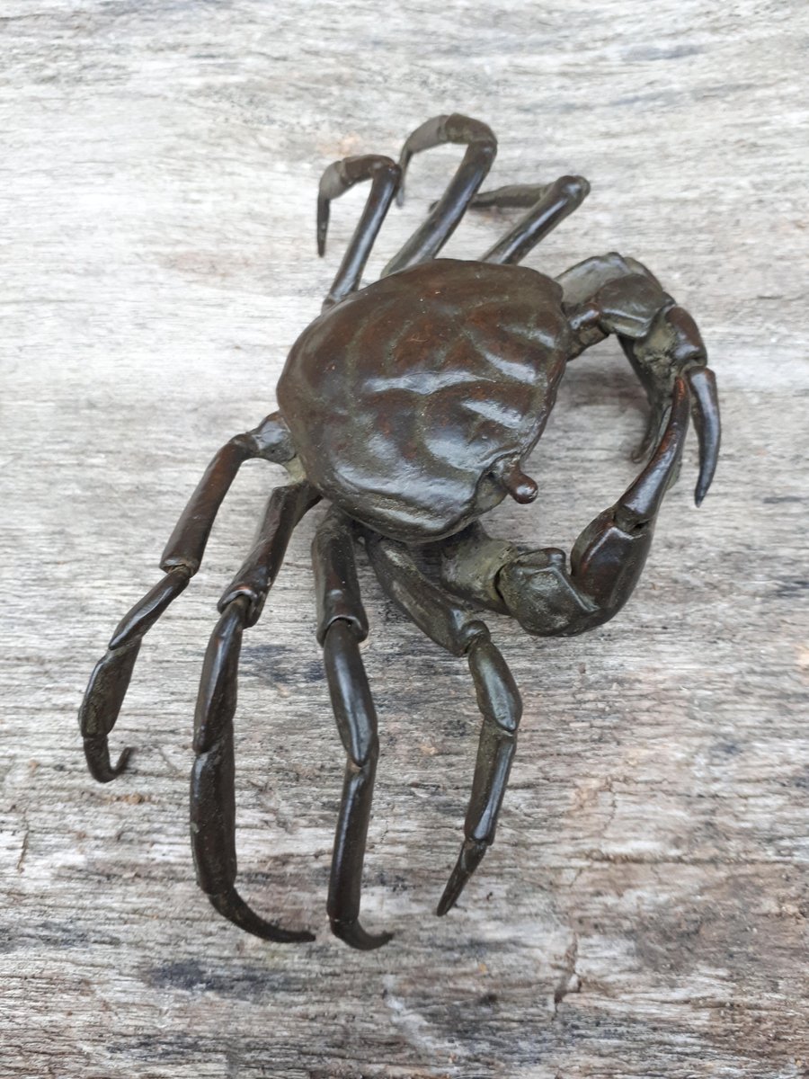 Rare articulated okimono in bronze with brown patina representing a crab, identical to those found in nature.