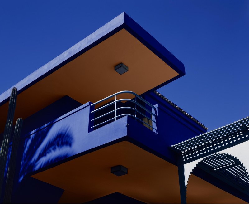 Jardin Majorelle' 2022 The Majorelle Garden, located in Marrakech, Morocco, spans one hectare and serves as both a botanical garden and an artistic landscape. Conceived by the French Orientalist artist Jacques Majorelle, this captivating garden took nearly four decades to materialize, its creation commencing in 1923. Within its confines lies a Cubist-style villa, an architectural gem fashioned by the French architect Paul Sinoir during the 1930s. Over the course of forty years, the Majorelle Garden was meticulously crafted, eventually undergoing restoration by Yves Saint Laurent. Situated amidst the modern urban expanse of Marrakech, this magnificent oasis has gifted the world with a unique and vivid hue known as Majorelle blue. from a limited edition of 20. Photographed in Marrakesh, Morocco 2022 using a 4x5 large format camera. Printed on Fine Art Hahnemuehle archival paper. Signed front and back with Certificate of Authenticity. Shipped flat with express delivery service.