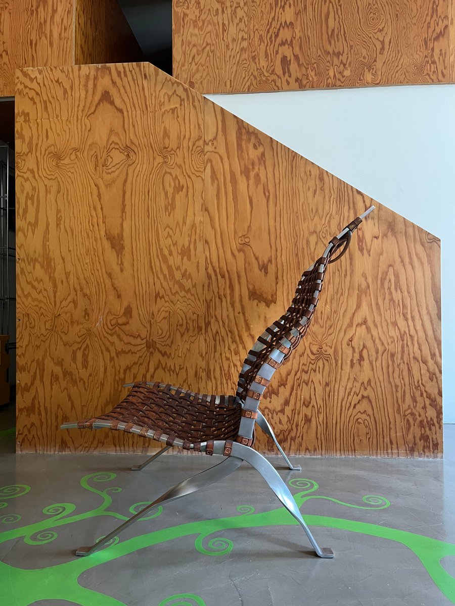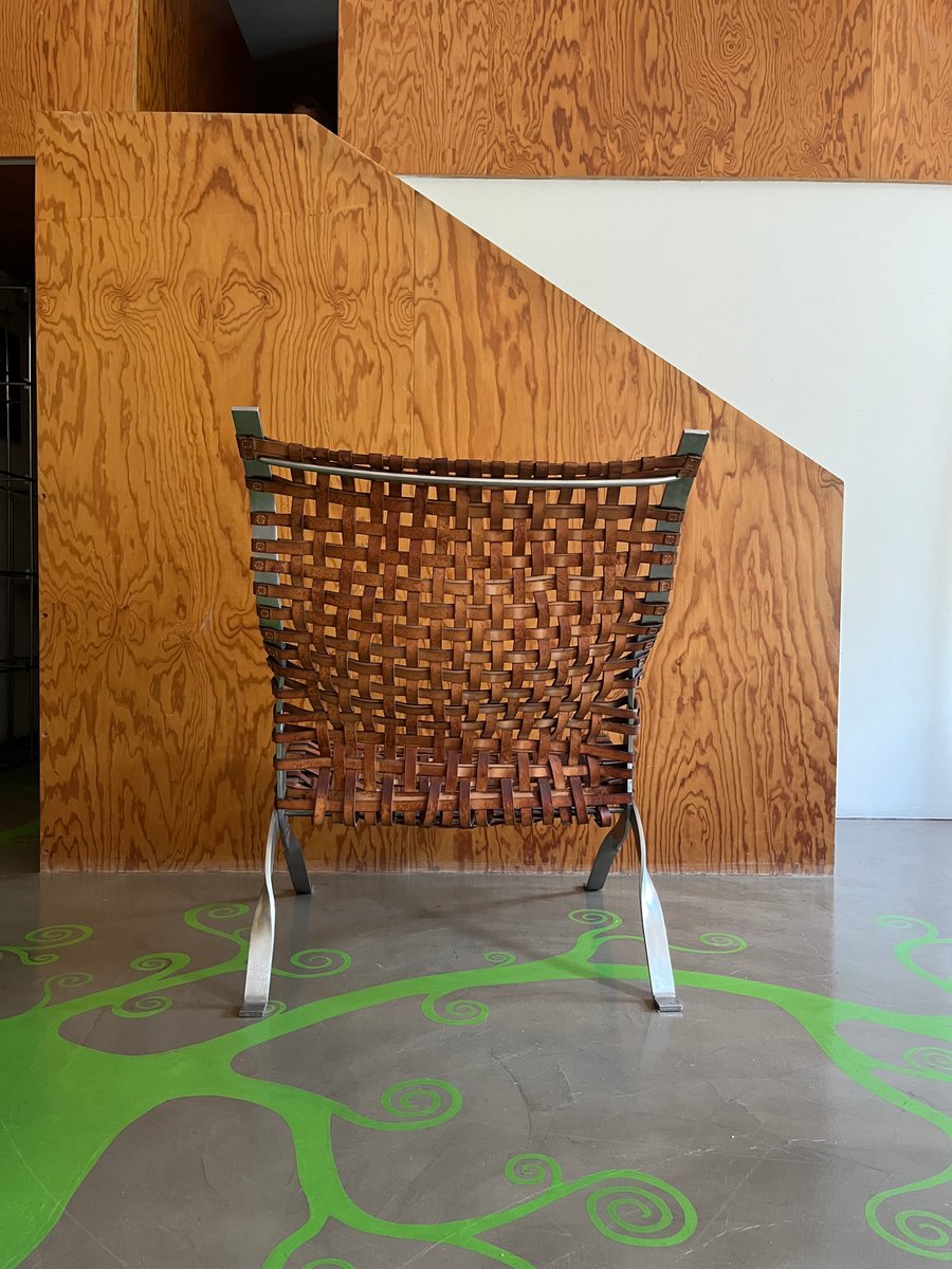 Rare first edition 1994 of the "MILANA" armchair designed by Jean Nouvel and produced by Sawaya and Moroni. This extraordinary armchair is a perfect example of Nouvel's innovation and craftsmanship, combining fine materials such as steel and leather straps, to offer not only comfort, but also a timeless aesthetic.