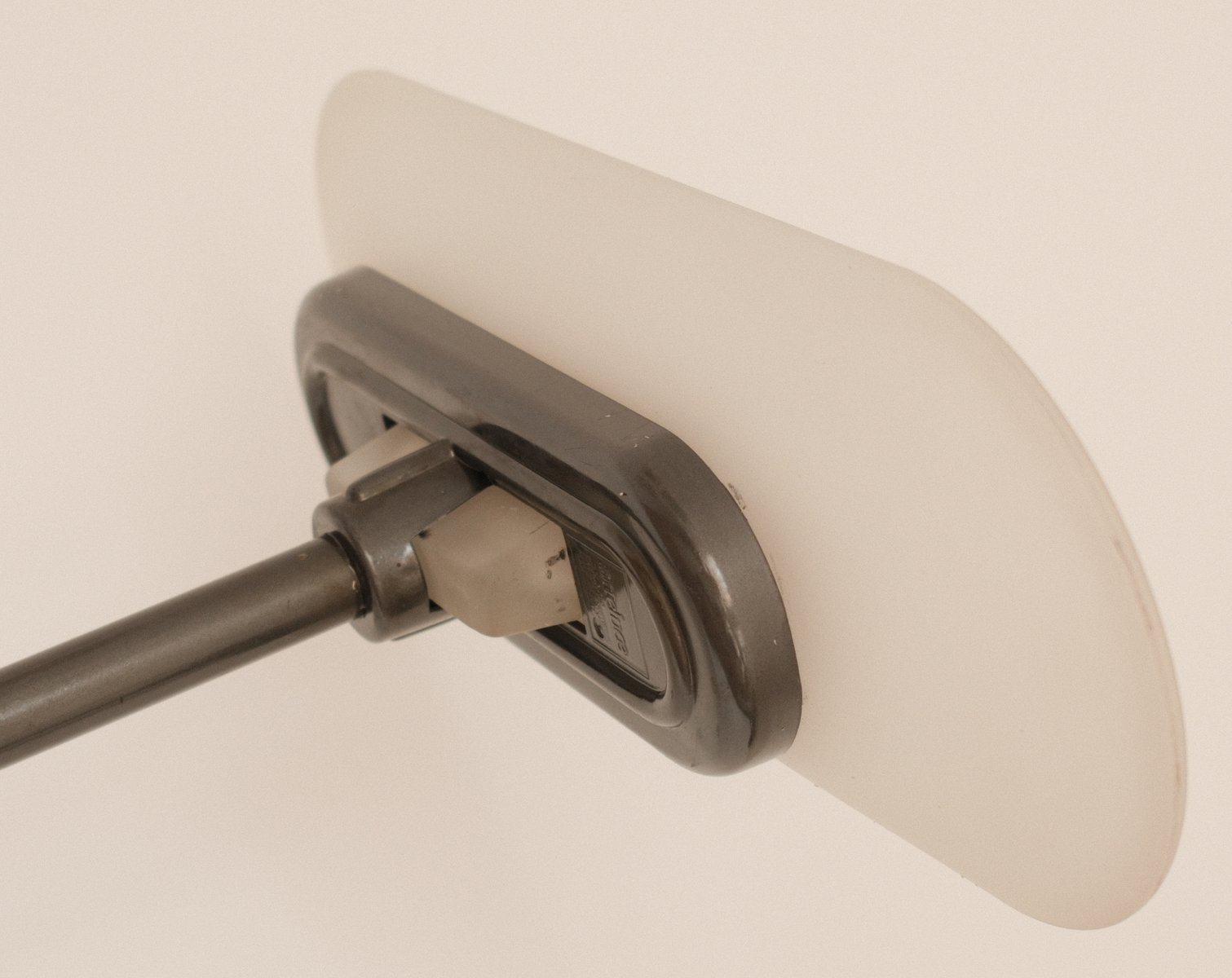 Die minimalistische Struktur wird durch einen dezenten Reflektorkopf ergänzt, der so konstruiert ist, dass er ein kontrolliertes und stimmungsvolles Licht nach oben abgibt. Das Design spiegelt die postrationalistische Entwicklung der italienischen Leuchtengestaltung im späten 20. Jahrhundert wider – wo klare Formen auf zurückhaltende Raffinesse treffen.