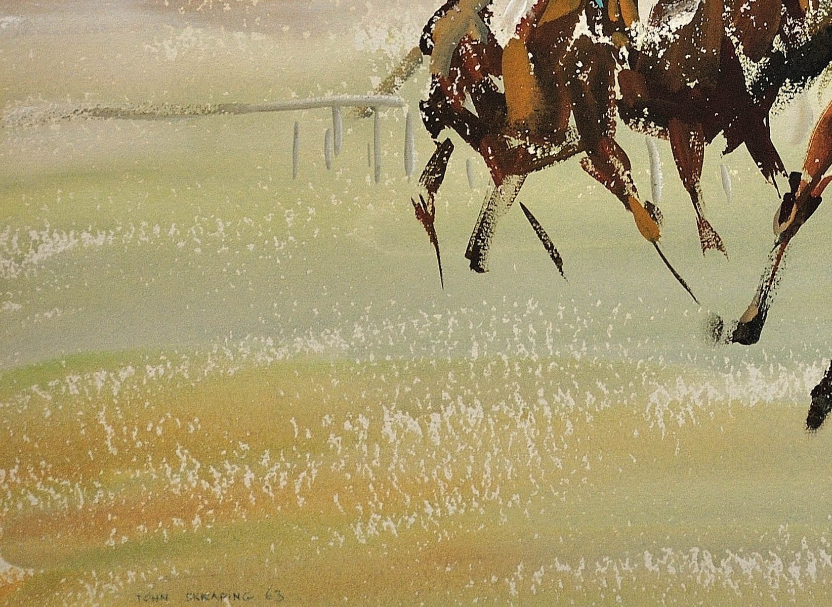 During the late 1940s and into the 1950s, Skeaping was associated with the famous Ackermann firm who offered sporting and racing art. He produced many paintings and drawings of horses during this time. Most of his equestrian works are from the 1960s and 1970s and his subjects covered racehorses, harness horses, flat racers and steeplechasers. He also did some fine commissioned portraits of famous horses of the day including Triple Crown winner Secretariat, Hyperion, Mill Reef, Brigadier Gerard, Chamossaire, and more. He received many commissions during his life, mainly for his horse sculptures.