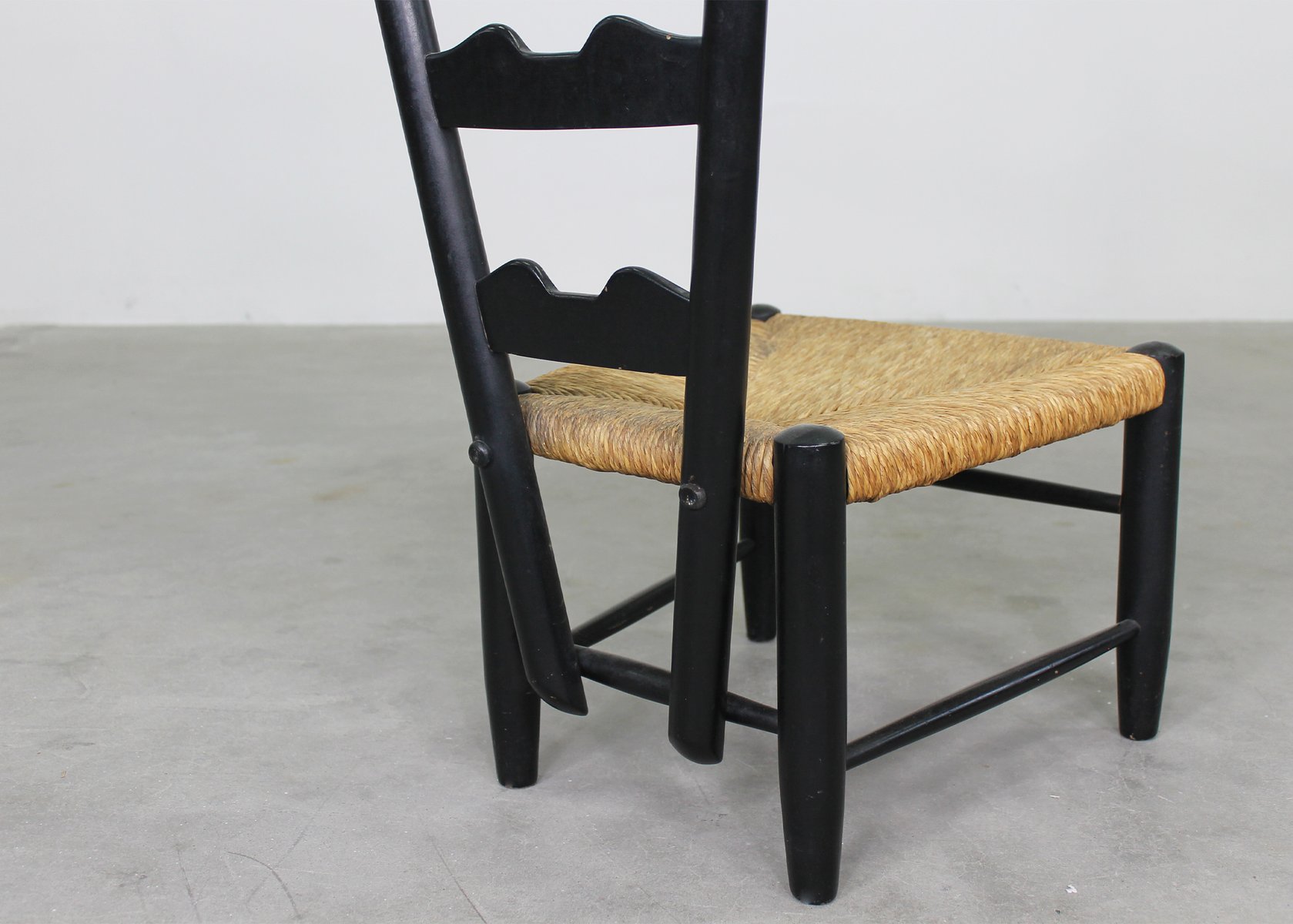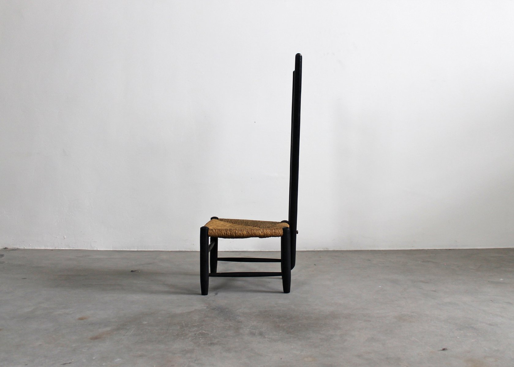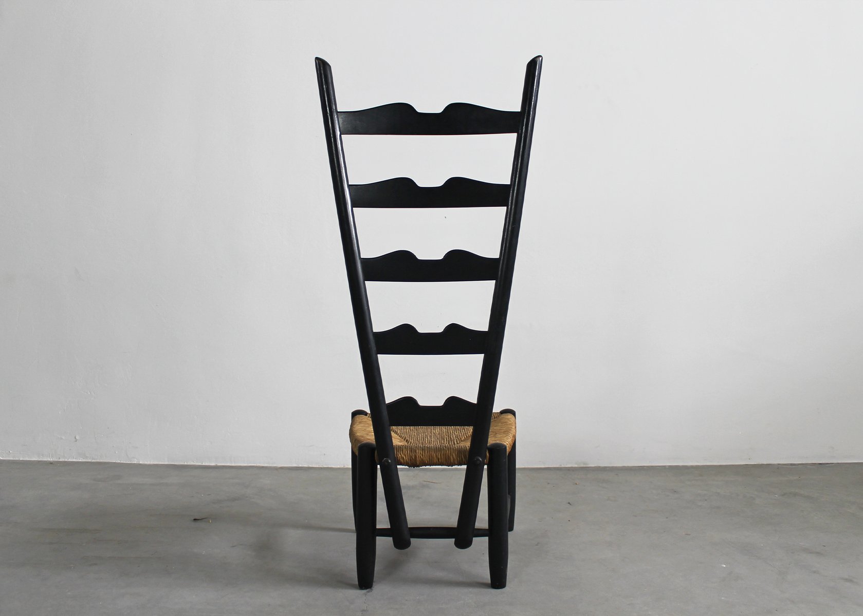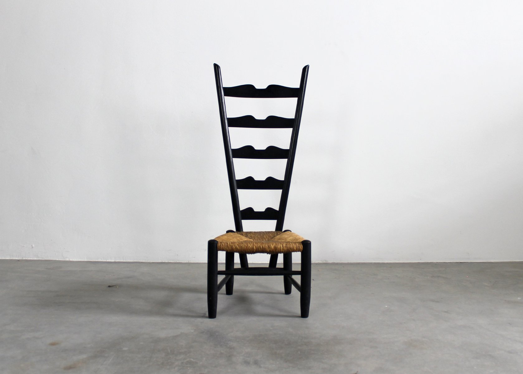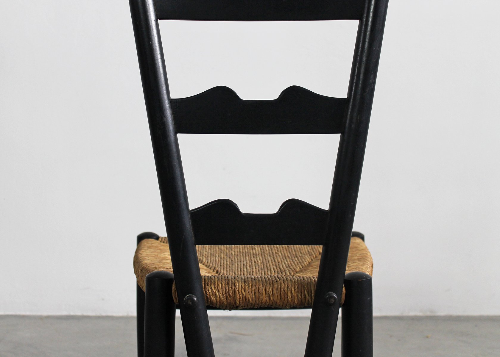 Kaminsessel aus Schwarz lackiertem Holz & Rush von Gio Ponti für Casa E Giardino, 1950er