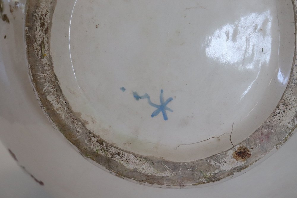 Unter dem Sockel der Vase befindet sich eine Marke, die möglicherweise auf die berühmten Keramiker von Nove Bassano, Italien, zurückgeht.