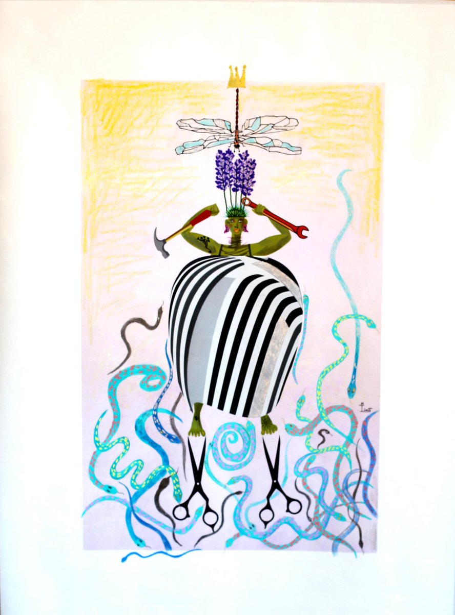 Mixed media on Hanji Korean traditional paper Kim Soo Young is a Korean artist born in 1978 who lives and works in Seoul, South Korea. Through over two decades of deep immersion in French artistic traditions, Soo Young Kim has forged a unique creative identity that defies easy categorization. Born in Korea but transformed by her years in France, she moves fluidly between the realms of fine art and fashion, masterfully blending traditional craftsmanship with cutting-edge digital innovation. Her work poses provocative questions about authenticity, replication, and originality in our contemporary artistic landscape. Soo Young's latest series explores an enduring symbol of female power - the Queen. Throughout history, queens have embodied far more than mere hereditary authority; they represent the pinnacle of feminine influence, wisdom, and commanding presence. While historical narratives often spotlight kings, visionary queens like Cleopatra VII and Elizabeth she proved that women could be transformative forces, fundamentally reshaping societies and civilizations through their leadership. In these works, Soo Young boldly reimagines queenship for the 21st century. Her queens derive their authority not from royal lineage but from their own fierce authenticity, determination, and achievements. The pieces interweave portraits of historical monarchs with images of modern female pioneers - innovative executives, groundbreaking scientists, visionary artists, and community leaders. Through this dynamic visual dialogue between past and present, Soo Young illuminates how female power has evolved beyond traditional constraints, flowing into every sphere of contemporary life. The result is a compelling meditation on how women continue to redefine leadership and excellence on their own terms.