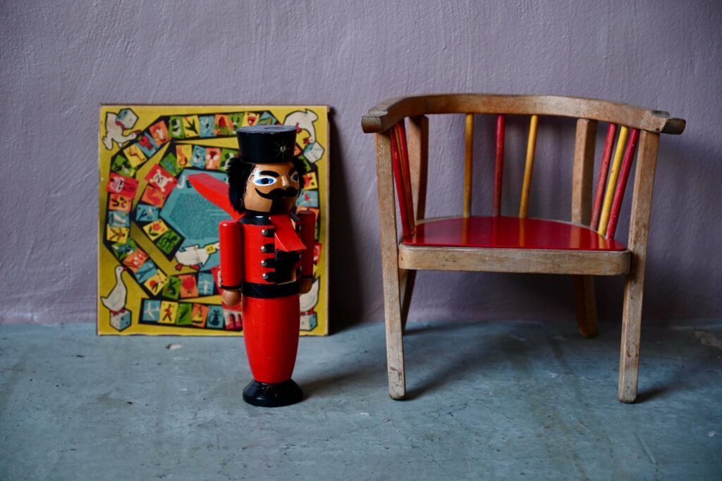 Is it necessary to present it? Here is the famous Baumann toilet chair: a superb vintage piece dating from the 1940s. Entirely in weathered varnished wood, the colored bars and the bright red seat make the whole thing even more charming and sparkling.