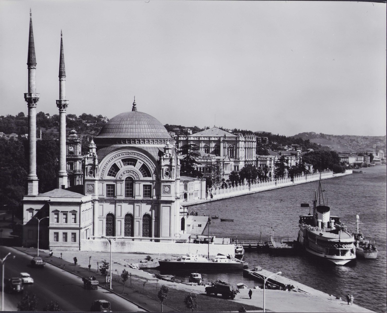 This black-and-white photograph, taken in 1969 by Klaus Redenbacher, shows the Dolmabahçe Mosque on the Bosphorus shoreline in Istanbul. The mosque, with its large central dome and two slender minarets, dominates the left side of the frame. In front, a road with cars and a tram runs parallel to the water. To the right, ferries are moored at the pier, highlighting the role of maritime transport in the city at that time. Behind the mosque, the ornate Dolmabahçe Palace stretches along the waterfront, symbolizing the grandeur of Ottoman architecture in the 19th century. The photograph captures a clear view of the Bosphorus, the historic mosque, and the palace, set against the hilly background of Istanbul, offering a vivid glimpse of the city’s urban and cultural landscape in the late 1960s. This image exemplifies Redenbacher’s ability to blend artistic vision with documentary photography, capturing not only the grandeur of Istanbul’s historic skyline but also the essence of a bygone era. About Klaus Redenbacher "A photographer paints with the camera" (Augsburger Allgemeine, May 7/8, 1970) or "Pioneer and father of the modern color portrait" (Who's Who in Photo, Film & TV, circa 1980) are just a few examples of the press acclaim that describe Klaus Redenbacher’s photographic work and career, which spanned nearly five decades. Born in Nuremberg in 1935, he began an apprenticeship as a photo lab technician with portrait photographer Ludwig Harren in Nuremberg from 1952 to 1956, before enrolling at the Bavarian State Institute of Photography in Munich. His first professional steps followed as a fashion and advertising photographer for the Daco publishing house (Günther Bläse) and the Herrmann Bruder advertising agency in Stuttgart. In 1960, he passed his master craftsman's examination in photography, with a focus on portrait, fashion, industry, and advertising. He then worked as a freelance photojournalist. A photo report on Istanbul was published in Madame magazine and awarded first prize by the travel magazine Merian (1960/61). As part of the University of the Seven Seas program, Redenbacher served as a ship photographer aboard the intercontinental cruise ship MS Seven Seas in 1963/1964. He also produced advertising and industrial photography for companies such as Bayer AG, Electrostar, the Waldhof-Aschaffenburg paper mills, and Kodak. Starting in 1969, Redenbacher increasingly devoted himself to color portrait photography. In the same year, he took over the management of the ERTL photo studio in Augsburg. Two years later, in 1971, he opened his own studio at Martin-Luther-Str. 24 in Munich-Giesing, which remained a prominent address for portrait photography in Munich until 2004. Redenbacher achieved his greatest success in portrait photography, benefiting from his background in fashion and advertising as well as from the fact that German print media began introducing color photography in the second half of the 1950s, while traditional photographic portraiture was still primarily done in black and white. Ultimately, Redenbacher saw himself as a portrait photographer with an artistic, painterly ambition, whose work was largely informed by a journalistic approach in color. Over the course of his long career, he portrayed prominent figures such as writer and painter Jean Cocteau, composer Carl Orff, zoologist Konrad Lorenz, Nobel Prize-winning physicist Werner Heisenberg, and sculptor Helmut Lederer. For his achievements in portrait photography, he was awarded the Euro Medal for Art and Culture in Gold by the Baden-Baden Cultural Circle (1980) and the Gold Medal of the Accademia Italia delle Arti e del Lavoro, based in Salsomaggiore Terme, Italy (1982).