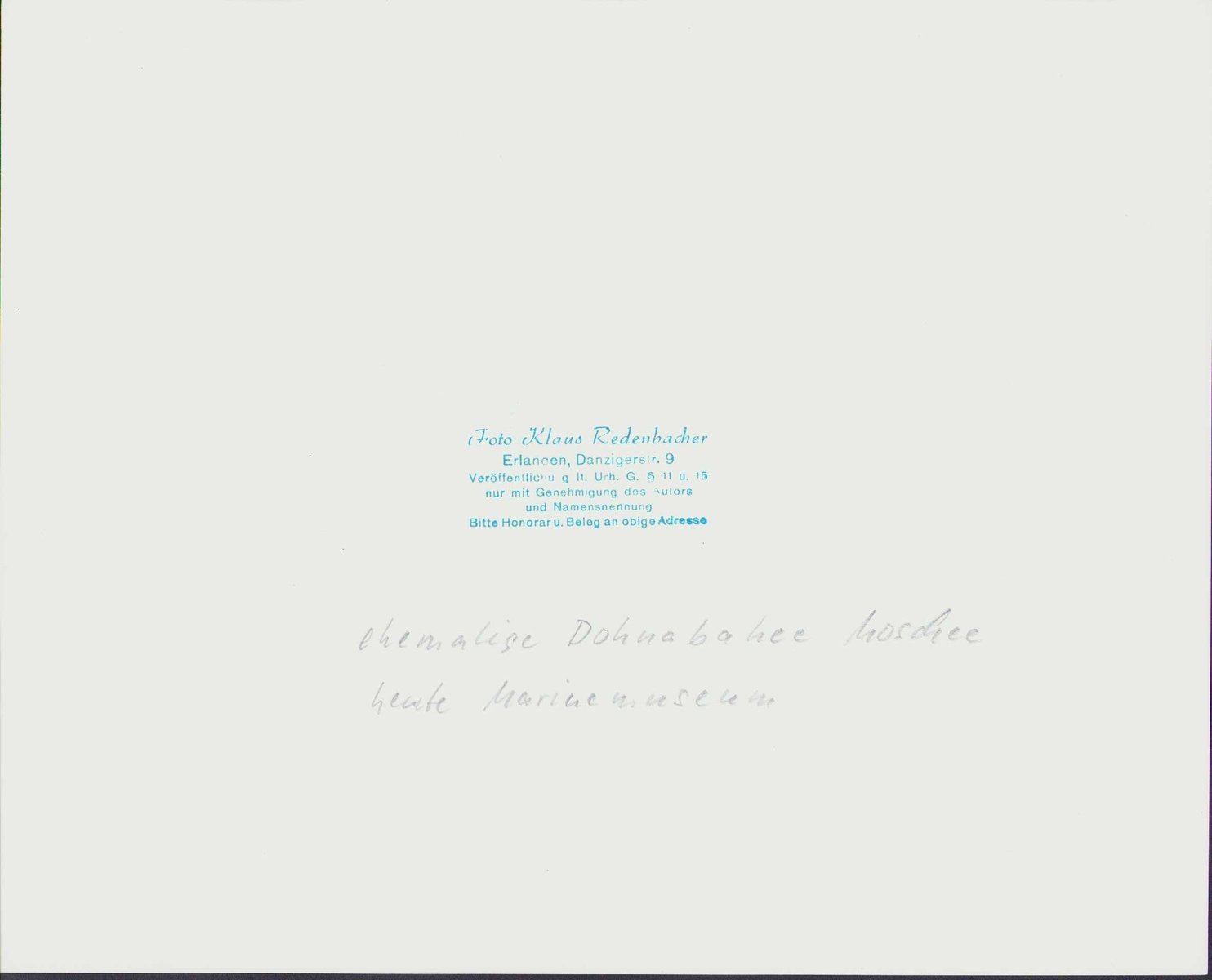 Diese Schwarz-Weiß-Fotografie von Klaus Redenbacher aus dem Jahr 1969 zeigt die Dolmabahçe-Moschee am Ufer des Bosporus in Istanbul. Die Moschee mit ihrer großen zentralen Kuppel und zwei schlanken Minaretten dominiert die linke Seite des Bildes. Davor verläuft parallel zum Wasser eine Straße mit Autos und einer Straßenbahn. Auf der rechten Seite liegen Fähren an der Anlegestelle, was die Bedeutung des Seeverkehrs in der Stadt zu jener Zeit verdeutlicht. Hinter der Moschee erstreckt sich der prächtige Dolmabahçe-Palast entlang der Uferpromenade und symbolisiert die Pracht der osmanischen Architektur im 19. Das Foto zeigt den Bosporus, die historische Moschee und den Palast vor dem hügeligen Hintergrund Istanbuls und vermittelt einen lebendigen Eindruck von der urbanen und kulturellen Landschaft der Stadt in den späten 1960er Jahren. Dieses Bild ist ein Beispiel für Redenbachers Fähigkeit, künstlerische Visionen mit Dokumentarfotografie zu verbinden und nicht nur die Erhabenheit der historischen Skyline Istanbuls, sondern auch das Wesen einer vergangenen Ära einzufangen. Über Klaus Redenbacher "Ein Fotograf malt mit der Kamera" (Augsburger Allgemeine, 7./8. Mai 1970) oder "Pionier und Vater des modernen Farbporträts" (Who's Who in Photo, Film & TV, um 1980) sind nur einige Beispiele für die Anerkennung der Presse, die Klaus Redenbachers fotografisches Werk und seine fast fünf Jahrzehnte umspannende Karriere beschreibt. 1935 in Nürnberg geboren, begann er von 1952 bis 1956 eine Lehre als Fotolaborant beim Porträtfotografen Ludwig Harren in Nürnberg, bevor er sich an der Bayerischen Staatslehranstalt für Photographie in München einschrieb. Es folgten erste berufliche Schritte als Mode- und Werbefotograf für den Daco-Verlag (Günther Bläse) und die Werbeagentur Herrmann Bruder in Stuttgart. Im Jahr 1960 legte er die Meisterprüfung im Fotografenhandwerk mit den Schwerpunkten Porträt, Mode, Industrie und Werbung ab. Danach arbeitete er als freier Fotojournalist. Eine Fotoreportage über Istanbul wurde in der Zeitschrift Madame veröffentlicht und von der Reisezeitschrift Merian mit dem ersten Preis ausgezeichnet (1960/61). Im Rahmen des University of the Seven Seas-Programms war Redenbacher 1963/1964 als Schiffsfotograf an Bord des interkontinentalen Kreuzfahrtschiffes MS Seven Seas. Außerdem fertigte er Werbe- und Industriefotografien für Unternehmen wie die Bayer AG, Electrostar, die Papierfabrik Waldhof-Aschaffenburg und Kodak. Ab 1969 widmete sich Redenbacher verstärkt der Farbporträtfotografie. Im selben Jahr übernahm er die Leitung des ERTL-Fotostudios in Augsburg. Zwei Jahre später, 1971, eröffnete er sein eigenes Studio in der Martin-Luther-Str. 24 in München-Giesing, das bis 2004 eine prominente Adresse für Porträtfotografie in München blieb. Seine größten Erfolge erzielte Redenbacher in der Porträtfotografie, wobei ihm sein Hintergrund in der Mode- und Werbebranche ebenso zugute kam wie die Tatsache, dass die deutschen Printmedien in der zweiten Hälfte der 1950er Jahre begannen, die Farbfotografie einzuführen, während die traditionelle fotografische Porträtfotografie noch überwiegend in Schwarz-Weiß ausgeführt wurde. Letztlich verstand sich Redenbacher als Porträtfotograf mit künstlerisch-malerischen Ambitionen, dessen Arbeit vor allem von einem journalistischen Ansatz in Farbe geprägt war. Im Laufe seiner langen Karriere porträtierte er prominente Persönlichkeiten wie den Schriftsteller und Maler Jean Cocteau, den Komponisten Carl Orff, den Zoologen Konrad Lorenz, den Physik-Nobelpreisträger Werner Heisenberg und den Bildhauer Helmut Lederer. Für seine Leistungen auf dem Gebiet der Porträtfotografie wurde er mit der Euro-Medaille für Kunst und Kultur in Gold des Baden-Badener Kulturkreises (1980) und der Goldmedaille der Accademia Italia delle Arti e del Lavoro mit Sitz in Salsomaggiore Terme, Italien (1982) ausgezeichnet.
