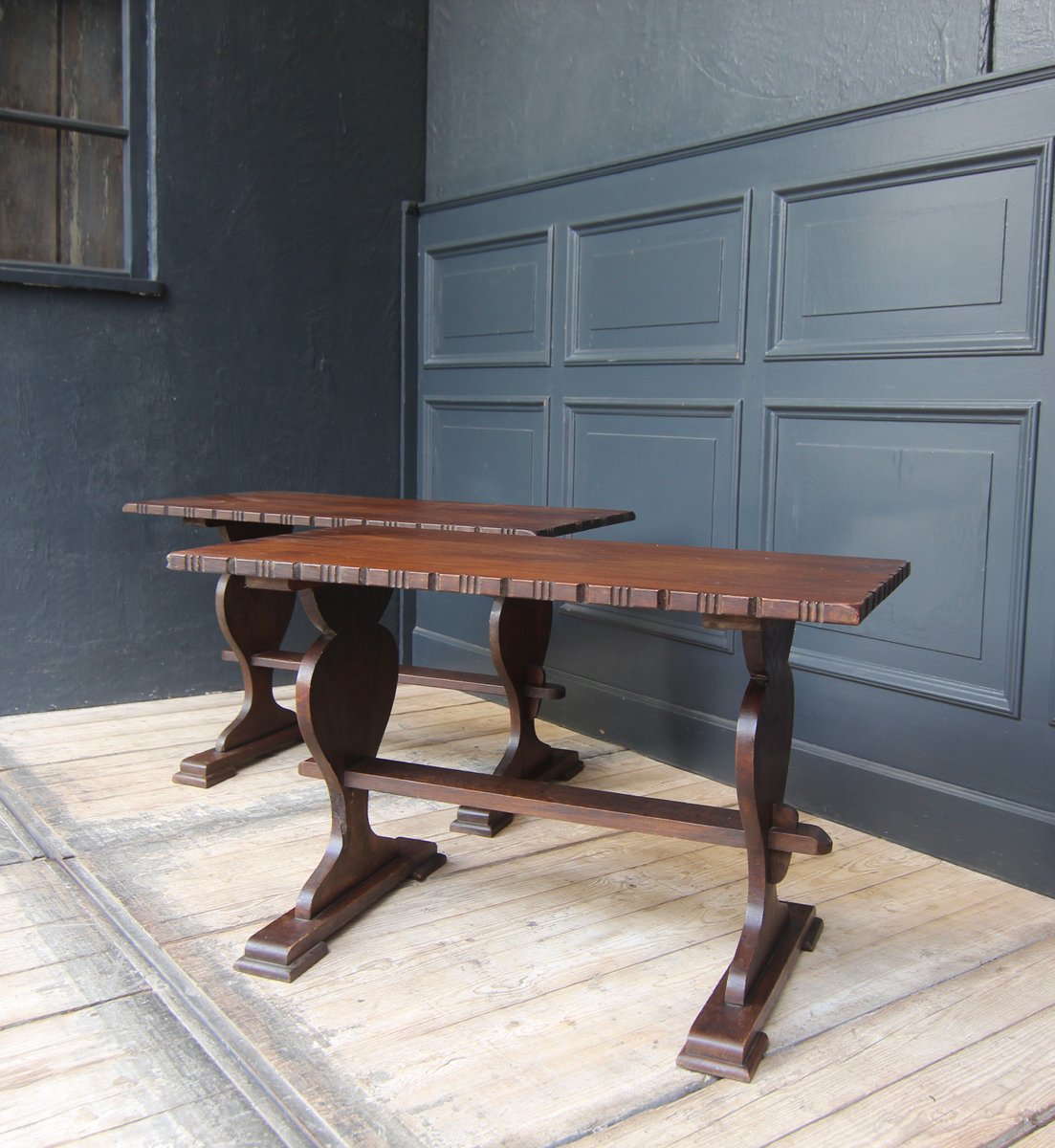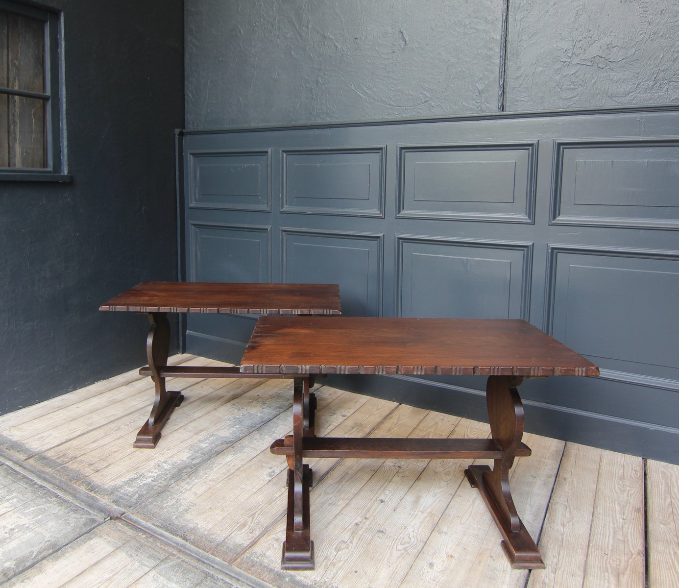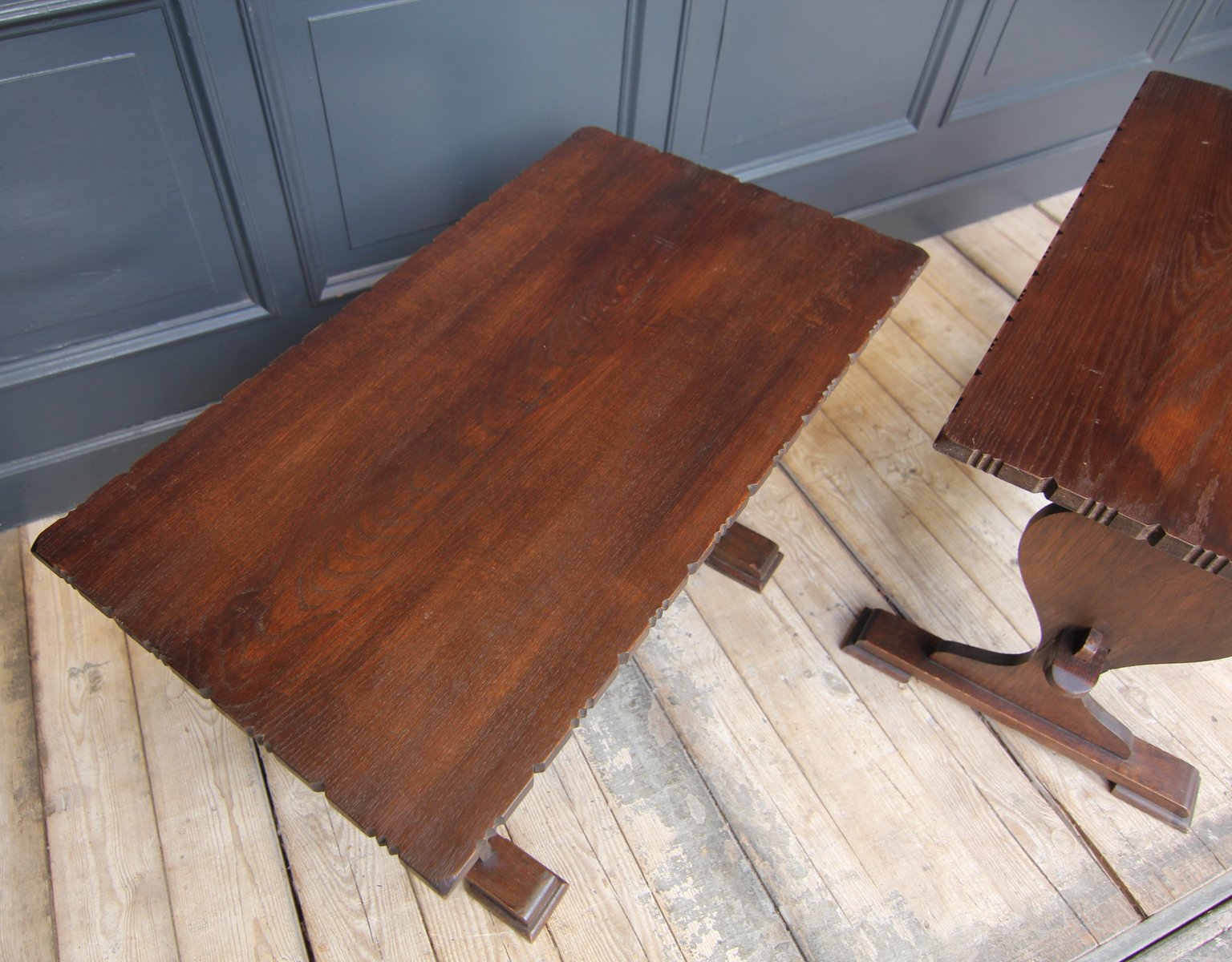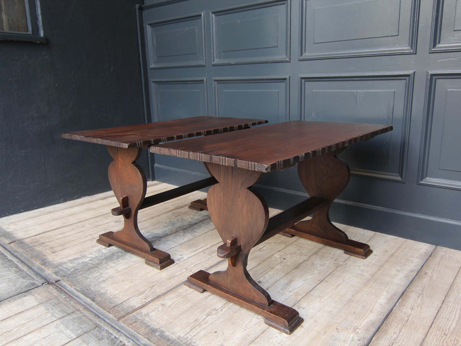 Kleine antike Klostertische aus Schweizer Eiche, 2er Set