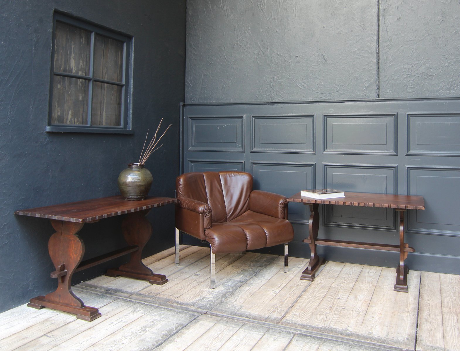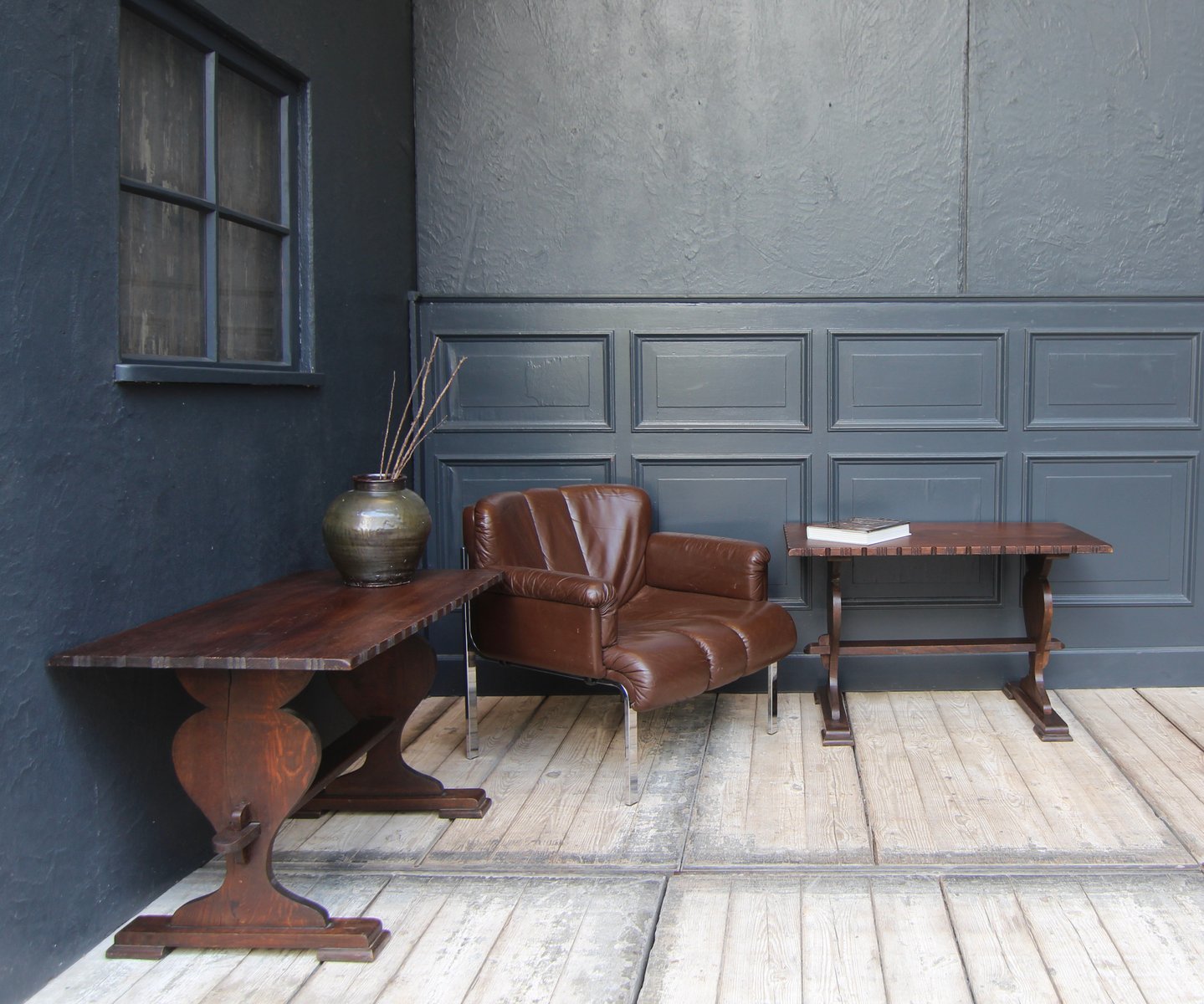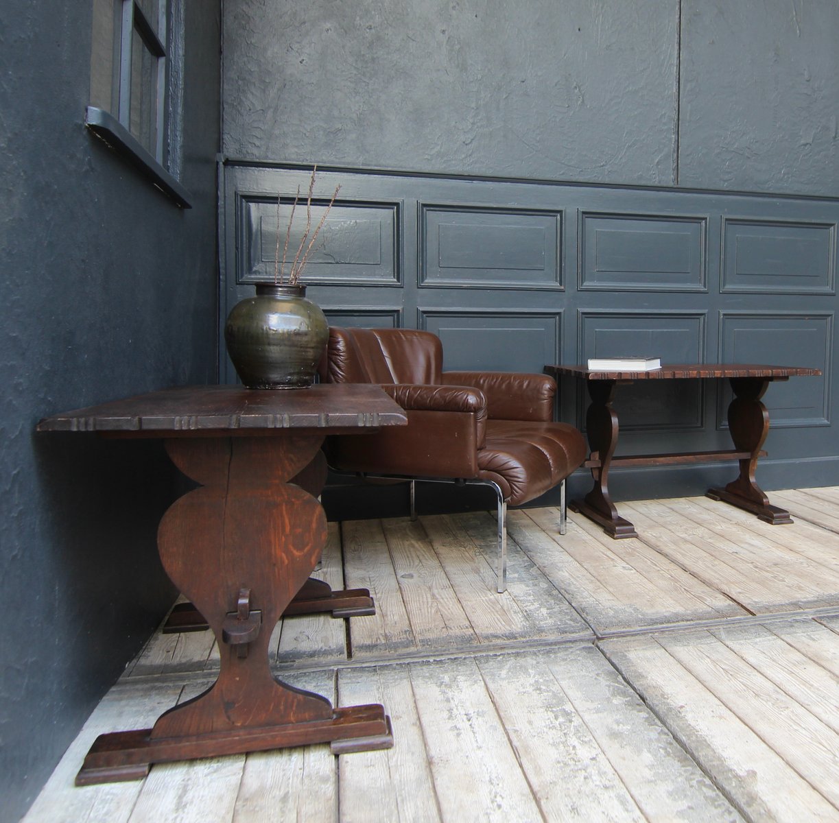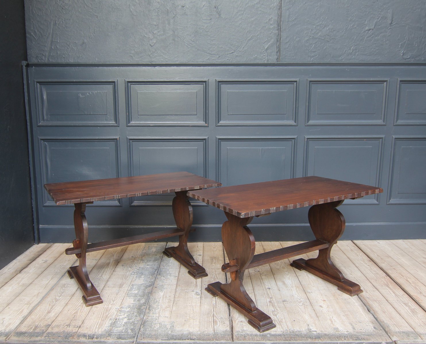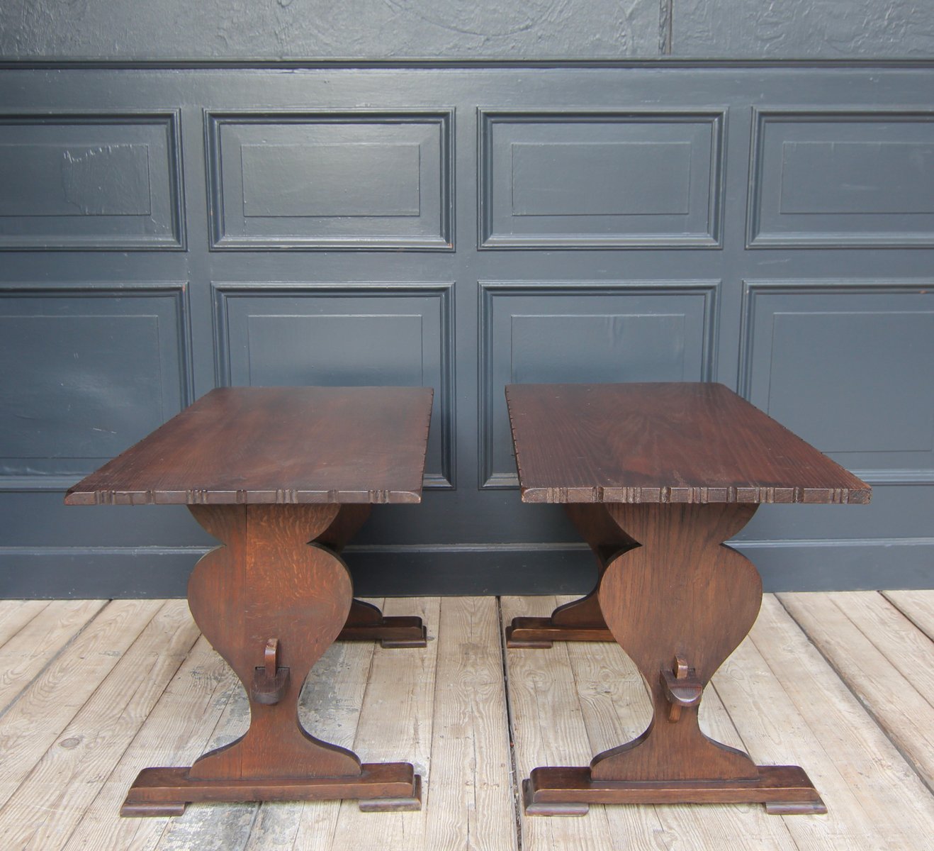 Kleine antike Klostertische aus Schweizer Eiche, 2er Set