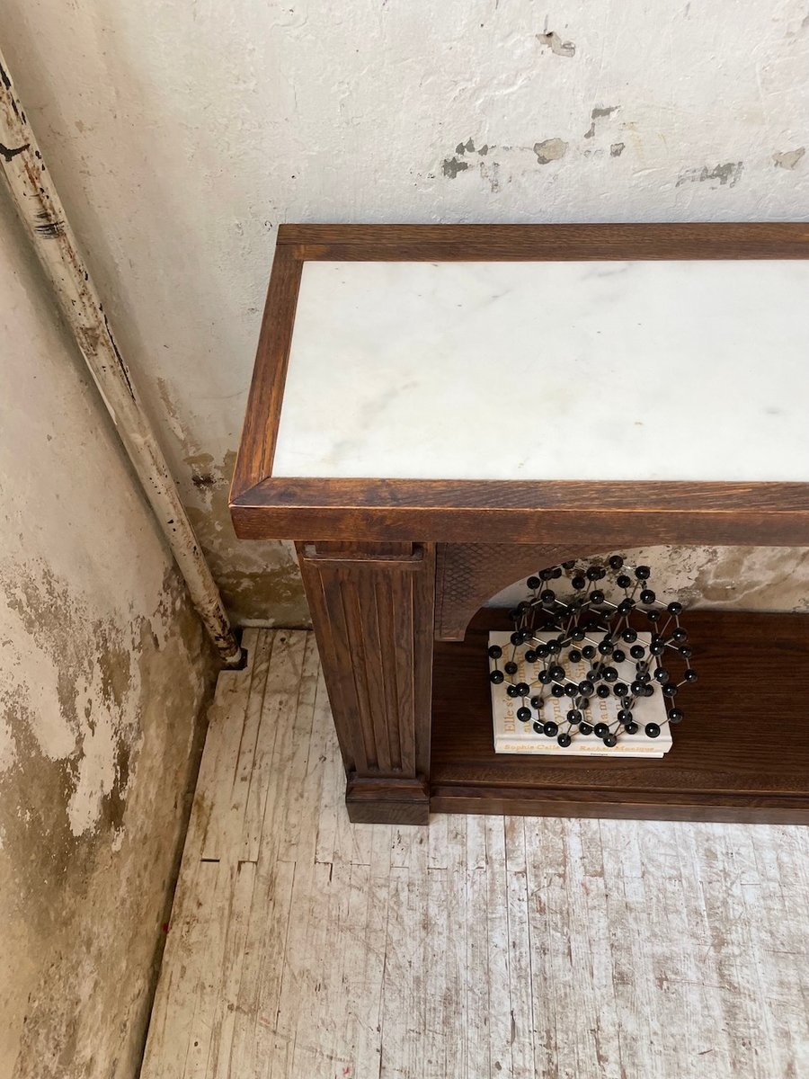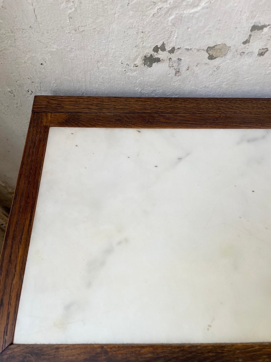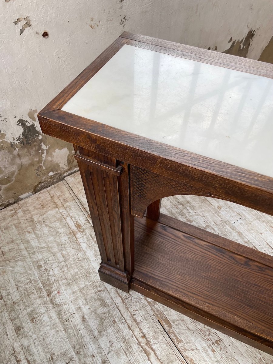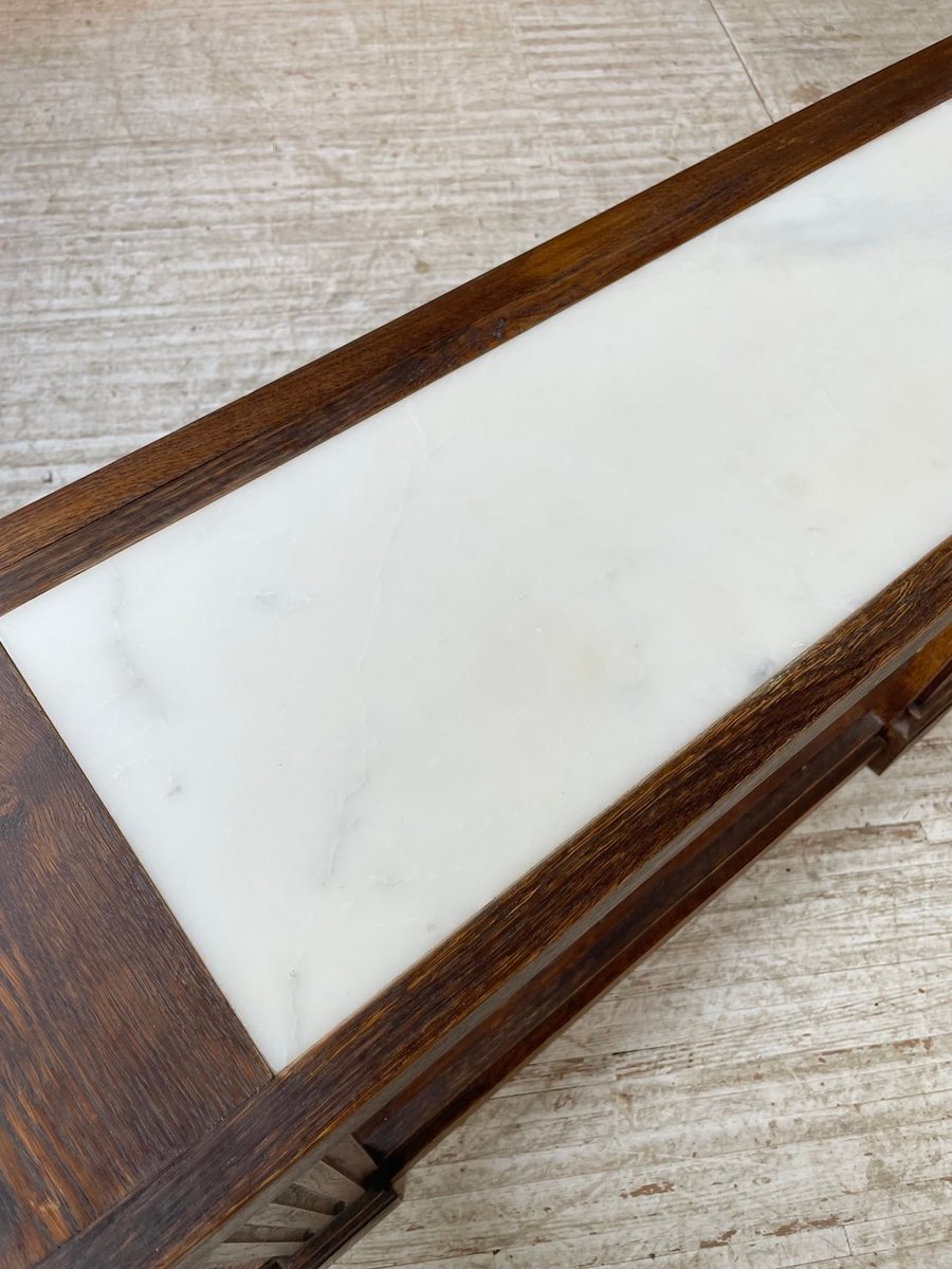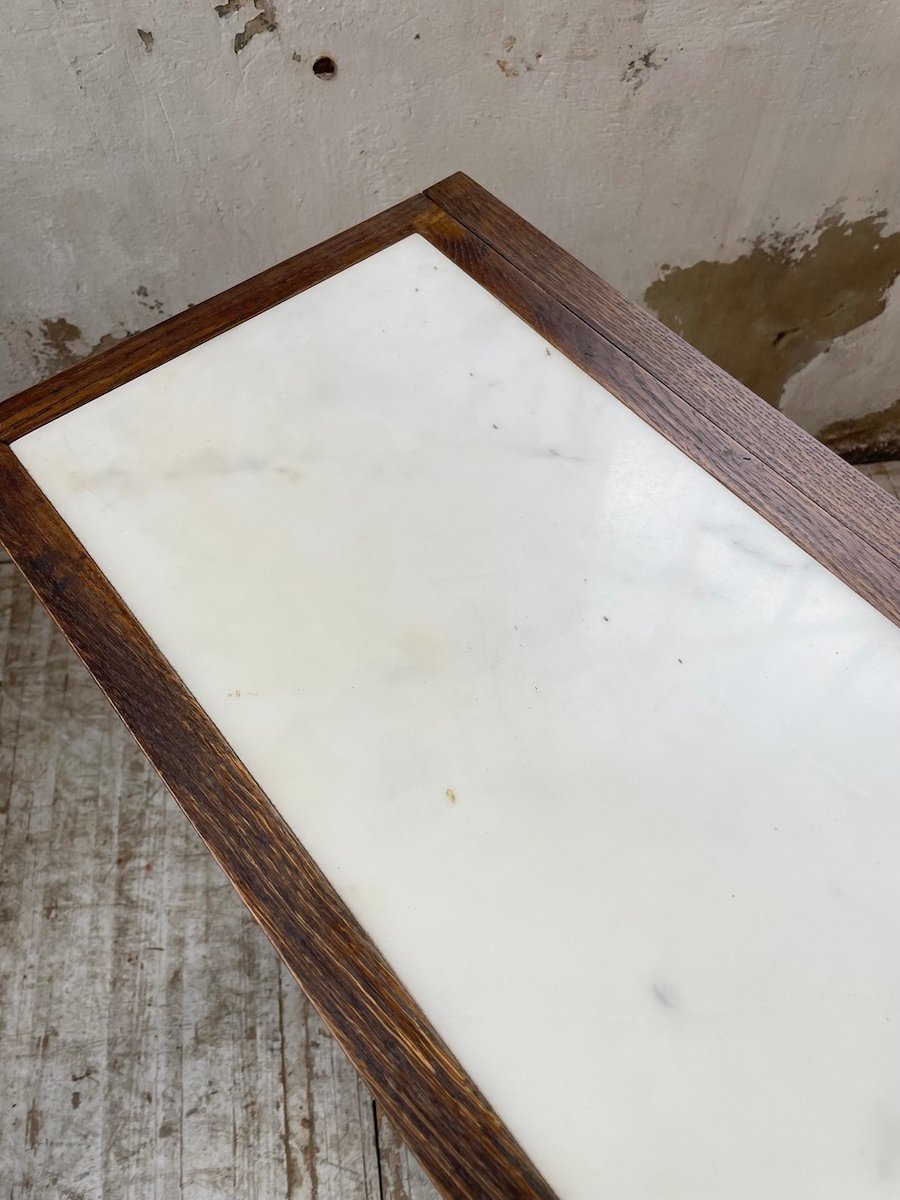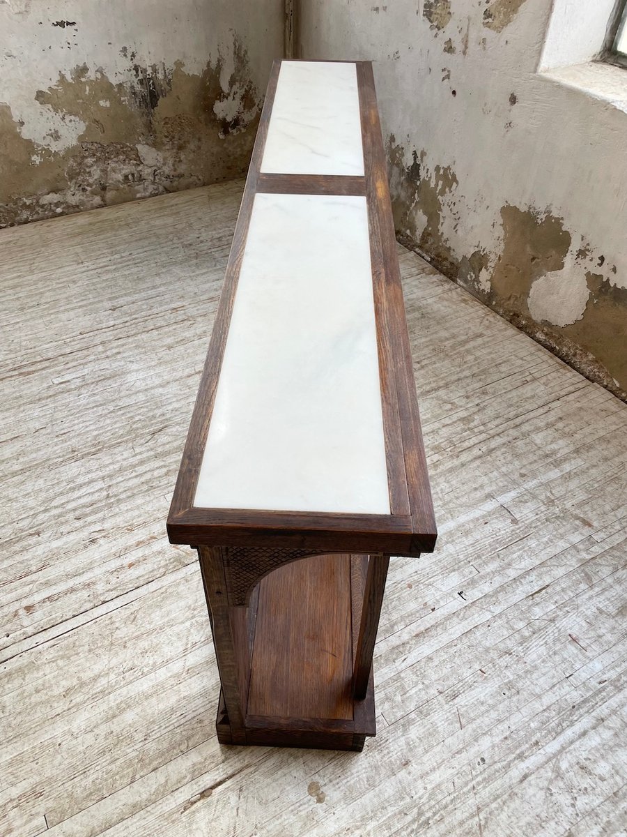 Antiker Konsolentisch aus Eiche mit zwei integrierten Platten aus weißem Marmor.