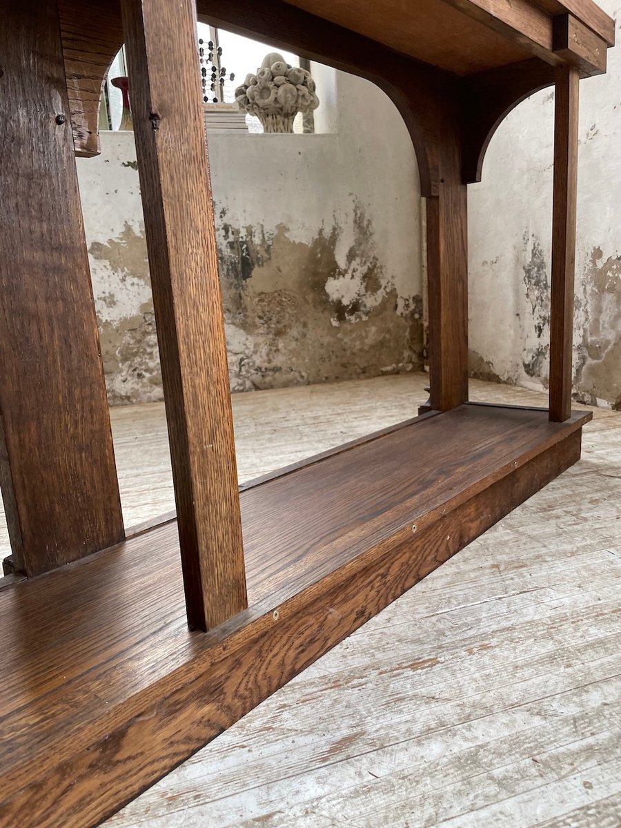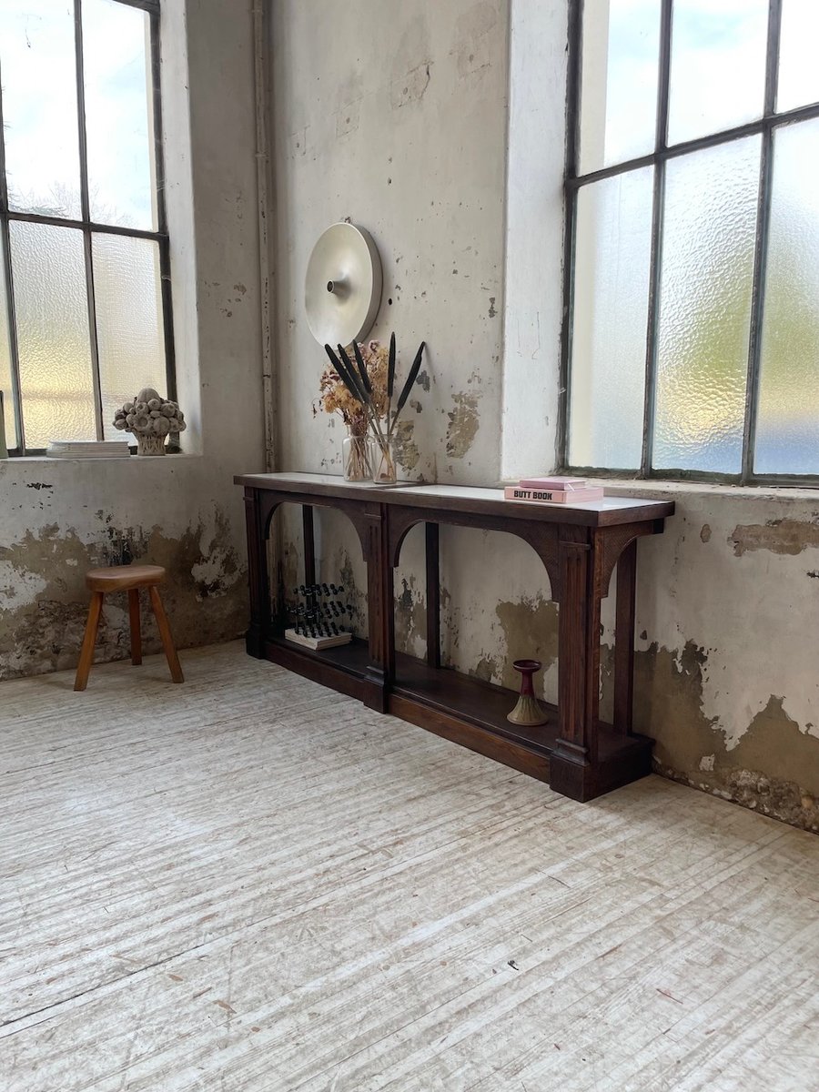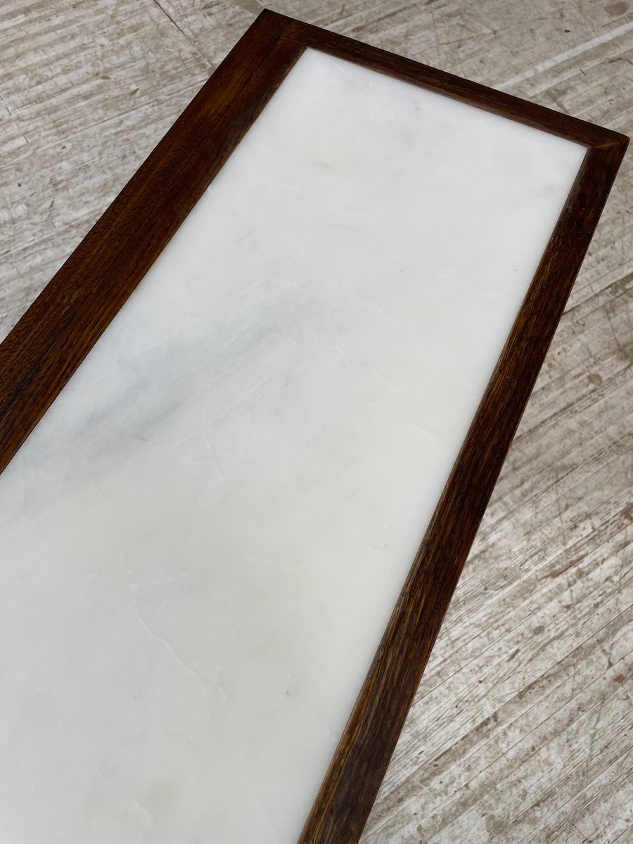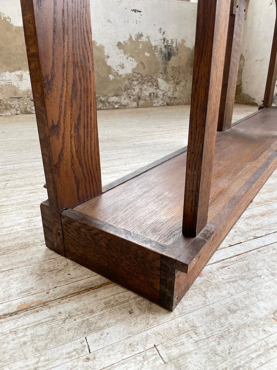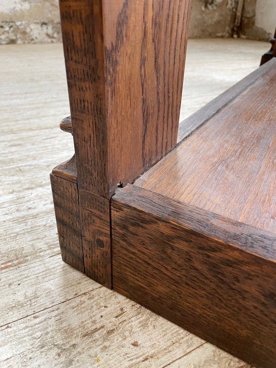 Antiker Konsolentisch aus Eiche mit zwei integrierten Platten aus weißem Marmor.