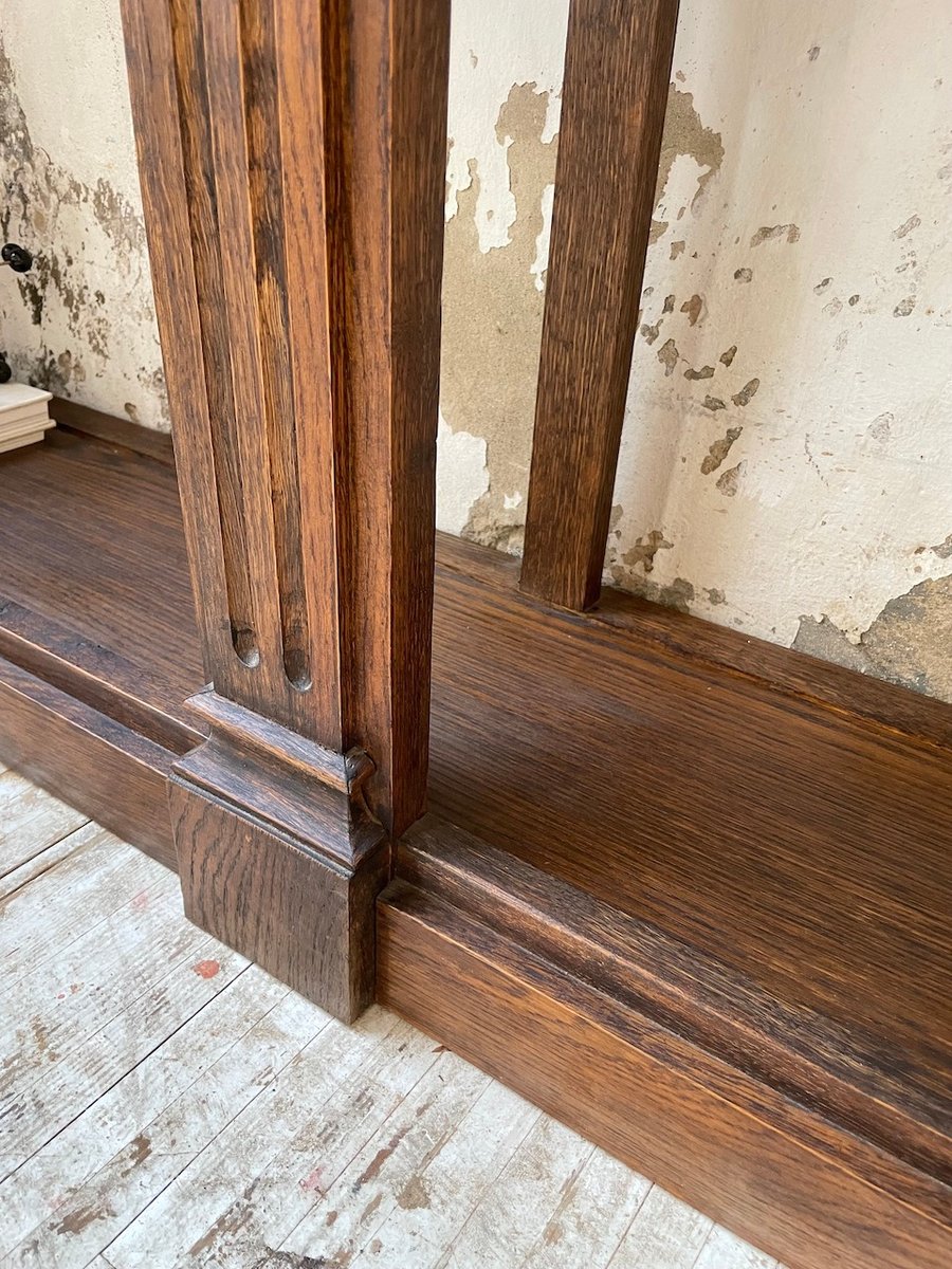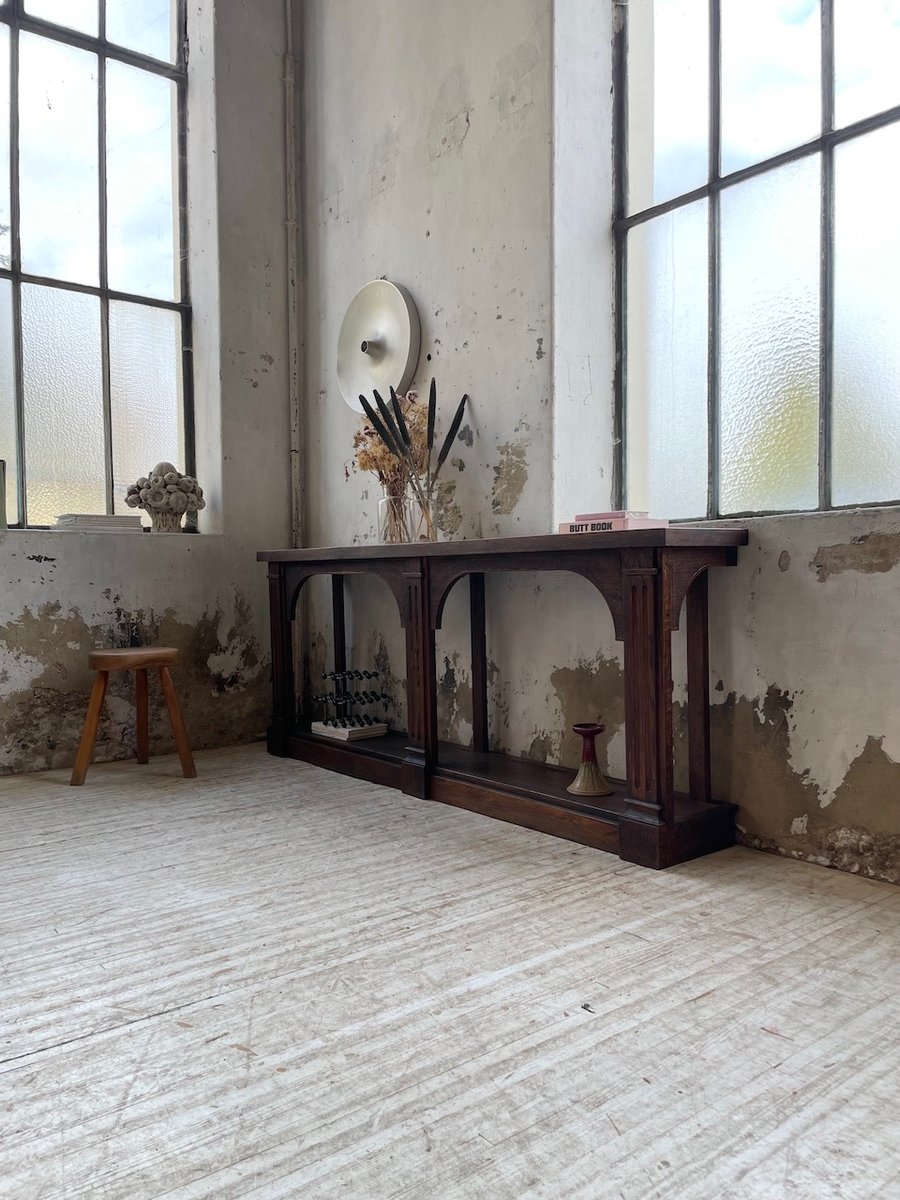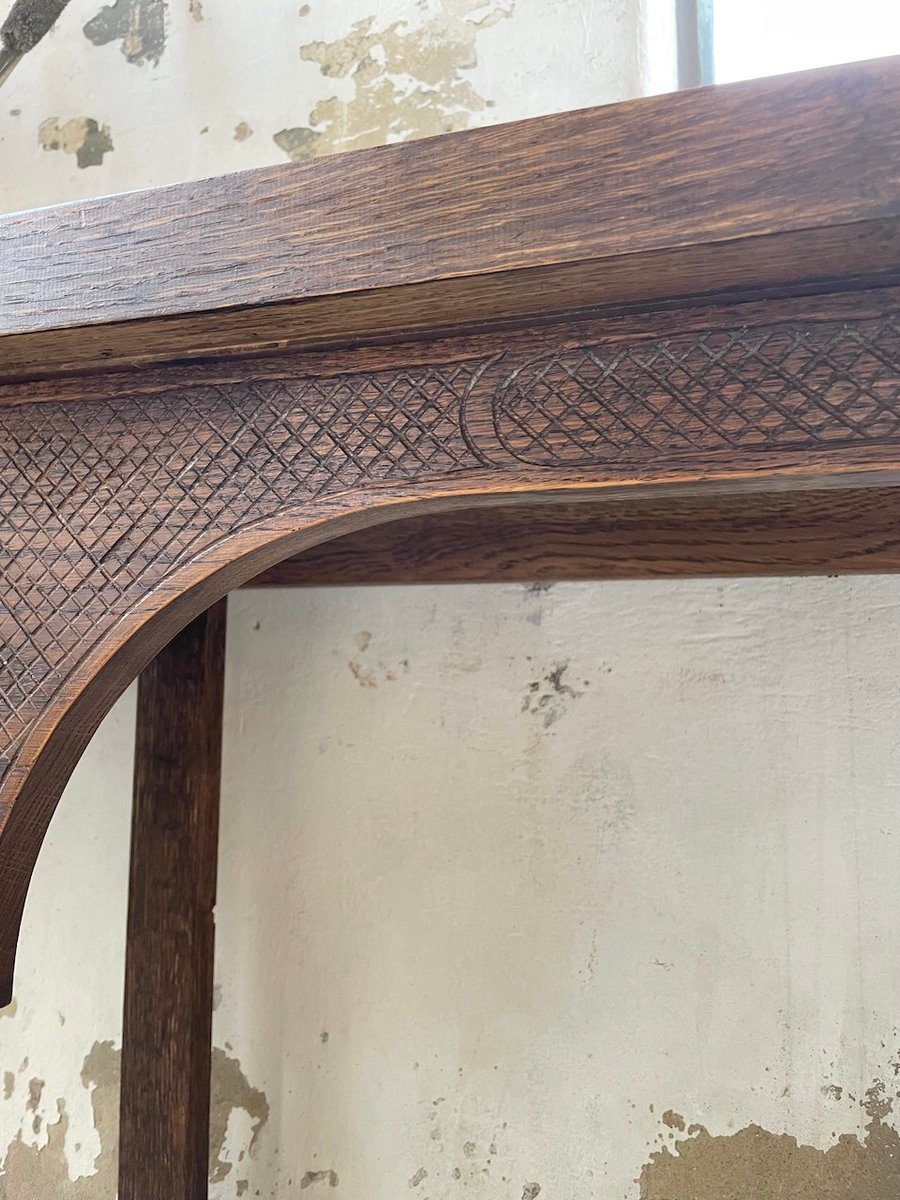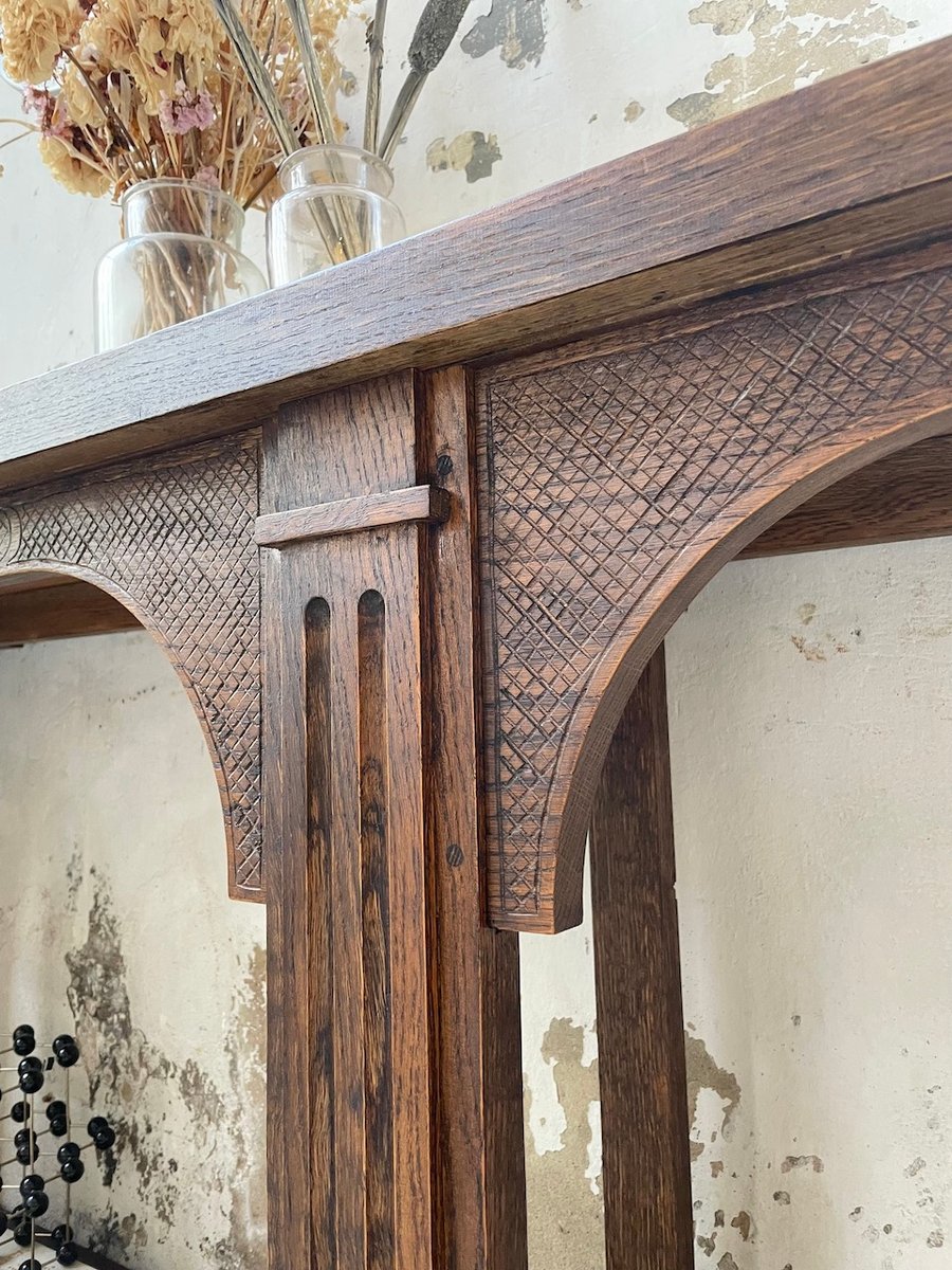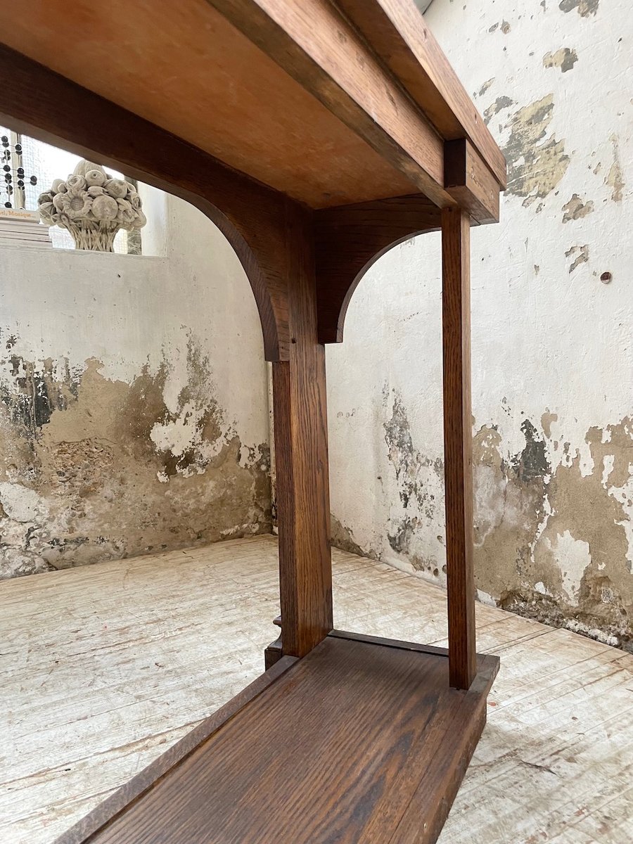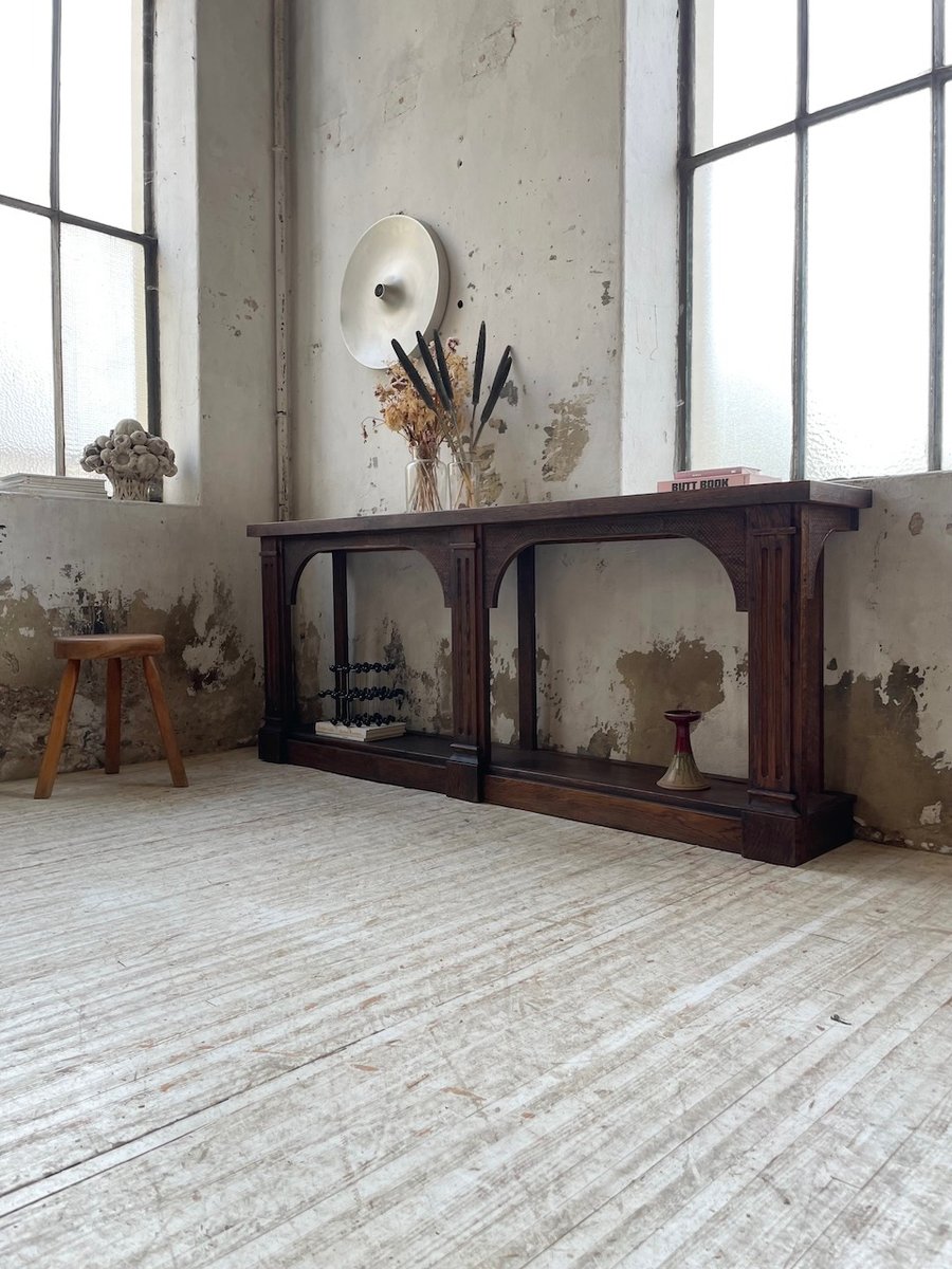 Antiker Konsolentisch aus Eiche mit zwei integrierten Platten aus weißem Marmor.