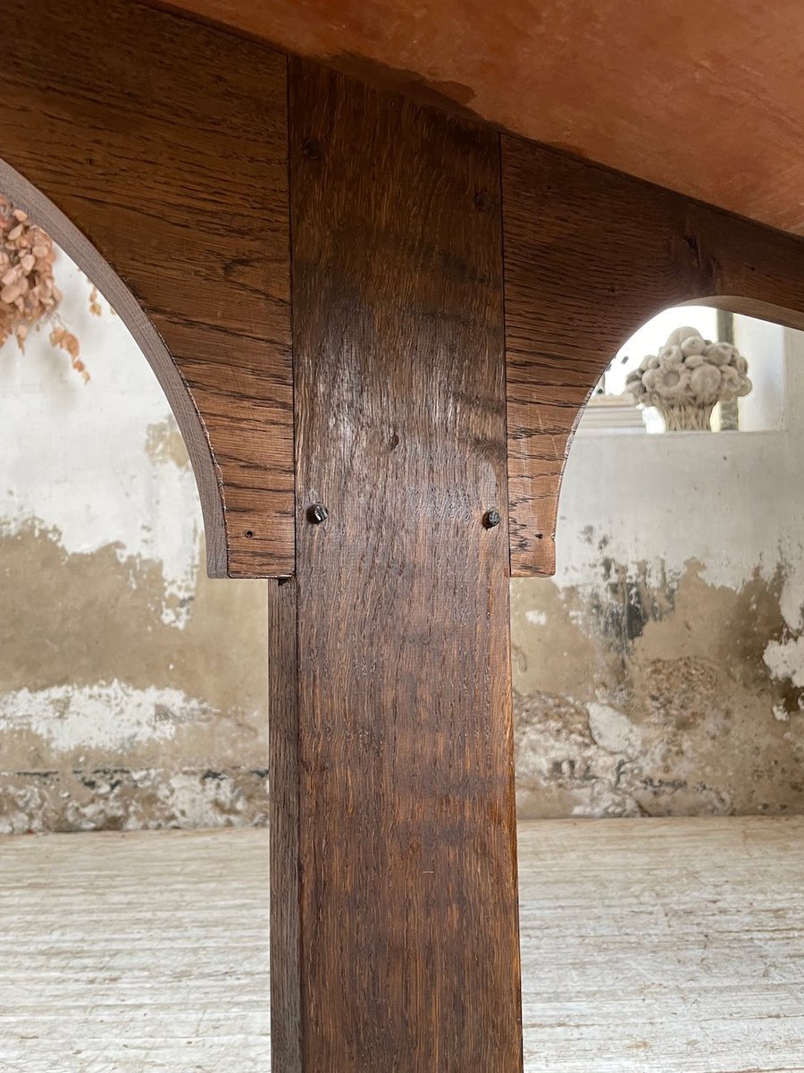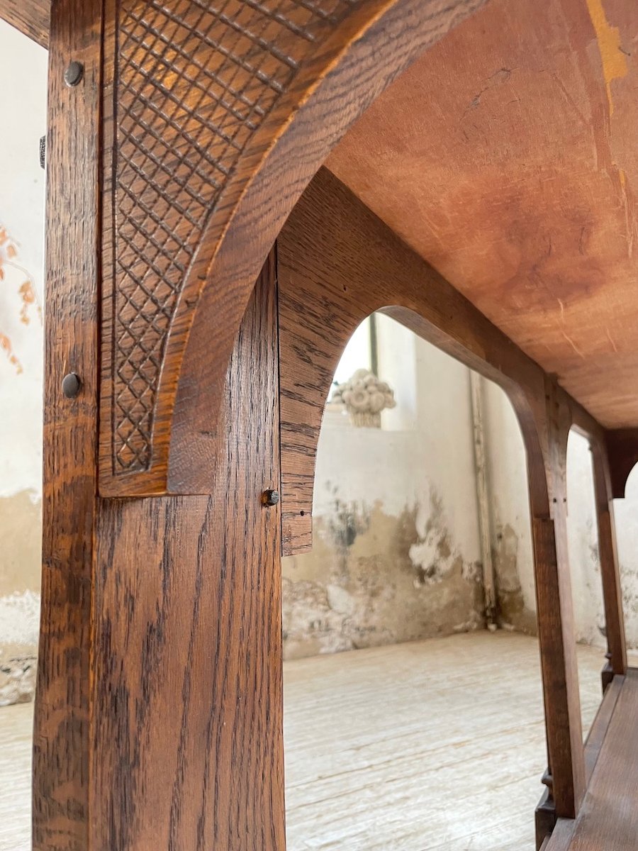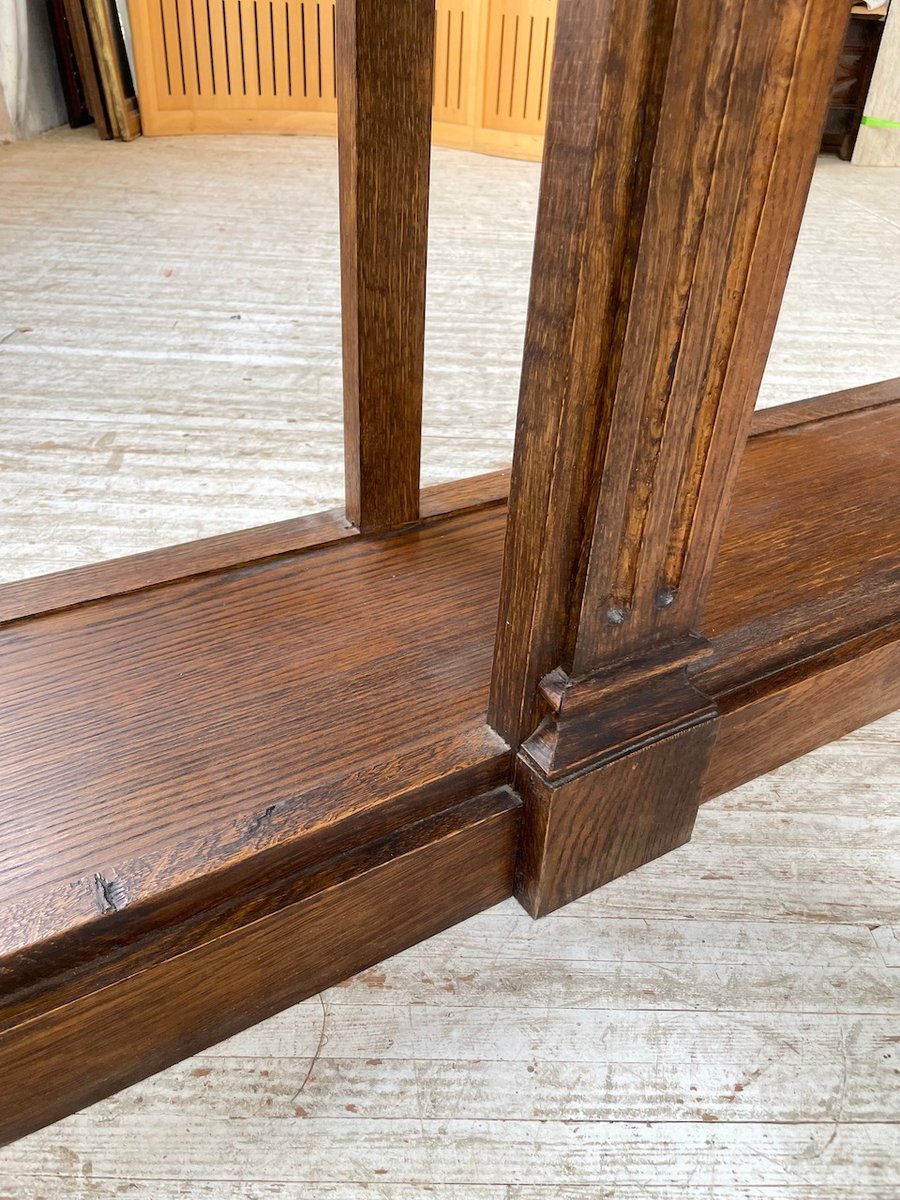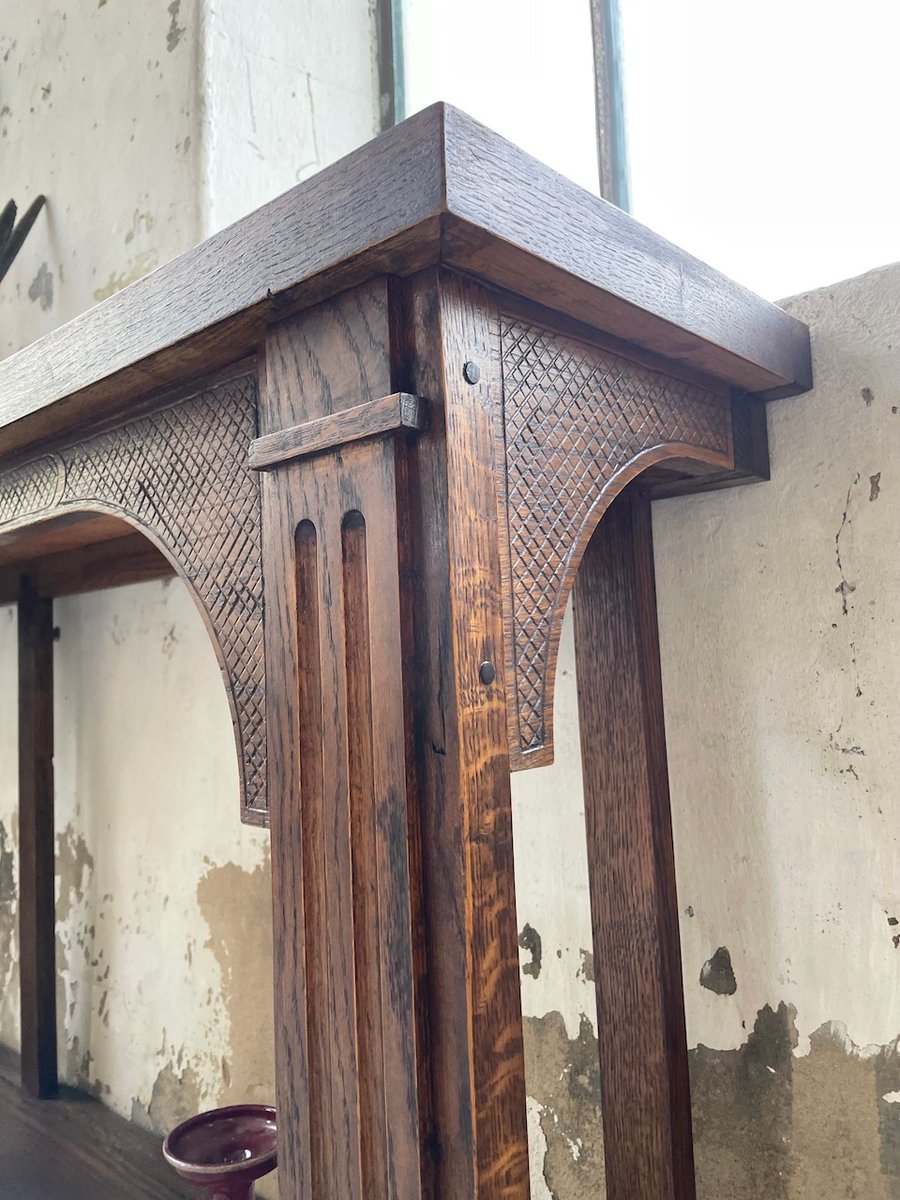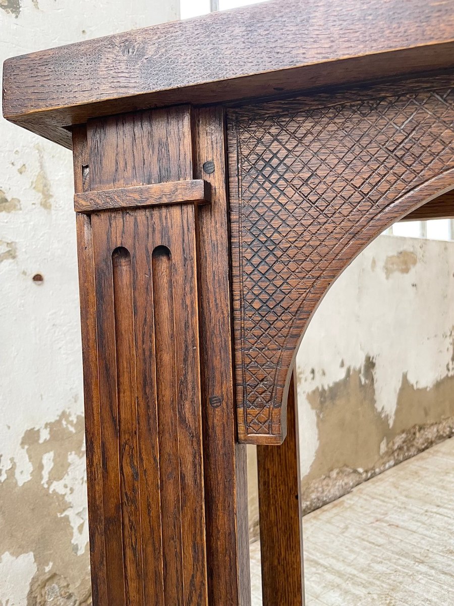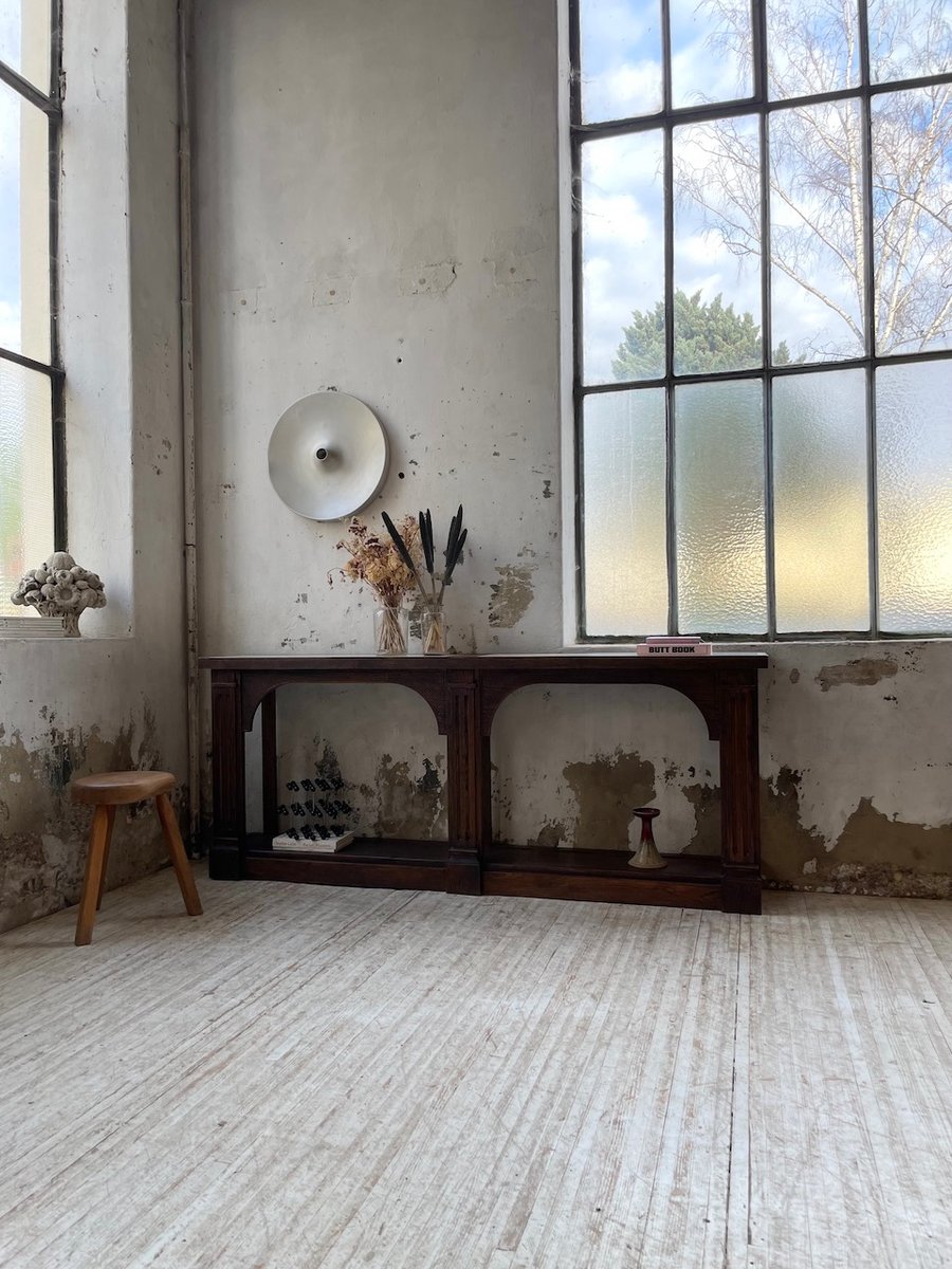 Antiker Konsolentisch aus Eiche mit zwei integrierten Platten aus weißem Marmor.