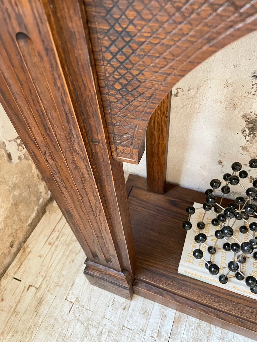 Entirely restored by a cabinetmaker, it boasts beautiful details—fluting, pegged finishes, and wood details with pretty graphic patterns.