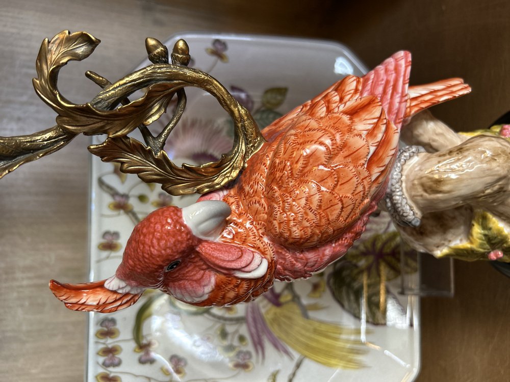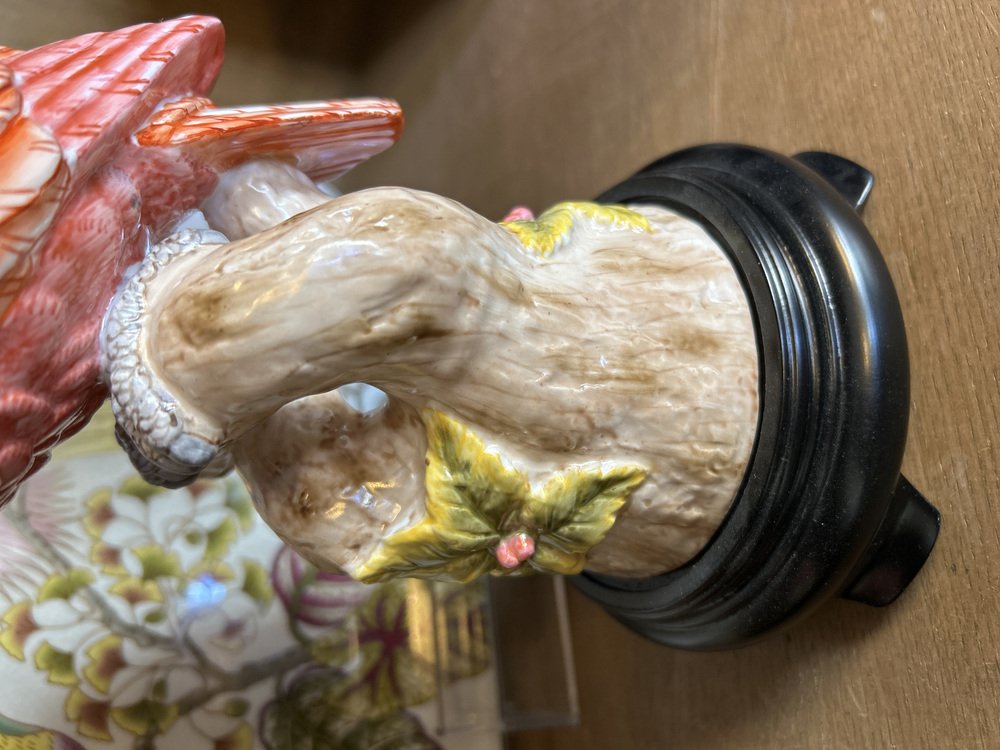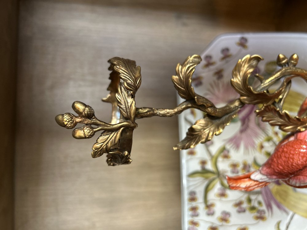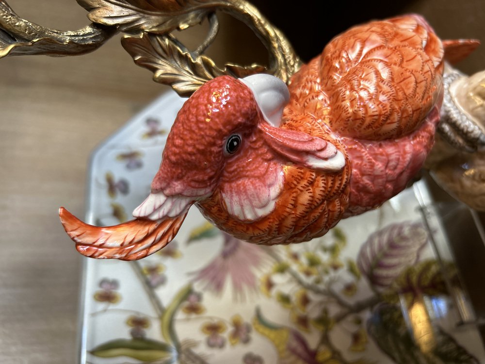 Korallenfarbener Parrot Kerzenständer aus Porzellan und Bronze von Gand & C