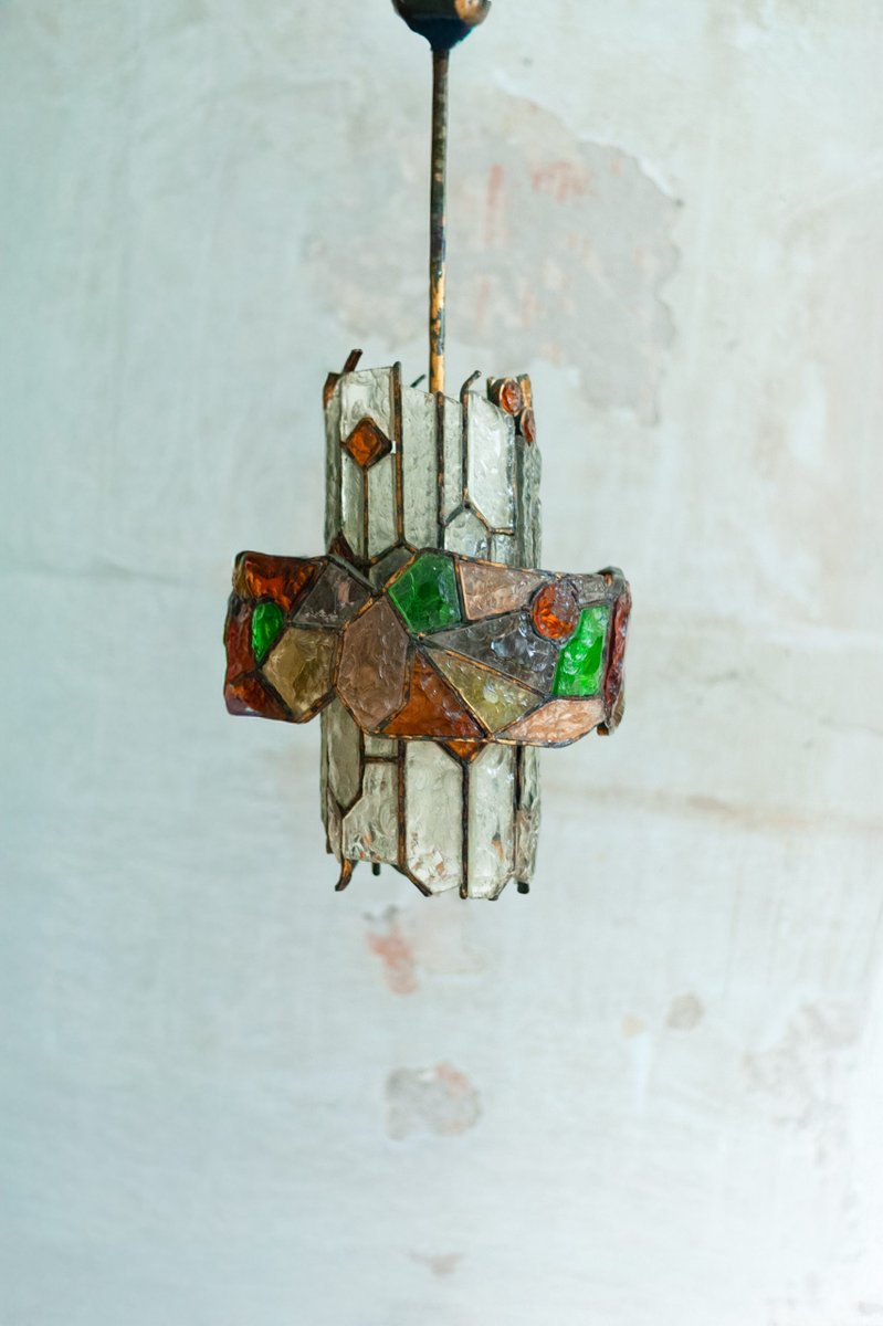 Kronleuchter aus Farbglas & Messing, Albano Poli zugeschrieben, 1960er