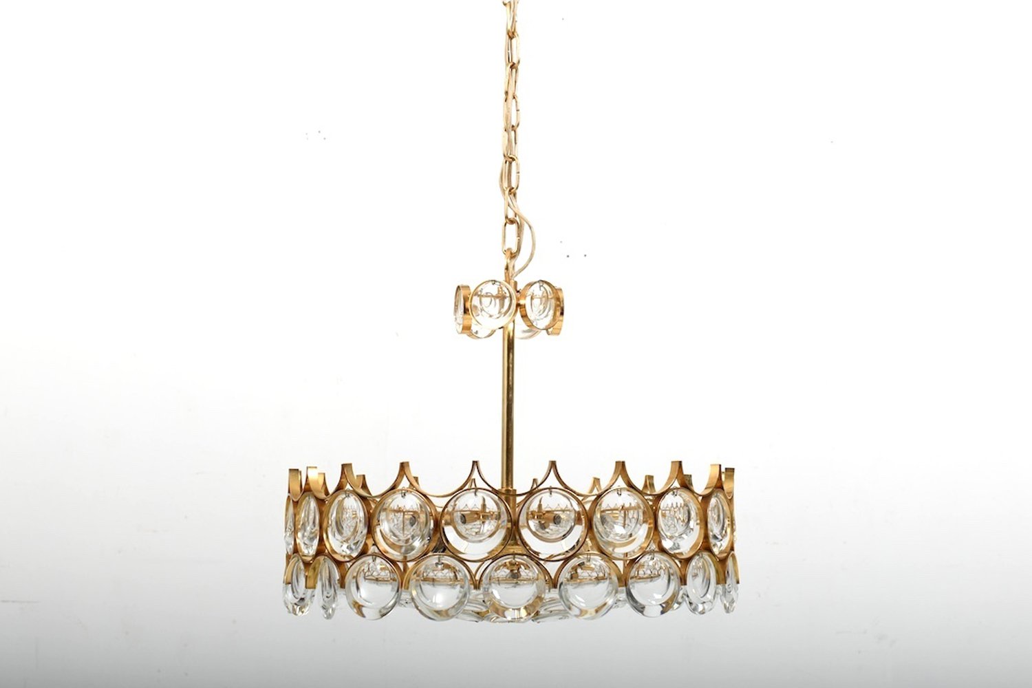 Kronleuchter aus vergoldetem Messing & Kristallglas von Palwa, 1970er