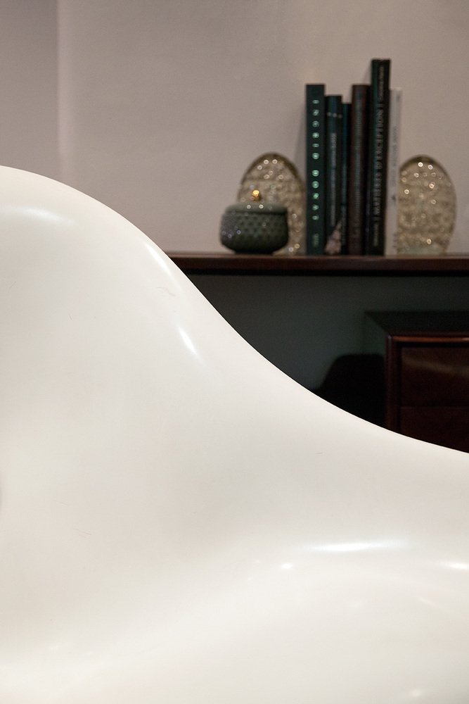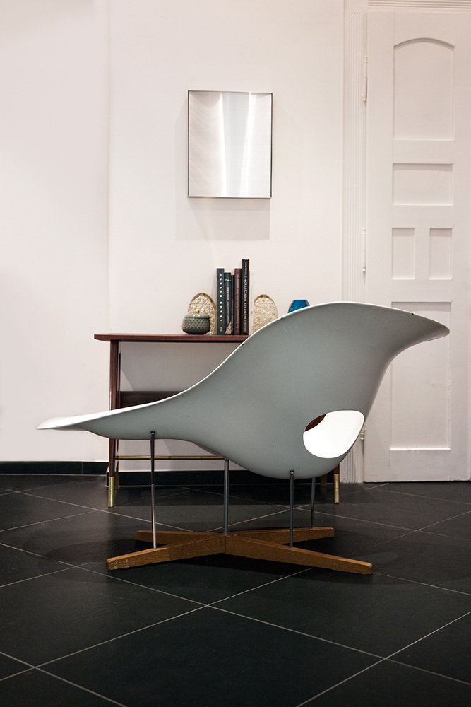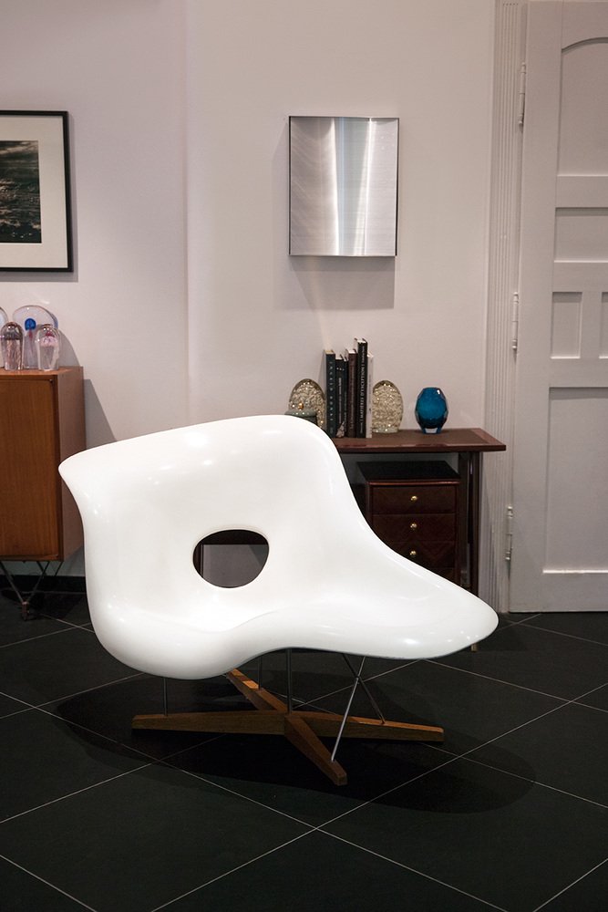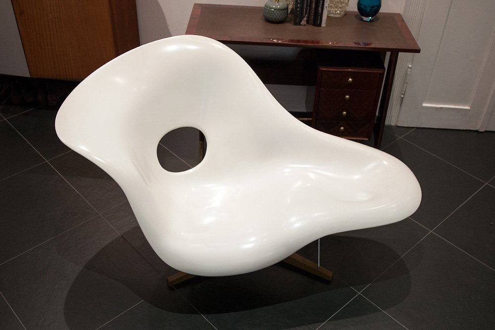 an den Holzmöbeln, die 1940 den Wettbewerb für Organic Design in Home Furnishing des Museum of Modern Arts gewannen. Die Serie umfasste experimentell geformte Stühle aus Sperrholz.