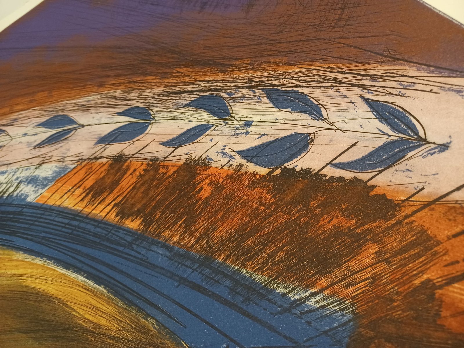 Artwork sold in perfect condition Color etching Hand dated, signed and numbered by the artist on the front. Ed. in 90 ex. Untouched, not framed. Complete with certificate of authenticity and origin (signature and dry stamp of the publisher with photographic reference and numbering). The images of a framed / numbered copy are for illustrative purposes only, the delivered specimen may have a different numbering depending on availability. Professional tracked shipping with rigid packaging. Medium Print: etching Dimensions cm • inch 104 x 160 x 0.1 cm 40.9 x 63 x 0 inch Support Print on paper Framing Not framed Type Numbered and limited to 99 copies 1 copy available Authenticity Work sold with an invoice from the gallery and a certificate of authenticity Signature Hand-signed by artist Collector’s Guide Collecting Prints Types of prints Our advice for framing prints Tags Symbols Themes Abstract