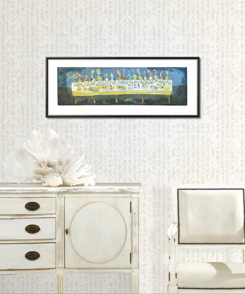 Artwork sold in perfect condition Complete with certificate of authenticity and origin (signature and dry stamp of the publisher with photographic reference and numbering). Published in the catalog: Tonino Guerra, (edited by) Rita Giannini, Rimini, TxT, 2010. The delivered copy may have a different numbering depending on availability. Shipping with professional rigid packaging and tracking number. Read more About the seller Stefanini Arte • Riccione, Italy Vetted Seller Medium Print: aquatint, etching Dimensions cm • inch 38 x 102 x 0.1 cm 15 x 40.2 x 0 inch Support Print on paper Framing Not framed Type Numbered and limited to 100 copies 1 copy available Authenticity Work sold with an invoice from the gallery and a certificate of authenticity Signature Hand-signed by artist Collector’s Guide Collecting Prints Types of prints Our advice for framing prints Colors Yellow Sky blue Tags People Religious iconography Irony Italy Themes Fantastic Food Figurative