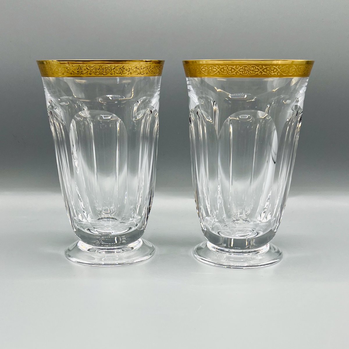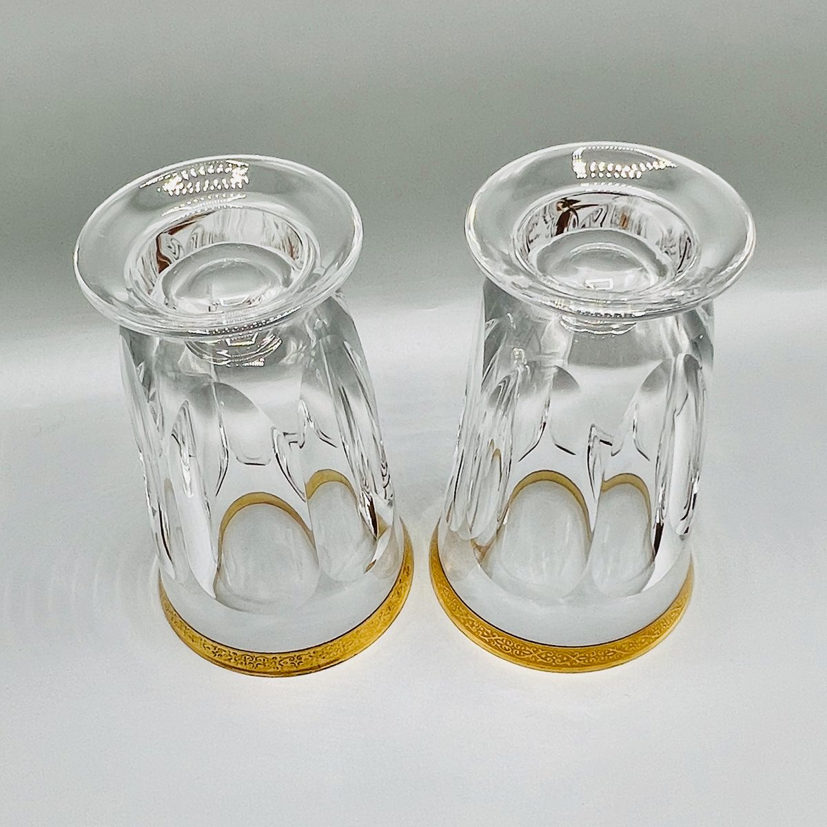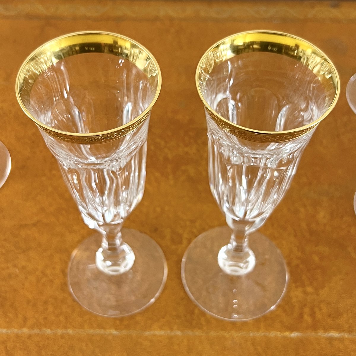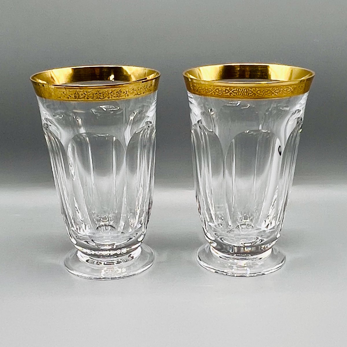 This vintage set was produced in the Czech Republic during the 1970s, identifiable by the period Moser labels and engraved script signatures. Each piece is hand-blown from Moser’s famously pure, lead-free crystal and finished with a wide band of 24-karat oroplastic gold, applied and polished entirely by hand.