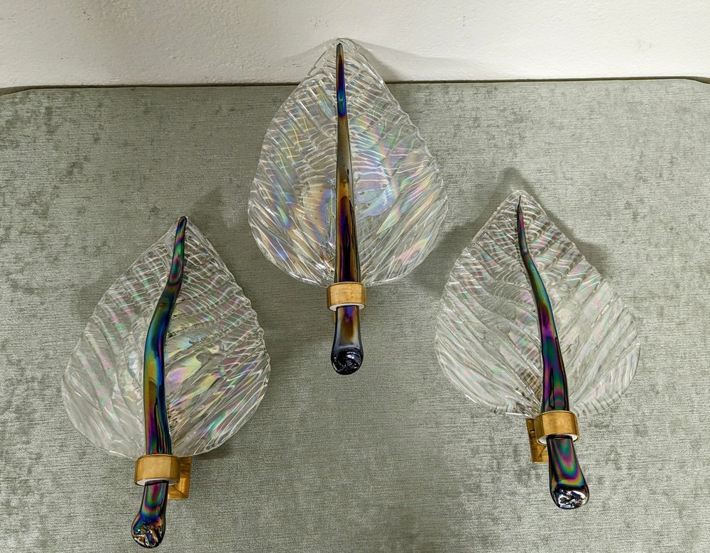 Leaf Wandlampen aus Muranoglas, 1970er, 3 . Set
