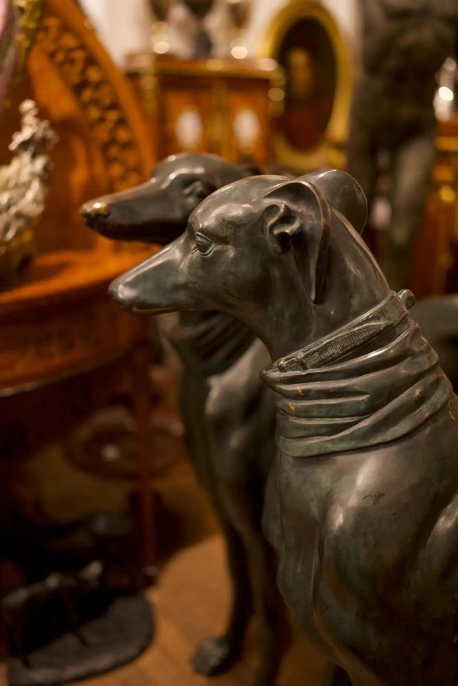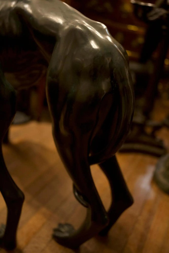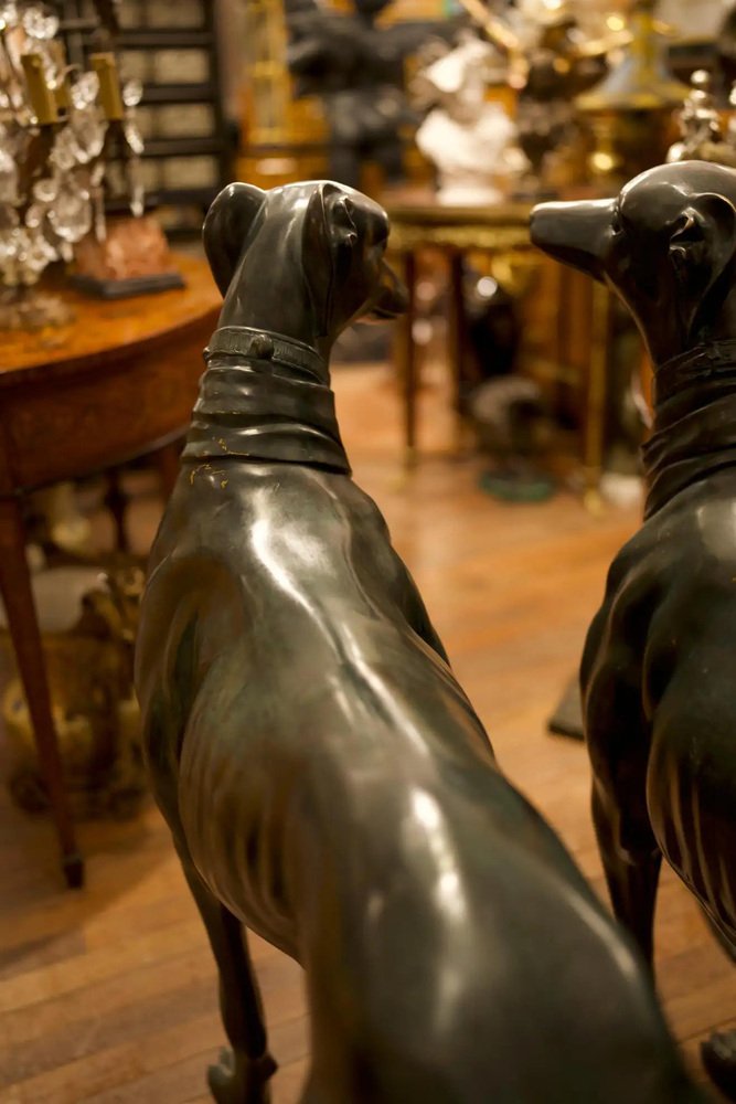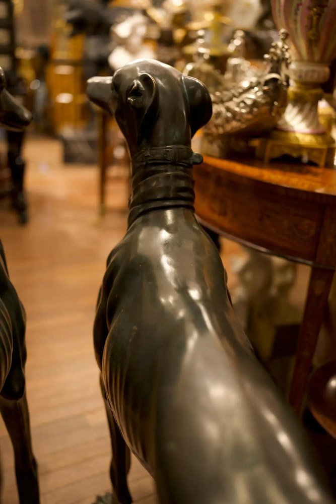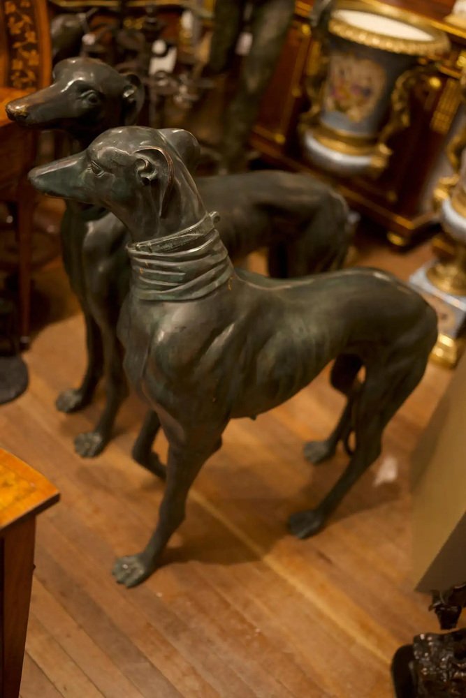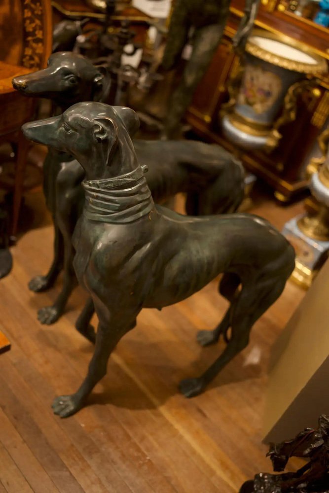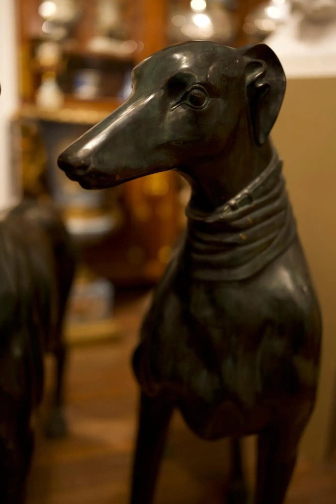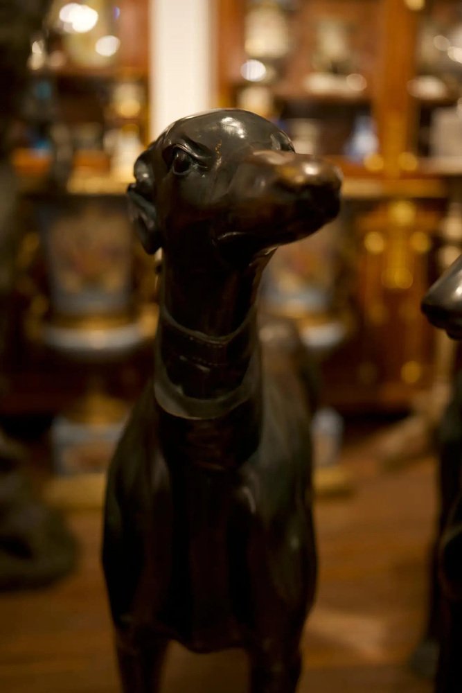 Lebensgroße Art Deco Greyhound Skulpturen aus Bronze, 2 . Set